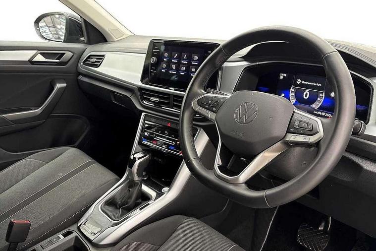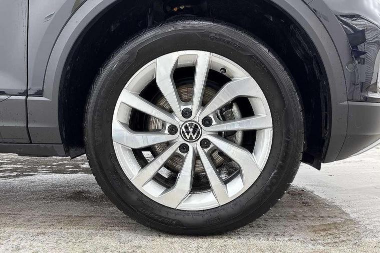 Advanced driver attention and drowsiness monitor, Dynamic road sign display, Emergency call service, Lane keeping system Lane Assist, Mobile phone interface, Modified key software - reduce switch off time for key status change to Long no motion, Online services, Park assist including front and rear parking sensors, Power assisted speed sensitive steering, Rear view camera, Service interval indicator, Tailgate/trunk lid release from outside, Think blue trainer driver tips and journey analysis, Warning sound and light for front seatbelts unfastened, Wireless app connect, Battery regeneration during braking, Front shock absorption, Rear shock absorption chassis with increased ride height, Start/stop function with battery regeneration, DAB Digital radio, Diversity antenna for FM reception, Front and rear 6 speakers, Music playback - MP3, WMA and AAC files, Premium USB cable in choice of either Apple or Android smartphone compatibility, SD card slot, Simultaneous pairing of 2 compatible mobile devices, Title and cover art display, We Connect and We Connect Plus functionality, Auto dimming interior rear view mirror, Automatic hazard lights activation under emergency braking, Automatic headlight control with LED separate daytime running lights with coming/leaving home function, Black roof rails, Body coloured bumpers and radiator grille with chrome trim and front fog lamps with chrome bezel, Body coloured exterior mirror housings and door handles, Electrically adjustable and heated door mirrors, Extended roof spoiler, Exterior mirrors aspherical on driver side, convex on front passenger side, External USB type C socket and charging sockets, Front windscreen wiper with intermittent wipe and 4 position delay, Heated rear window, LED 3rd brake light, LED rear combination lamps, LED rear number plate lights, Power windows with comfort operation and circuit breaker, Privacy glass for rear side windows and rear window, Rain sensor, Rear exhaust tailpipe, Rear fog light on one side and reversing lights on both sides, Rear side wing doors, Rear wash/wipe with intermittent wipe setting, Remote electrically foldable door mirrors, puddle lights and reverse activated passenger's door mirror, 12V power socket in centre console, 3 rear head restraints, 3 seat bench in 2nd row, 4 load lashing points in luggage compartment, Air care climatronic air conditoning system with active combination filter and 2-zone temperature control, Black stitching for floor mats, Ceramique roof liner, Cloth upholstery, Door and side trim panel in cloth, Drawer under drivers seat, Driver/front passenger seat height adjustment, Front centre armrest, Front comfort sports seats, Front cupholders x 2, Front reading light, Front seat back storage pockets, Glove compartment door with light, Instrument lighting, white adjustable panel illumination, Interior ambient lighting and surround lighting, Interior light delay, Isofix child seat preparation, Leather gearshift handle, Load-through provision with cup holder when folded down ('Unsplit rear seat bench, split folding backrest, with centre armrest), Luggage compartment lighting, Lumbar support for driver's and front passengers seat, Non-folding front passenger seat backrest, Single front passenger seat, Storage compartment in left and right luggage area, Storage compartment in rear doors, Storage compartments in driver and front passenger doors, Sunvisors with illuminated vanity mirrors, Variable boot floor, height adjustable and removable, Driver assistance pack without proactive passenger protection - T-Roc Life/Match, 3 point height adj front seatbelts + pretensioners, 3 point seatbelts in outer rear with ECE label, ABS, Child locks on rear doors, City emergency braking and pedestrian monitoring, Driver and front passenger airbag with front passenger airbag deactivation, Driver and front passenger safety-optimised head restraints, Drivers seatbelt reminder, Electronic parking brake, Electronic Stability Control (ESC) inc EDL (Electronic Differential Lock) and ASR (Traction Control), Front and rear passengers curtain airbag system including front side airbags, Front disc brakes, Hill start assist, Predictive pedestrian protection, Rear disc brakes, Two tone horn, Tyre pressure loss indicator, Volkswagen roadside assistance, Alarm with interior protection, Keyless locking and starting system keyless access with safelock, Pewter matt decorative inserts for intrument panel, centre console and door panels at the front, Trims for alloy wheels,