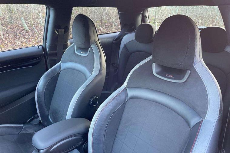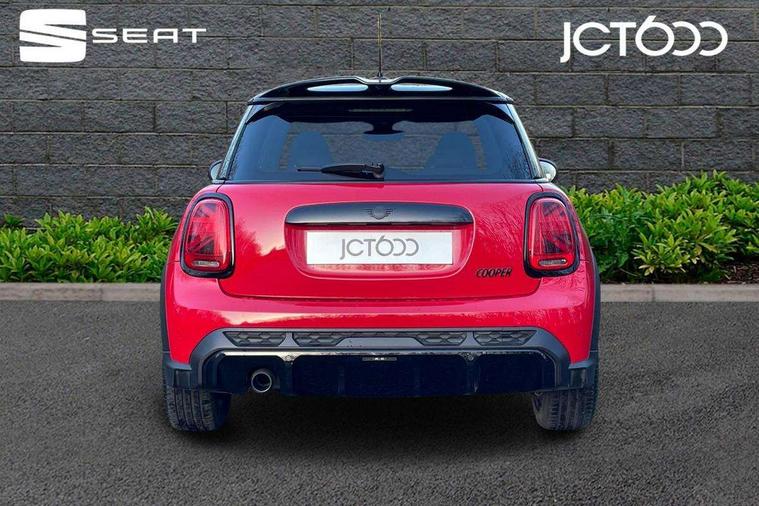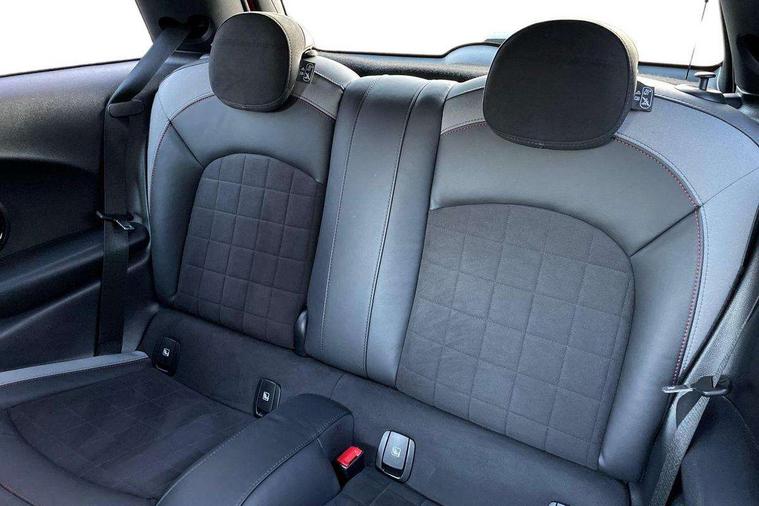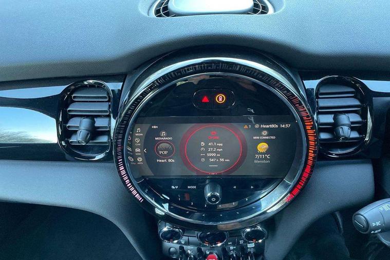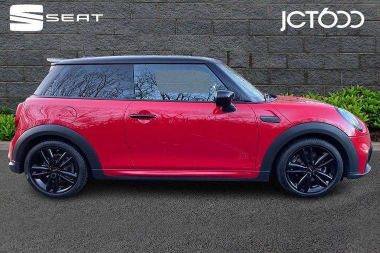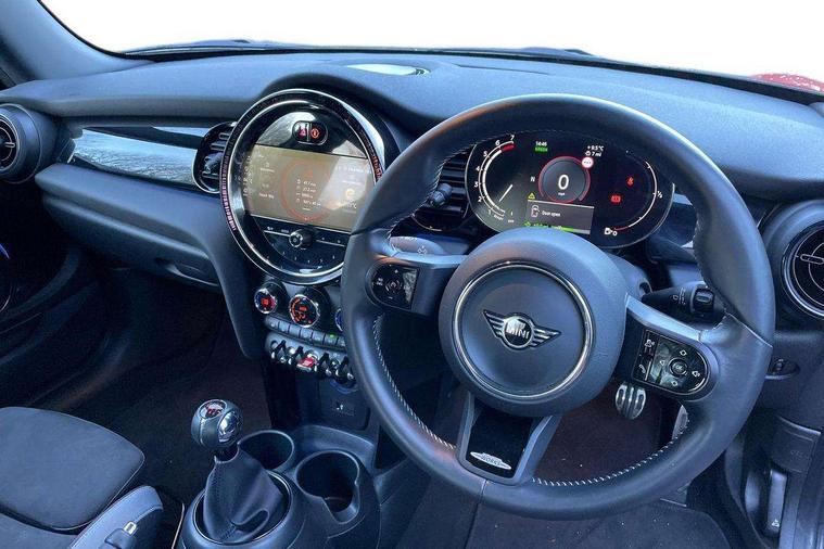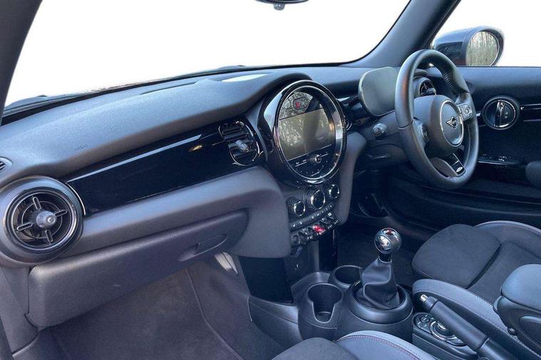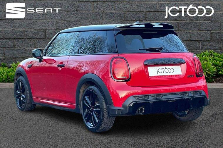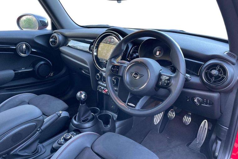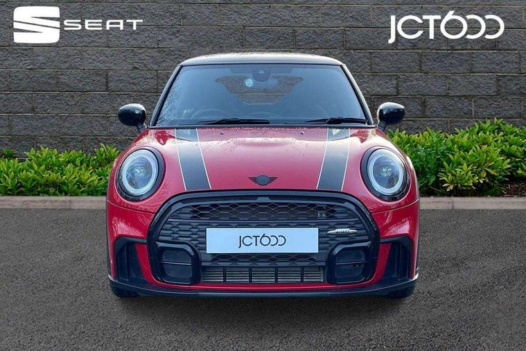 Apple CarPlay, Automatic start/stop function with brake energy recuperation, Compatible mobile phone bluetooth with audio streaming, Cruise control with brake assist, Electro-mechanical speed dependant steering assistance, Flexible car sharing preparation, Instrument cluster, MINI Driving Modes - centre toggle switch to control driving setting (sport, mid and green), Mini E-call, MINI TeleServices, On board computer, Rear park distance control, Service interval indicator, 6 Speed manual transmission including gear change indicator display, Double Vanos system, Fully variable valve control, High precision injection, Intelligent adaptive suspension, Performance Control, 8.8" touchscreen with LED ring, FM tuner and DAB digital radio, 3rd brake light, Automatic headlight activation switch, Body colour fuel filler cap, Chrome border high gloss black slats radiator grille, Dynamic brake lights, Electric front windows, Exhaust tailpipe on left with chrome finisher, Heated rear window, Heated windscreen washer jets, JCW Aerodynamic kit - Front and rear bumpers with sporty JCW styling and part-painted side sills with MINI John Cooper Works door sill finishers, John Cooper Works rear spoiler, LED headlight with closed ring and daytime driving lights, Metal door sill strips with MINI imprint, Model logo Cooper on right of tailgate, Rain sensor window wipers, Rear fog lights, Rear LED lights with union jack design, Rear window wiper, Side scuttle panel with integrated indicator, Sun/heat protection glass, White indicator lenses, 12V Accessory socket in centre console, 2 seat bench in 2nd row, 4 lashing eyes in luggage compartment, 60/40 split folding rear seat, Anthracite headliner including grab handles and clothes hooks, Carbon black colour line - Knee roll and door armrest, Chrome interior highlights, Cupholders, Front and rear isofix with front passenger airbag deactivation, Front floor mats in velour, Glove compartment, Height and length steering column adjustment, Interior lighting with 12 different colours across the dashboard, underneath door bezel with illuminated laser-engraved design on central display, JCW Sport seats with integrated headrests, adjustable thigh support and John Cooper Works logo, Leatherette gearshift lever and handbrake gaiters, LED reading lights, vanity mirror lights, front foot well light and spotlight on front seats, Manual air conditioning, Mechanical seat adjustment - forward/back & backrest for front seats and driver seat height adjust, Multifunction steering wheel, Passenger seat height adjuster, Single front passenger seat, Storage compartments in doors, Sunvisors with vanity mirrors, Walknappa leather steering wheel with grey seam and John Cooper Works badge on Piano Black lower steering wheel spoke, Piano black exterior pack - Mini Hatchback Cooper, 3 point seatbelts on all four seats, 6 Airbags - front, side, head and seat belt tensioners, Anti-lock braking system (ABS), DSC - Dynamic Stability Control, Front and rear disc brakes, Single tone fanfare horn, Tyre pressure monitoring system, Alarm system with tilt sensor, monitoring doors, bonnet interior and tailgate, Electronic vehicle immobiliser, Start/stop toggle with keyless go, Piano black interior trim, Tool kit,