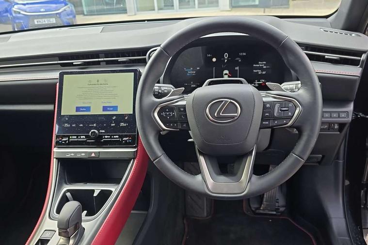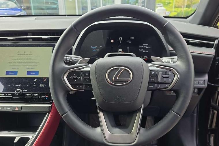 12.3" Digital instrument binnacle, Active Noise Control, Bluetooth connectivity, Cloud navigation, Digital speedometer with high-definition, e-Call (emergency call), Electric power steering, Emergency driving stop system, EV mode, Extended Lexus safety system+ 3 includes blind spot monitor, safe exit assist, camera washer and rear cross traffic alert, Front and rear parking sensors with intelligent clearance sensor, Front and rear smart entry, Lane change flasher function, Lexus link connected services, Lexus safety systems+ 3 includes dynamic radar cruise control, pre collision system day and night, lane tracing assist, road sign assist, Multi info display, Pre-collision system with driver monitor, Push button start, Rear pedestrian detection, Rear view camera, Tachometer/Hybrid system indicator, Tailgate electric lift and close, Tailgate height memory function, Trip meter, Wireless Apple CarPlay and wired Android Auto, Wireless Smartphone charger, Predictive efficient drive, Vehicle dynamic integrated management (VDIM), Vehicle Stability Control (VSC), 1 USB (Type-C) charging ports in bottom of the instrument panel, 1 USB (Type-C) multimedia communication ports in bottom of the instrument panel, 1 USB (Type-C) ports inside front console box, 2 USB (Type-C) ports for charging in rear, 6 speaker audio system, AM/FM and DAB radio, Lexus Link Connect with 9.8" Touchscreen, Rear side monitor, Steering wheel mounted controls, Acoustic glass windscreen, Active brake lights, Auto dimming interior rear view mirror, Auto headlights, Automatic rear flashing hazard lights, Black film door belt moulding, Black outer mirror cover with black ornament, Black resin rocker panel, Black stainless steel moulding side windows frame, Black wheel arches, Chrome plated rear badge LBX, Electric adjustable/heated/auto folding door mirrors, Front and rear electric windows, Full body colour bumpers, Glass breaking sensor, Jet Black bumper and grille garnish, LED 3rd brake light, LED daytime running lights, LED front indicators, LED rear fog light, LED rear lights, Manual levelling headlights, Metallic paint, One touch electric front/rear windows, Power back door without kick function, Privacy UV glass, rear doors and tailgate, Rain sensing wipers, Rear bumper with hidden exhaust, Rear side wing doors, Rear wiper, Roof spoiler, Shark fin antenna, Side indicator lights integrated into door mirrors, Silver plated unified grille, Single bulb LED headlights with auto high beam, Trailer sway control, Wet arm wipers, 12V accessory connector in front console box, 12V socket in front and rear, 2 way manually adjustable front headrests, 2 way manually adjustable rear headrests, 3 bench rear seats in 2nd row, 3 rear headrests, 3 spoke leather trimmed steering wheel, 6 way adjustable front passenger seat, 60/40 split folding rear seat, 8 way electrically adjustable front seats, Aluminium scuff plates, Armrest with sliding cup holder, Automatic air recirculation control, Black roof lining, Black steering wheel and gearshift knob, Centre armrest with storage, Clean air filter with pollen removal and deodoriser, Cup holder in centre console, Driver and passenger door pocket, Driver's lumbar support, Driving position memory for 3 users (seat, steering wheel & door mirrors), Dual zone automatic air conditioning, Front centre console in Wood grain finish, Front headrests, Glovebox, Heated front seats, Humidity sensor for climate control, Illuminated entry system (cabin, footwell, console and door handles), Leather gear lever, LED light in luggage compartment, Luggage cover manually folding, Manually multi adjustable steering column, Memory function for driver seat, Multi colour ambient lighting, Nanoe-X Technology, Organ type accelerator pedal, Red interior accents, Remote climate control, Semi-aniline leather upholstery, Sequential shift and paddles, Single passenger seat, Sport front seats, Storage tray under audio panel and lower tray, Synthetic leather steering wheel, Tahara door panel finish, Tahara upholstered knee pads on front centre console, Touch Sensor Buttons on Steering Wheel, Tsuyasumi interior ornamentaion, Under deck storage, Vibrant edition floor mats, 2 x Isofix child rear seat restraints, 3 point ELR (Emergency Locking Retractor) front seat belt with pretensioners, 3x3 point rear seat belts, ABS/EBD, Active Traction Control (TRC), Adjustable seatbelt anchor points, AVAS - Acoustic Vehicle Alerting System, Dark rose seatbelt, Driver and front passenger side airbags, Driver and front passenger single stage airbags, Driver and passenger seatbelt not fastened - visual and audible warning, Driver knee airbag, E-Latch electric door release, Electronic parking brake, Electronically controlled braking regeneration, ESP, Front and rear curtain shield airbags, Front centre airbag, Front wheel brake - 15inch discs, Hill assist control, Manual rear child locks, Passenger airbag cut-off switch, Rear wheel brake - 15inch discs, Tyre pressure monitoring system, Alarm/anti-theft (with siren and 2 sensors), Auto door locking when driving, Double door lock, E-latch door lock system, Engine immobiliser, Intrusion sensor, Smart keyless entry, Thatcham approved locking wheel nuts, Tilt sensors, Two motion door lock with double lock, VIN etching, Wireless door lock, Double line Tatami stitch door trim ornament, Double line Tatami stitch with double stitch on bolsters, Rear quarter panel in Vibrant edition film, Satin paint door inlays, 18" Matt black alloy wheels, Tyre repair kit,