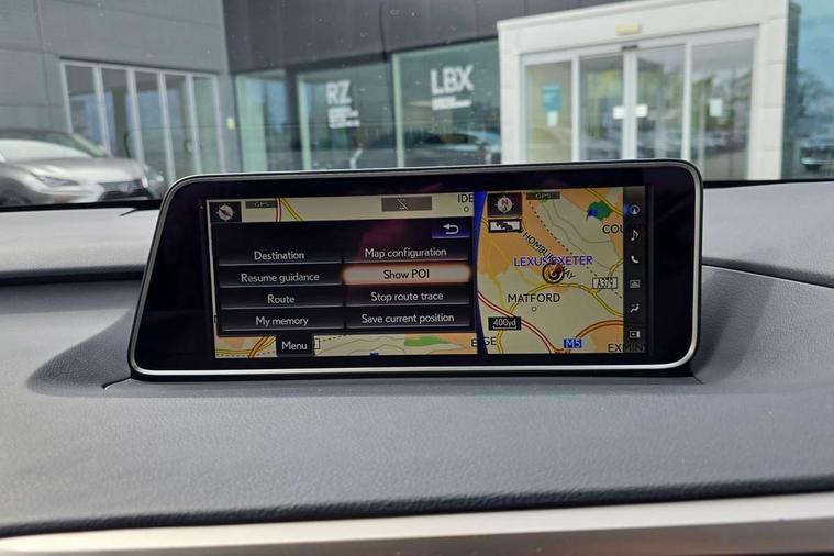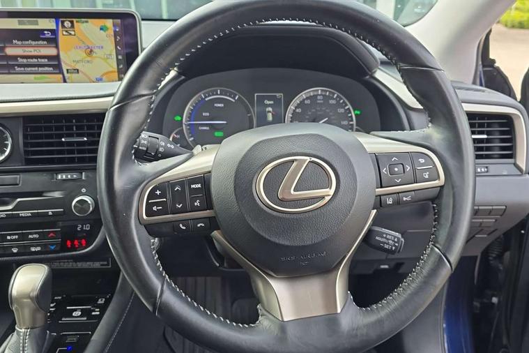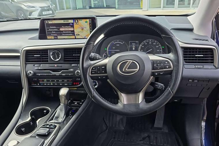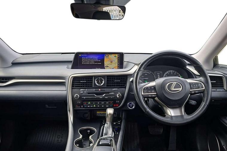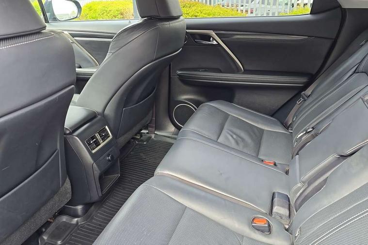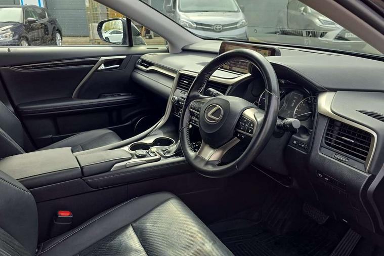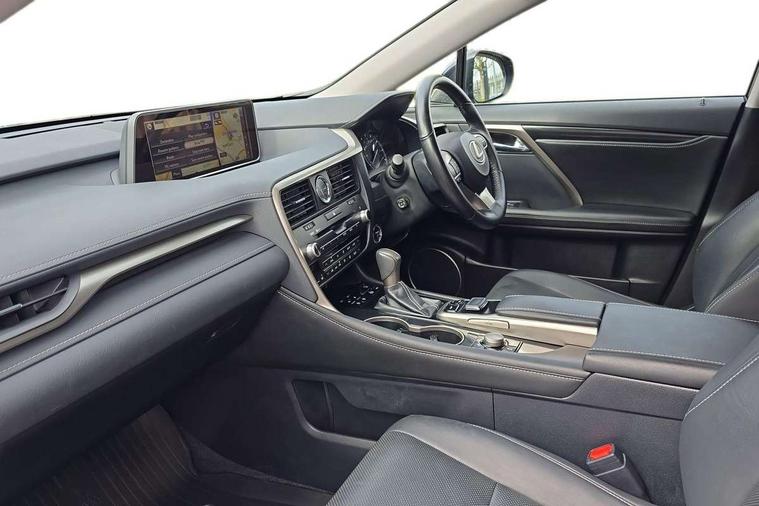 Adaptive cruise control + pre-crash system, Analogue clock, Bluetooth system, Drive mode selector, Driver alert system, EPAS, Front and rear parking sensors, Hands free power tailgate, Intelligent parking assist, Lane keep assist, Multi-information display, Premium navigation system, Push button starter, Remote touch interface, Reversing camera, Service interval indicator, Traffic sign recognition, Trip computer, Wireless Smartphone charger, VDIM, Vehicle Stability Control (VSC), 12 speakers, Auxiliary input socket, DAB Digital radio, DVD System, Steering wheel mounted audio/telephone controls, USB connection, 3 eye LED headlamps, Adaptive front lighting system, Auto dimming interior mirror + dimming door mirrors, Auto high beam, Body colour bumpers, Door mirror memory, Electric folding door mirrors, Electrochromatic rear view mirror, Front and rear electric windows, Front windscreen de-icer, Headlight washers, Heated door mirrors, Laminated front side windows, LED daytime running lights, LED front fog lights, LED rear lights, LED sequential scrolling front indicators, Power back door system, Privacy glass (rear side windows and rear screen), Puddle lights, Rain sensor windscreen wipers, Rear side window blinds, Rear wiper, Roof rails, Roof spoiler, Scuff plates, UV reducing glass, 2 bag hooks in luggage compartment, 2 way electric lumbar support, 3 rear headrests, 3 x 12V power sockets, 4 load securing hooks in luggage area, 60/40 split sliding rear seats, 8 way electrically adjustable front seats, Automatic air recirculation system, Carpet mats, Centre armrest with storage box, Clean air filter, Driver seat memory function, Driver/passenger temperature controls, Dual zone climate control, Electric adjustable steering column, Front centre armrest with 2 cupholders, Front head restraints, Front seat back map pockets, Heated and ventilated front seats, Illuminated entry system, Isofix standard child seat restraint mounting, Leather gear knob, Leather gear lever, Leather steering wheel, LED interior illumination, Lexus safety system +, Memory for steering column, Multi function steering wheel, Rear armrest with storage + cupholders, Rear door map pockets, Sliding/reclining rear seats, Smooth leather upholstery, Sunglasses holder, Sunvisors with illuminated vanity mirrors, ABS, Curtain airbags, Driver/Front Passenger airbags, Driver/front passenger side airbags, Drivers knee airbag, EBD + Brake Assist, Electronic parking brake, Electronically controlled braking, Front passenger seat cushion airbag, Front/rear seatbelt pre-tensioners, Hill start assist, Passenger airbag cut-off device, Rear passenger side airbags, Sway warning system, Three 3 point rear seatbelts, Traction control, Tyre pressure warning, WIL whiplash protection front seats, Anti theft alarm, Deadlocks, Immobiliser, Locking wheel nuts, Remote central double locking, Smart keyless entry, Gloss black interior trim, 20" Alloy wheels, Space saver spare wheel,