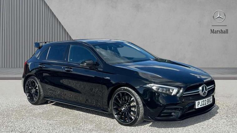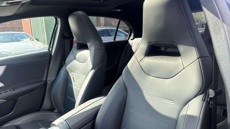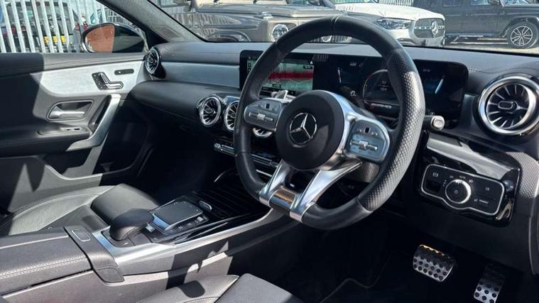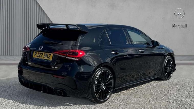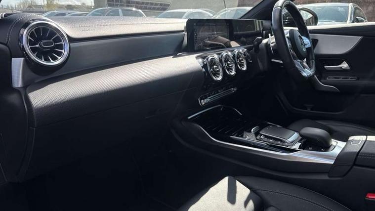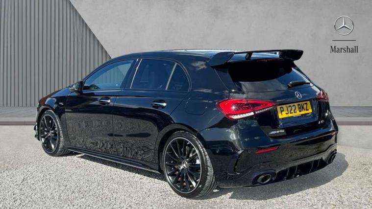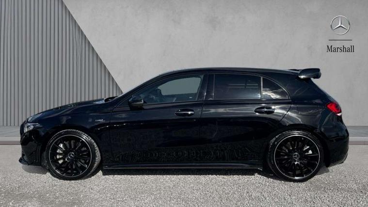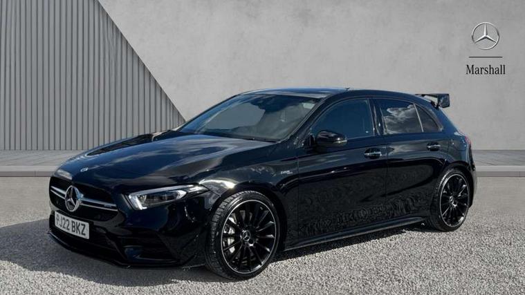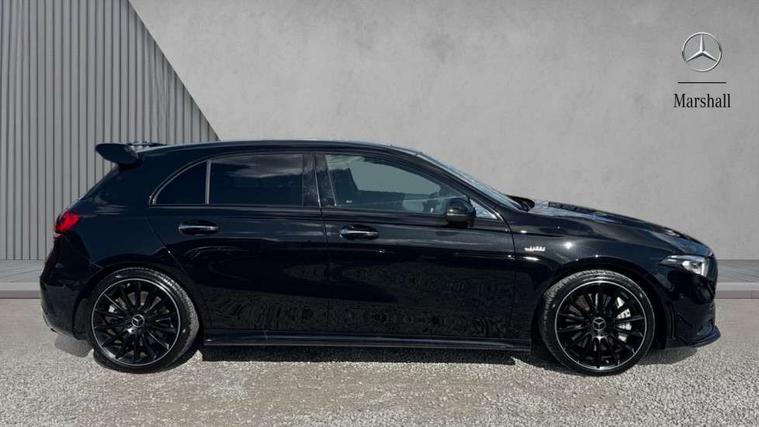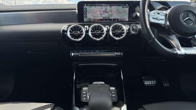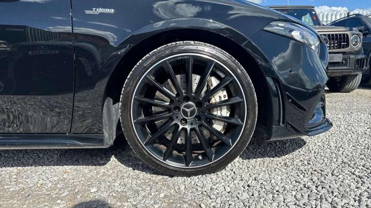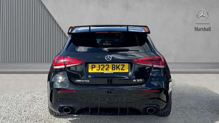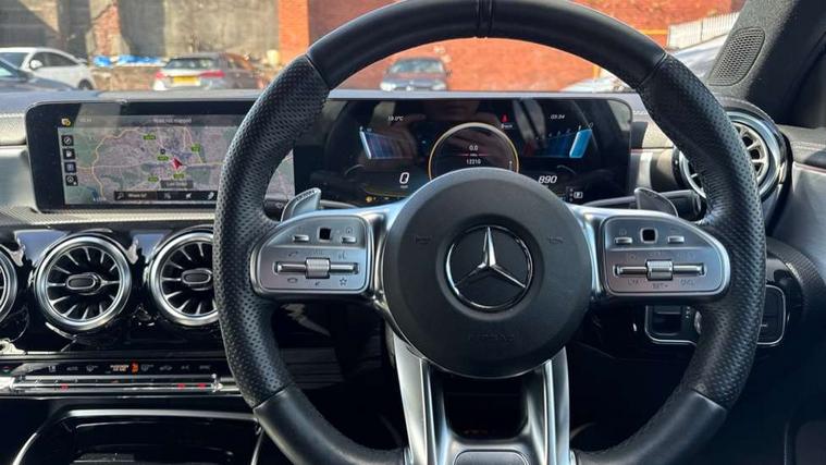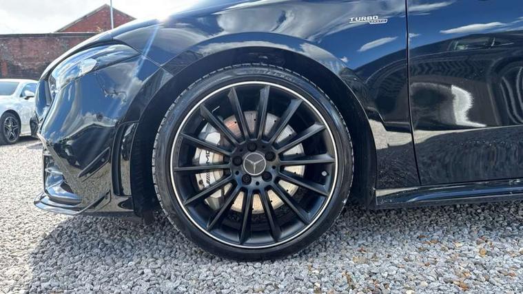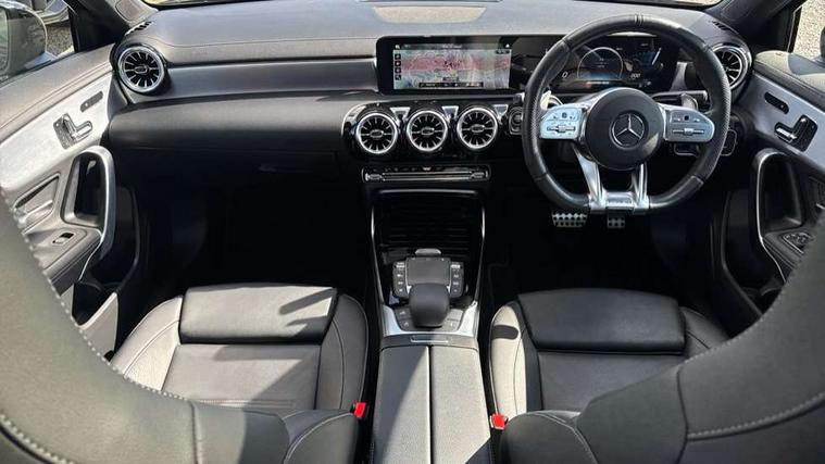 10.25" Digital instrument cluster display screen, 10.25" media display, 180 degree rear view camera with parking guidelines, Active parking assist with visual and audible warning of detected obstacles, Attention assist, Brake pad wear indicator warning light, Car wash mode, Direct steering, Dual bluetooth interfaces, DYNAMIC SELECT with driving programs (Slippery, Comfort, Sport, Sport+ and Individual), ECO start/stop function, Fluid level warning indicator for fuel, oil, coolant and washer fluid, Hard-disk navigation, Hey Mercedes Voice activation, Lamp failure indicator, Lane keeping system, Mercedes me connect including emergency call system, accident recovery, breakdown and maintenance management, Mercedes me remote services, Outside temperature gauge, Owners manual in English, Pre-installation for private car sharing, Preinstallation for Mercedes Benz link, Service indicator (ASSYST), Smartphone integration with Apple CarPlay and Android auto, Traffic sign assist, Trip computer, Ultrasonic sensors positioned in the front and rear bumpers, Rear axle multi-link, 2 USB ports (type C) in rear stowage compartment and one in front of center console, DAB Digital radio, MBUX multimedia system with DAB digital radio and touchpad including satellite navigation, Mercedes-Benz sound system - 100W, 4 Electric Front and Rear windows, Adaptive brake lights, AMG bodystyling - Front apron with splitter in chrome, rear apron with chrome trim and chrome visible trim elements in tailpipe, AMG Front apron with flics as air deflector elements on the outer air intakes, AMG radiator grille with twin blade lamella and AMG Lettering, AMG Rear apron with specific diffuser look with four vertical fins and two round chrome plated tailpipe trim elements with a diameter of 90 mm, AMG spoiler lip on roof, AMG Sports exhaust system with two round tailpipes measuring 90 mm in diameter attached in rear apron, AMG lettering plus ribbing on the inside of the, Automatic headlights, Black weather strip, Body colour bumpers, Body colour door handles, Body colour side skirt, Electric adjustable and heated door mirrors with integrated LED side indicators, Front wings wheel arches with TURBO 4MATIC lettering, Headlamp assist automatic headlamp activation, Heated glass rear windscreen + timer control, High gloss black beltline, LED daytime running lights, LED High level third brake light, LED tail lamp, Multibeam LED headlights with adaptive highbeam assist plus, Panoramic sliding sunroof, Privacy glass, Radio aerial, Rain sensing windscreen wipers with two sensitivity settings, Rear fog lights, Rear side wing doors, Rear wiper, Trim elements on louvres in outer air inlets in high gloss black, Wider wheel arches for AMG wheels, Window line trim strip in high gloss black, 3 seat bench in 2nd row, 40:20:40 split folding rear seats, AMG Performance steering wheel in nappa leather, Auto Mercedes-Benz child seat recognition sensor, Black air vents with surround in silver chrome, Black roof lining, Brushed stainless steel sports pedals with rubber studs, Controller on centre console with chrome surround, Electrically adjustable front memory seats including lumbar support, Floor mats with stitched edging and AMG lettering, Front centre armrest with storage compartment, Front seat backs luggage nets, Front seat cushion length adjustment, Heated front seats, Height/reach adjustable steering column, Illuminated AMG front door sills with changeable cover, Interior lighting - 64 colour Ambient lighting, Interior mirror with reading lamps in black and frameless, Rear armrest with 2 cupholders, Rear head restraints, Seat occupancy sensor for front passenger seat, Silver coloured aluminium gear shift paddles on steering wheel, Single front passenger seat, Sports seats with integrated headrests, Stowage compartment in centre console with retractable cover, Sunvisors with illuminated vanity mirrors, Touchpad on center console, Twin front cupholders, Two zone thermotronic luxury automatic climate control, Aerodynamic pack - A Class, AMG night pack - A Class, Light and sight pack - A Class, Mirror package - A Class, Seat comfort pack - A Class, 3 rear 3 point seatbelts, ABS with Brake Assist, Active bonnet, Adaptive brake assist with hold function and hill start assist, Childproof locks manually operated for rear doors and electrically operated for rear power windows, Crash responsive emergency lighting, Driver and passenger head and side airbags, Drivers knee airbag, Dual stage driver/passenger airbags, Electronic parking brake, ESP curve dynamic assist, ESP with ASR, Front and rear seatbelt reminder, Front brake calipers with AMG lettering, ISOFIX and top tether child seat fixing points in two outer rear seats, Perforated front brake discs, Tyre pressure monitoring system, Warning triangle and first aid kit, Window airbags, Alarm system/interior protection/immobiliser, Keyless entry lock/unlock, Keyless Go, Remote central locking and crash sensor with emergency opening function, Urban guard vehicle protection system with immobiliser and interior protection, Black seatbelts, Light aluminium with longitudinal grain interior trim, 19" AMG multi-spoke matt black painted light alloy wheels with high sheen finish, Summer tyres, Tirefit sealant kit,