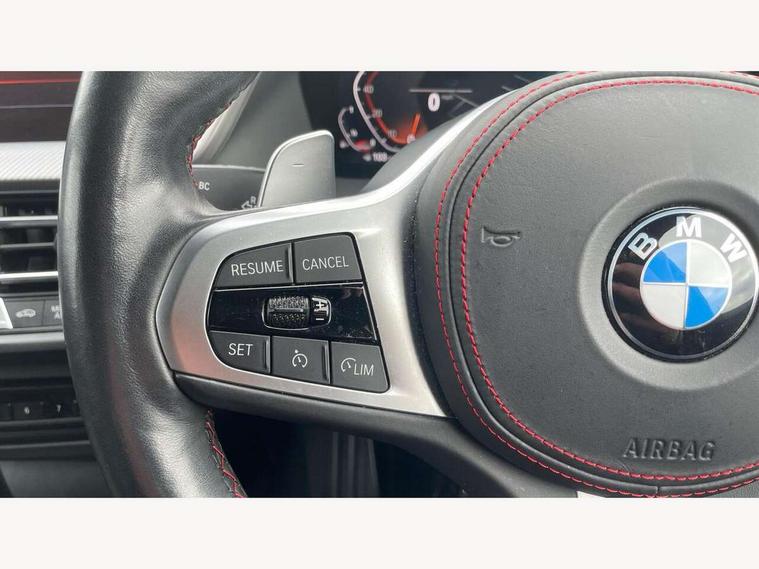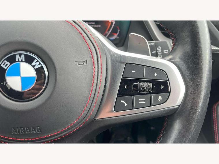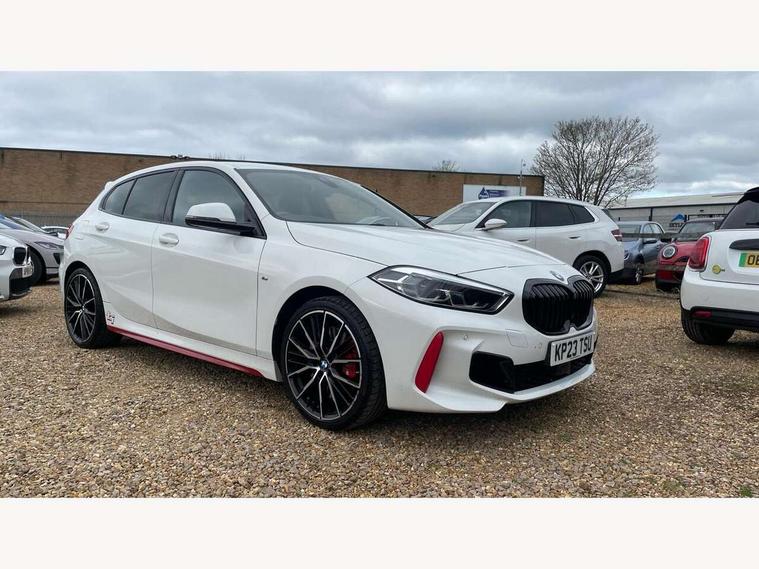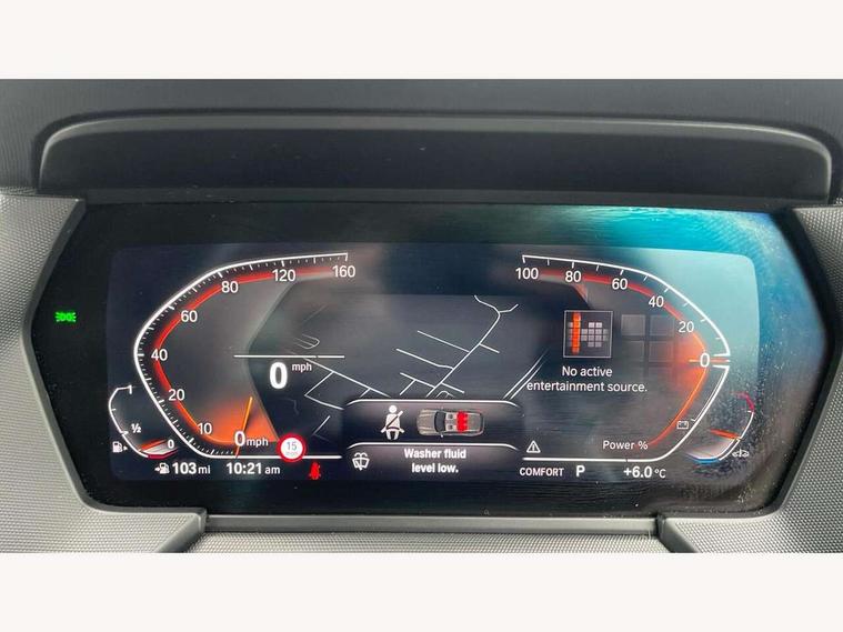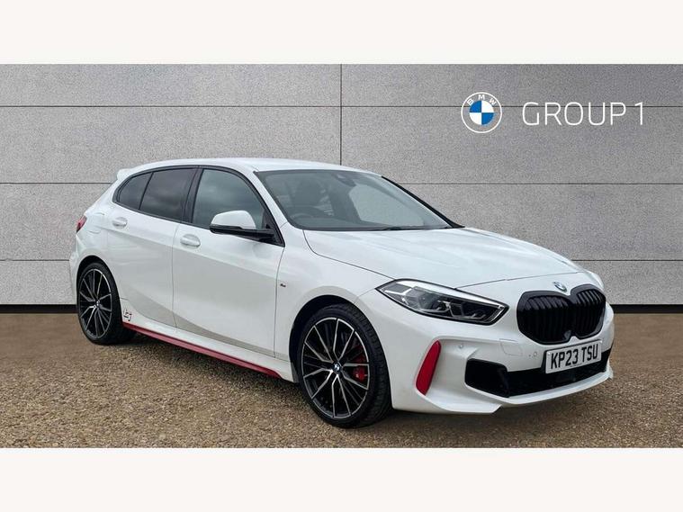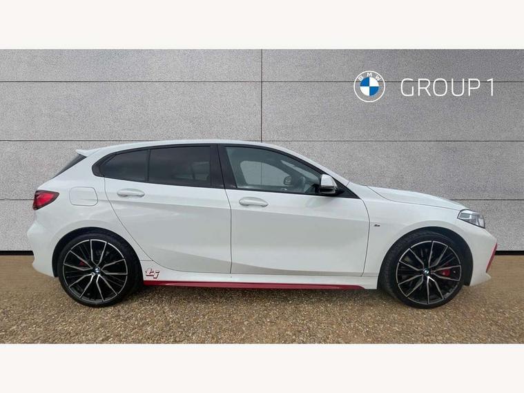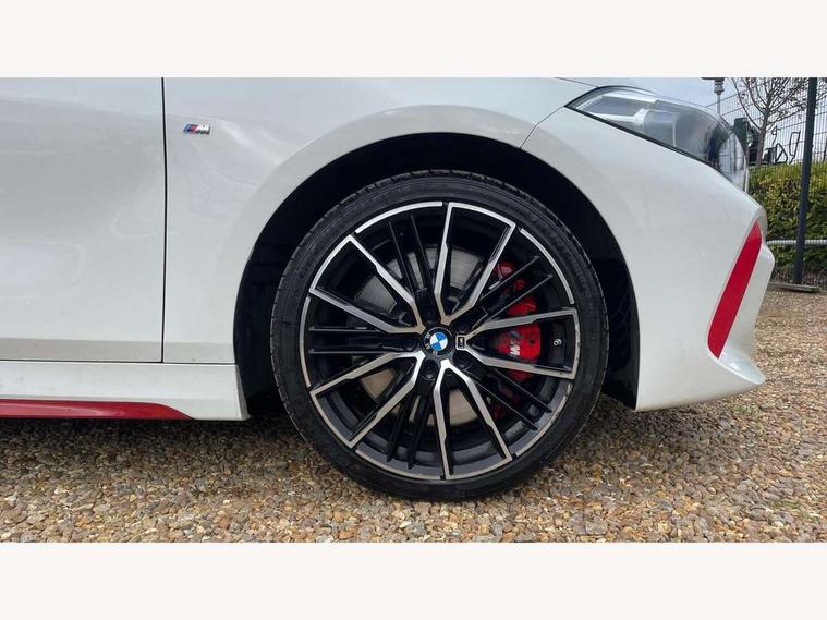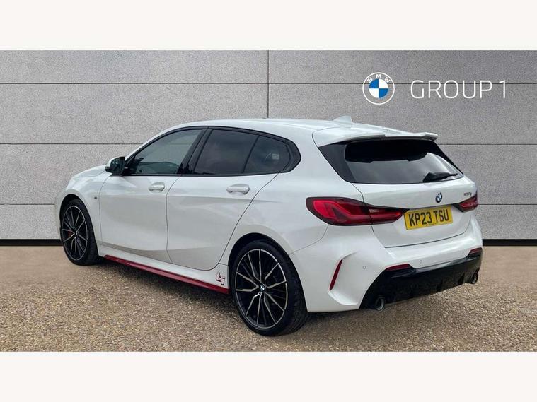 Active guard plus, Attentiveness assist, BMW ConnectedDrive online services, BMW Teleservices, Check Control warning system for monitoring of lights and door/luggage compartment open warning, Cruise control with speed limiter, Eco pro mode, Electric power steering with Servotronic steering optimised at all speed ranges, Front axle single joint with specific axle kinematics to minimise drive influences on steering + provide increased rigidity agile driving behaviour, Integrated owners handbook, Lane departure warning system, Oil sensor for level and grade, On board computer, Optimum shift indicator, Personal Profile, Pull away assistant, Rigidly mounted rear subframe - Multi link construction with separate spring / damper configuration and excellent driving characteristics, Speed limit Info including no-overtaking indicator, Aluminium lightweight construction, Anti roll bar front and rear, Balancer shaft, Double VANOS twin scroll turbocharging system, Drive Performance Control, Eight speed sport automatic transmission with gearshift paddle switches, Electronic differential lock, High precision injection, Larger fuel tank capacity (50 litres), M sport suspension with M128i xDrive specific settings, Petrol Particulate Filter, Twin tube gas filled shock absorbers with degressive characteristic curve, VALVETRONIC engine management, DAB Digital radio, Auto dimming rear view mirror, Automatic headlight beam throw control, Automatic windscreen wipers and automatic headlight, Black chrome tailpipe finishers, BMW individual high gloss shadow line with extended content, Body colour door handles, Body colour mirror caps, Body colour roof trims, Chrome 'M' logo side designation, Chrome kidney grille frame with Satin Aluminium struts, Direction indicator side lights in exterior mirrors, Electrically adjustable exterior mirror with mirror adjustment switch on drivers armrest and aspheric on driver side, convex on passenger side, Fading support, Folding side mirrors with auto dimming/folding wing mirrors with auto dimming, Follow me home headlights, Front and rear bumper system with replaceable deformation elements, Front and rear electric windows with open and close fingertip control, anti trap facility and comfort closing, Front door sill finishers in black plastic with M designation in metallic look, Green tinted heat protection glazing, High gloss shadowline window frame, Recess cover mirror frames and B/C pillar embelisher trim, High level third brake light, Integrated front windscreen with washer jets, Kidney frame and struts in high gloss black extended, LED daytime running lights, LED eyebrow turn indicators, Lightweight engineering, Matt black air guide grilles, Matt black wheel arch trim, Model designation on electric bootlid, Nearside reverse light in rear light cluster, Preparation for high beam assistant, Rear fog lights, Rear side wing doors, Rear window wiper, Shark fin antenna, Trailer stabilisation logic, Visible VIN plate, Welcome lighting, 12V power socket in front centre console with blanking plug, 3 rear seat head restraints, 3 seat bench in 2nd row, Anthracite headlining, Black boot net with lashing eyes, Cargo function on 2nd seat row, Child seat ISOFIX attachment for two outer rear seats and front passenger seat with anchorage points, Conditioned based service, Driver and front passenger backrest net on rear, Driver and front passenger seat heating, Driver side folding compartment in instrument panel, Folding rear clothes hook, Four grab handles integrated in roof lining, Front and rear door pockets with bottle holders, Front and rear side armrest integrated into door trim, Front armrest, Front sports seats, Glove compartment, Height adjustable front head restraints, Luggage compartment for bag hooks on left and right, foldable luggage compartment liner and four lashing eyelets, Manual adjust steering wheel, Multi-function controls for steering wheel, Single front passenger seat, Storage compartment in centre console, Storage compartment in luggage compartment, Stowage of the parcel shelf in luggage compartment trim, Sun visors with vanity mirrors and insert tab, Three spoke M sport design multi function leather steering wheel in unique red stitching, Two front centre console cupholders, Two zone automatic air conditioning, Type C two USB ports in rear centre console, Additional interior lighting pack - 1 Series, BMW live cockpit professional pack- 1 Series, Connected pack professional - 1 Series, Interior lights pack - 1 Series, M Sport exterior styling aerodynamics pack - 1 Series, 2 tone horn, 3 point seatbelts on all seats, front pyrotechnic belt tensioners, stopper and belt force limiters, rear coded belt buckles, Airbags - Front driver/passenger, front and rear curtain head protection, front side, manual deactivation of front passenger airbag, Anti lock braking system (ABS) with brake assist, BMW emergency call, Brake drying, Braking readiness, Child proof locking system in rear door, City braking function, Comfort modes, Cornering brake control, Crash sensor activating of airbags, Unlocking doors, hazard warning lights, interior light, safety battery terminal, Driver and front passenger seat belt security check, Dynamic stability control + (DSC+), Dynamic Traction Control - DTC, Electrically operated hand brake including automatic hold function, Front and rear disc brakes, M Sport brakes with red calipers, M Sport seatbelts, Seatbelt warning, Side impact protection, Tyre pressure monitoring system, Warning triangle and first aid kit, Central locking switch for all doors, fuel filler cap and luggage compartment, Deadlocking function system to all doors, Drive away locking system on all doors and luggage compartment with de-activated in iDrive settings, Locking wheel bolts, Remote control with integrated key with High-gloss Black inlay and M designation and 1 button for open/ close lock, window, open luggage compartment, Start/stop button illuminated in centre console with k