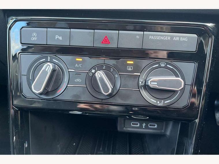 'Lights On' Reminder warning buzzer, Advanced driver attention and drowsiness monitor, Bluetooth telephone and audio connection for compatible devices, Car information display, Dynamic road sign display, E-Sim card for online connectivity, eCall emergency call system, Front and rear parking sensors, Front assist, forward collision warning, autonomous emergency braking and speed limiter, Low washer fluid warning light, Multifunction computer with visual gear change recommendation for fuel consumption, Multifunction front facing camera for distance control, Operating permit alteration, Power assisted steering, Predictive adaptive cruise control, Preparation for navigation system with media and internet package, Preparation for We connect and We connect plus, Rear view camera, Semi-automated driving assistance, travel assist including lane keeping system Lane Assist and emergency assisst, Side assist, Speedo, rev counter, electronic odometer, trip, service interval display, exterior temperature and fuel gauge, Warning sound and light for doors and tailgate open, Warning sound and light for front seatbelts unfastened, Wireless Car net app connect with Apple CarPlay, combined functionality of Apple CarPlay/Android Auto and MirrorLink, Wireless charging, Misfuel prevention device, Start-stop system with battery regeneration (recuperation - energy recovery during braking), 2 USB C ports in front, 2 USB charging sockets on the centre console in the rear charging capacity upto 45W, DAB Digital radio receiver, Diversity antenna for FM reception, Multi device interface (MDI) with USB connection, Music playback - MP3, WMA and AAC files, Radio, Automatic dimming interior rear view mirror, Automatic hazard lights activation under emergency braking, Automatic headlight control with LED separate daytime running light and coming home and leaving home feature, Black roof rails, Body colour door handles, Body colour door mirrors, Body coloured bumpers, Electric folding door mirror, adjustable, heated with front passenger exterior mirror lowering function, Exterior mirrors convex on the left and aspherical on the right, Front and rear electric windows, Galvanised body, Headlight range control, Heat insulating and laminated safety glass windshield, Heat insulating darkened glass in side and rear windows, High Beam Assist, automatic sensing for switching between dipped and main beam, LED rear combination lights, LED third brake light, Lower door sills and door pillars in black, Privacy glass for rear side windows and rear window, Rain sensor, Rear fog light on one side, reversing light on both sides, Rear side wing doors, Rear window aerial, Rear window wiper with intermittent control, Reflectors in all doors, Scuff plates, Tailgate with integrated roof spoiler, 12V Accessory socket in centre console, 3 rear head restraints, 3 seat bench in 2nd row, 60/40 split folding rear seat backrest, Ambient lighting and logo projection, Ceramique roof lining, Cloth upholstery, Door and side trim panel, Driver and front passenger sunvisor with vanity mirror, Dust and pollen filter, Front + rear carpet mats, Front and rear reading lights X 2, Front centre armrest with storage compartment, Front seat back storage pockets, Glove compartment door with light, Heating and fresh air system with 4 stage blower, Height/reach adjust steering wheel, Instrument lighting white adjustable panel illumination, Interior light with switch off delay and dimmer, Isofix anchors for child seats on outer rear seats and front passenger seats, Leather gearshift handle, Leather wrapped multifunction steering wheel, Luggage compartment floor, Luggage compartment lighting, Manual front seats with height adjustment, Padded dashboard, Removable luggage compartment cover, Single front passenger seat, Storage compartment in drivers and front passengers door, Unsplit sliding rear seat bench, Without drawers under front seats, 3 point outer rear seat belts with ECE label, 3 Point seatbelt for centre rear seat, Anti-lock Braking System (ABS) with Hydraulic Brake Assist (HBA), Automatic post collision braking system, Disc brakes in front, Driver and front passenger safety-optimised head restraints, Drivers and Front Passengers airbags with front passengers airbag deactivation switch, Drum brakes in rear, ESC with EDL and ASR (traction control), Extended and predictive pedestrian/cyclist protection, Front and rear passenger curtain airbag system including front side airbags, Height adjustable front 3 point seatbelts + pretensioners, Hill start assist, Pre crash preventive occupant protection, Proactive passenger protection system in combination with front assist, Rear door child safety locks, Rigid safety cell with front and rear crumple zones, Single tone horn, Tyre pressure loss indicator, Volkswagen roadside assistance, Alarm with interior protection, Anti theft alarm system, Electronic engine immobiliser, Remote keyless entry using key fob including Start/Stop button on centre console with SAFELOCK, Remote tailgate unlocking using key fob, Low rolling resistance tyres,
