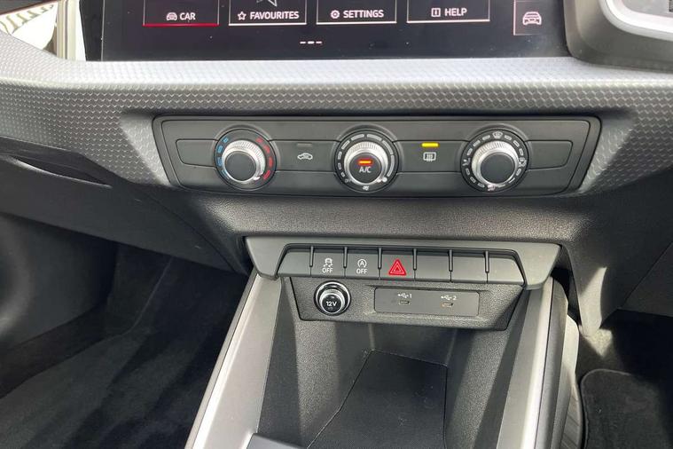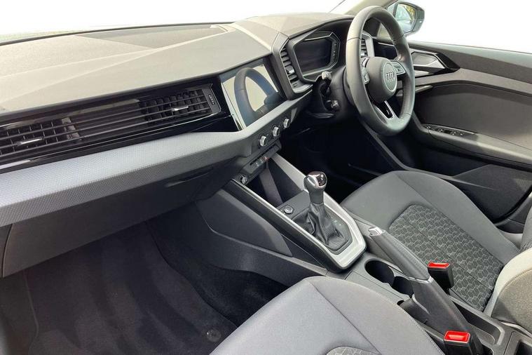 10.25" Digital instrument cluster display classis style instrument dials + speed, odometer, time, outside temperature, telephone menu + fuel level warning, Audi smartphone interface with connect compatible smartphone via USB directly MMI display + Nav, music, third party apps controlled via MMI controller, Automatic start/stop system, Bluetooth interface, Cruise control, Driver's information system, Electromechanical power steering, Emergency e-call, Lane departure warning system, Rear parking sensor, Service interval indicator, Speed limiter, Voice control system, Washer fluid level indicator, Dynamic suspension, 2 x USB type C connection points, 6 passive loudspeakers, DAB Digital radio, MMI radio plus with 10.1" colour MMI display screen and MMI touch, Auto dimming rear view mirror, Body coloured bumpers, Body coloured door mirrors, Electric front and rear windows, Electrically adjustable, heated, folding door mirrors with integrated LED side indicator, Front side air inlets in grained matt black and C frame in anthracite black, Heat insulating glass windscreen and side windows, Heated rear windscreen, High level LED brake light, LED headlights with LED rear lights + dynamic rear indicators + headlight adjustment and high beam, turning light + LED daytime running lights, Radiator grille and rear diffuser in matt anthracite black, Radiator protective grille frame in matt aluminium silver, Rain and light sensors, Rear fog lights, Rear side wing doors, Rear wiper, Side front spoiler lips in grained matt black, 12V socket in centre console with two cup holders, 3 rear seats with headrests, 3 seat bench in 2nd row, 3 spoke leather multifunction plus steering wheel, 40:60 Split folding rear seat or folded fully, Black front and rear floor mats, Door sill trims with aluminium inlay, Driver and passenger seat with manual height adjust with forward and backwards adjustment, Front head restraints, Front passenger seat, Grey cloth headlining, Height and reach adjustable steering wheel, ISOFIX child seat mounting for front passenger and outer rear seats including top tether attachment point of outer rear seats, Leather gear knob with aluminium trim, Leather handbrake grip, Luggage compartment light with front and rear reading lights, Manual air conditioning, Manually adjustable lumbar support in front seats, Novum cloth upholstery with front sport seats, Luggage compartment pack - A1, 3x3 point rear seatbelts, Audi pre-sense front with pedestrain and cyclist recognition, Brake assist function, Driver and front passenger airbag with front side and head airbags, Electronic Stability Control including ABS, EBD, ASR and EDL, Front passenger airbag deactivation switch, Hill hold assist, Manual rear child locks, Seatbelt height adjustment for front seats, Seatbelt monitoring, Tyre pressure warning light, Warning triangle and first aid kit, Anti theft alarm, Anti theft wheel bolts and loose wheel warning, Immobiliser, Remote central locking with 2 foldaway keys, Aluminium trim for control switches, air vents and digital instrument cluster, Black dashboard, Silver grey accent areas including air vents, door handle recesses and centre console in diamond paint finish, Slate grey inlays polygon structure in fine paint finish,