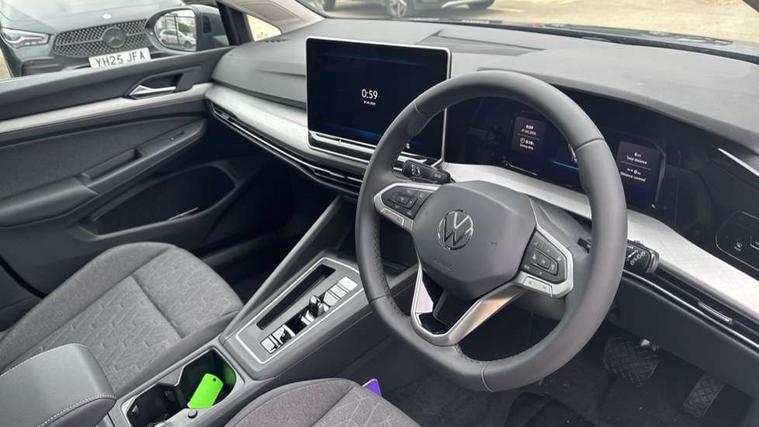 Activated carbon canister, Adaptive cruise control (ACC), Advanced driver attention and drowsiness monitor, Dynamic road sign display, E-Sim card for online connectivity, eCall emergency call system, Multi-color Digital cockpit pro, selection of different info profile possible, Multifunction front facing camera for distance control, Navigation system, Oncoming vehicle braking when turning including swerve support, Speed limiter, Speedo, rev counter, electronic odometer, trip, service interval display, exterior temperature and fuel gauge, Traffic jam assist, Voice enhancer and voice control, Warning signal and warning light for front and rear seatbelts not fastened, We connect plus preparation, We connect preparation, Wireless app connect, Charging cable Mode 2 Type 2 (10A), Charging cable mode 3, type 2 32 A, Electric motor (hybrid electric vehicle) total system output 200kw, unit OEK A, Hybrid propulsion system, Petrol Particulate Filter, Start-stop system with battery regeneration (recuperation - energy recovery during braking), XDS electronic differential lock for improved traction and handling, 2 USB C ports in front, 2 USB charging sockets on the centre console in the rear charging capacity upto 45W, 6 Speakers - 4 in front and 2 in rear with central speaker, Digital radio reception (DAB), Diversity antenna for FM reception, Gaming platform via car app, Infotainment system with 12.9" display, Mobile phone interface with inductive charging feature, 3rd brake light, Automatic headlamp activation with Coming home and Leaving home feature, Body colour door handles, Body colour door mirrors, Exterior mirrors convex on the left and aspherical on the right, Front and rear electric windows, Heat insulating windshield made of laminated glass, LED separate daytime running light, Rear exhaust tailpipe, Rear fog light on one side and reversing lights on both sides, Rear side wing doors, Rear tinted glass 65% light absorbing from B pillar backwards, Rear windscreen washer and wiper with interval delay, Remote electrically foldable door mirrors, puddle lights and reverse activated passenger's door mirror, Standard bumpers, Welcome light with surround lighting, 12V socket in front centre console, 12V socket in luggage compartment, 3 rear head restraints, 3 seat bench in 2nd row, Air care climatronic 3 Zone automatic climate control with rear air conditioning control panel, Chrome plated radiator grille inserts, air vent surrounds and light switch surrounds, Front + rear black carpet mats, Front centre armrest, Front head restraints, Front seat lumbar support adjuster, ISOFIX anchors for child seats on outer rear bench seats and on front passanger seat compatible for i-Size, Luggage compartment lighting, Manual height adjustable front passenger seat, Manually height adjustable driver seat, Plastic gear knob, Rear cupholder and loadthough, Single front passenger seat, Soul black instrument panel, Split folding backrest with centre armrest and unsplit rear seat bench, Standard pedal cluster, Storm grey roof lining, Sun visors with illuminated vanity mirrors, Technology park and comfort pro package - Golf Hatchback, 3 point height adj front seatbelts + pretensioners, 3 rear three point seatbelts, ABS, Autonomous emergency braking front assist with pedestrian and cyclist monitoring, Child locks on rear doors, Driver and front passenger airbag with front passenger airbag deactivation, Electronic parking brake with auto hold, ESC (Electronic Stability Control), Extended pedestrian protection measures, Hill start assist, Rear disc brakes, Two tone horn, Tyre pressure loss indicator, Volkswagen roadside assistance, Anti theft wheel bolts, Preparation for alcohol interlock, Nature cross brushed decorative inserts for dashboard and front door panels, Tool kit for tyre mobility set, Tyre mobility kit Includes 12V compressor and tyre sealant,