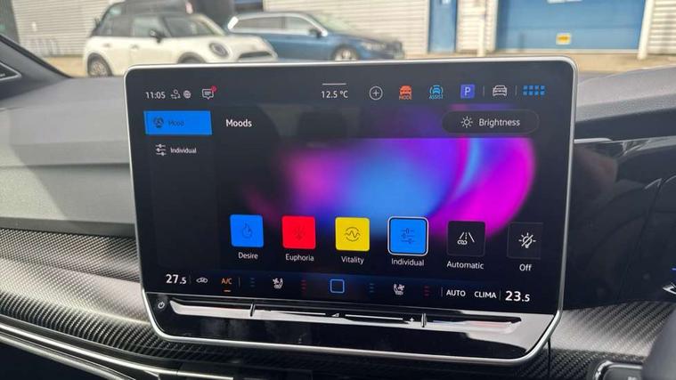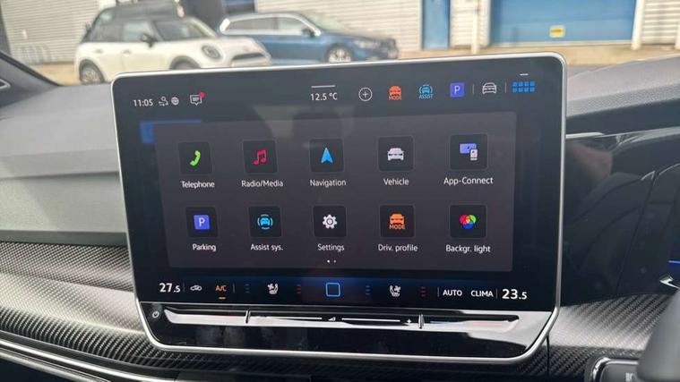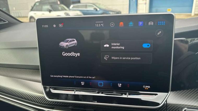 Activated carbon canister, Adaptive cruise control (ACC), Advanced driver attention and drowsiness monitor, Dynamic road sign display, E-Sim card for online connectivity, eCall emergency call system, Electronic maximum speed limit increased to 270 km/h, includes driving Modes 'drift' and 'special', larger roof spolier and GPS laptimer + G-Meter, Multi-color Digital cockpit pro, selection of different info profile possible, Multifunction front facing camera for distance control, Navigation system, Oncoming vehicle braking when turning including swerve support, Progressive steering, Side assist blind spot lane change system, rear traffic alert and exit warning system, Speed limiter, Speedo, rev counter, electronic odometer, trip, service interval display, exterior temperature and fuel gauge, Traffic jam assist, Voice enhancer and voice control, Warning signal and warning light for front and rear seatbelts not fastened, We connect plus preparation, We connect preparation, Wireless app connect, All wheel drive - 4Motion, Petrol Particulate Filter, Start-stop system with battery regeneration (recuperation - energy recovery during braking), XDS electronic differential lock for improved traction and handling, 2 USB C ports in front, 2 USB charging sockets on the centre console in the rear charging capacity upto 45W, Digital radio reception (DAB), Diversity antenna for FM reception, Gaming platform via car app, Infotainment system with 12.9" display, Mobile phone interface with inductive charging feature, 3rd brake light, Auto dimming rear view mirror, Automatic headlamp activation with Coming home and Leaving home feature, Black badge on B-pillar, Black mirror caps, Black strips on radiator grille and headlights, Body colour door handles, Darkened headlights, Darkened R Logos and VW logos in front, rear and on fender, Exterior mirrors convex on the left and aspherical on the right, Front and rear electric windows, Front fog lamps and cornering light, Heat insulating windshield made of laminated glass, Illuminated lighting animation with wake up/goodbye scenario, LED matrix headlights with ambient light V2, advanced high beam, dynamic range contol with cornering, LED rear lamp with indicator, poor weather, LED separate daytime running light, Light assist with High beam control, R name plate, Rain sensor, Rear fog light on one side and reversing lights on both sides, Rear side wing doors, Rear tinted glass 65% light absorbing from B pillar backwards, Rear windscreen washer and wiper with interval delay, Remote electrically foldable door mirrors, puddle lights and reverse activated passenger's door mirror, Welcome light with surround lighting, 12V socket in front centre console, 12V socket in luggage compartment, 3 rear head restraints, 3 seat bench in 2nd row, 30 colour ambient lighting, illuminated center console storage compartment in front, Air care climatronic 3 Zone automatic climate control with rear air conditioning control panel, Aluminium gearshift handle, Brushed stainless steel pedals, Chrome plated radiator grille inserts, air vent surrounds and light switch surrounds, Entry lights, Front + rear black carpet mats, Front centre armrest, Integrated front head restraints, ISOFIX anchors for child seats on outer rear bench seats and on front passanger seat compatible for i-Size, Luggage compartment lighting, Rear cupholder and loadthough, Single front passenger seat, Soul black instrument panel, Soul black roof lining, Split folding backrest with centre armrest and unsplit rear seat bench, Sun visors with illuminated vanity mirrors, Driver assistance pack - Golf Estate/Hatchback Auto, R styling pack - Golf, Technology park and comfort pro package - Golf Hatchback, 3 point height adj front seatbelts + pretensioners, 3 rear three point seatbelts, ABS, Autonomous emergency braking front assist with pedestrian and cyclist monitoring, Child locks on rear doors, Driver and front passenger airbag with front passenger airbag deactivation, Electronic parking brake with auto hold, ESC (Electronic Stability Control), Extended pedestrian protection measures, Front and rear black brake calipers with darkened R-logo, Hill start assist, Rear disc brakes, Two tone horn, Tyre pressure loss indicator, Volkswagen roadside assistance, Anti theft wheel bolts, Preparation for alcohol interlock, Sporty vehicle dynamics, Tool kit for tyre mobility set, Tyre mobility kit Includes 12V compressor and tyre sealant, Wheel hub cover with darkened R-logo,