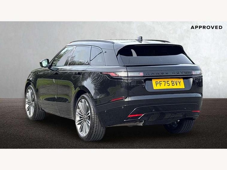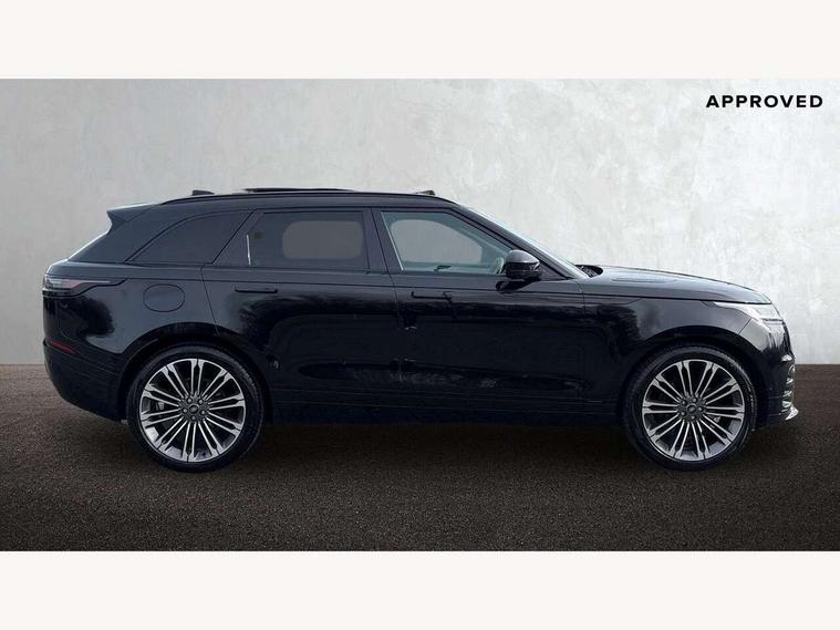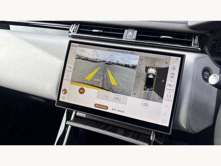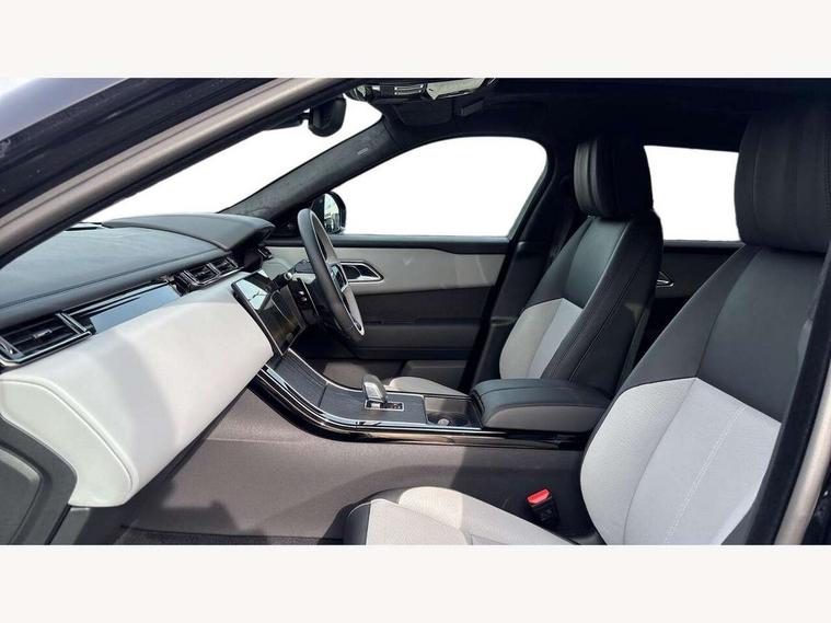 3D surround camera includes forward traffic detection and vehicle guidance, Adaptive cruise control with steering assist, Android Auto, Apple CarPlay, Blind spot assist, Bluetooth connectivity, Brake pad wear indicator warning light, Driver condition monitor, eCall emergency call system, Front and rear parking aid, InControl remote, Land Rover InControl apps, Lane keep assist, Pivi pro with connected navigation, Rear collision monitor, Rear traffic monitor, Service indicator, Speed proportional electronic power assisted steering (EPAS), Traffic sign recognition with adaptive speed limiter, Trip computer, Voice control system, Wade Sensing, Wireless device charging, 8 speed automatic transmission, Adaptive dynamics, All terrain progress control, Electronic air suspension, Open differential with torque vectoring by braking, Single speed transfer box, Terrain Response 2 with dynamic program, DAB radio, Steering wheel mounted controls, 3rd brake light, Acoustic laminated windscreen, Auto dimming interior rear view mirror, Autobiography badge, Automatic headlamp levelling, Automatic headlights, Black roof rails, Body coloured bumpers, Boot protection plate, Contrast bonnet in burnished copper & rear lettering, Electric windows with one touch open/close and anti trap, Flush deployable exterior door handles, Follow me home headlights, Heated rear window with timer, Heated washer jets, Heated windscreen, Metal load space scuff plates, Pixel LED headlights with signature DRL, Power fold, auto-dimming, heated door mirrors with memory and approach lights, Rain sensor windscreen wipers, Rear animated directional indicators, Rear fog lights, Rear side wing doors, Rear wash/wipe, Sliding panoramic roof with powered sunblind, Tailgate/boot lid spoiler, Trailer stability assist, Velar badge, 3 seat bench in 2nd row, Ambient lighting, Bright metal pedals, Carpet mats, Driver/passenger sunvisors with illuminated vanity mirrors, Ebony suedecloth headlining, Electrically adjustable steering column, Full extended leather upgrade, Heated steering wheel, Isofix system on outer rear seats, Loadspace cover, Overhead lighting console, Overhead stowage for sunglasses, Passive front headrests, Rear air vents, Rear centre headrest, Single front passenger seat, Twin front cupholders, Twin sliding front centre armrest, Online pack with data plan - Velar, Power socket pack 2 - Velar, 380mm front brakes and 325mm rear brakes, 3x3 point rear seatbelts, Anti-lock braking system (ABS), Cornering brake control, Curtain airbags, Customer configurable autolock, Door side intrusion beams, Driver airbag, DSC - Dynamic Stability Control, Electronic brake force distribution, Electronic parking brake, Electronic traction control, Emergency braking, Front and rear seatbelt reminder, Hill descent control, Hill launch assist, Low traction launch, Passenger airbag, Power operated child locks, Rear airbags, Roll stability control, Side airbags, Tyre pressure monitoring system (TPMS), Global lock and unlock switch on driver door, Immobiliser, Intrusion sensor, Keyless entry, Lock only switch on front passenger door, Locking wheel nuts, Perimetric alarm, Remote central locking, All season tyres,