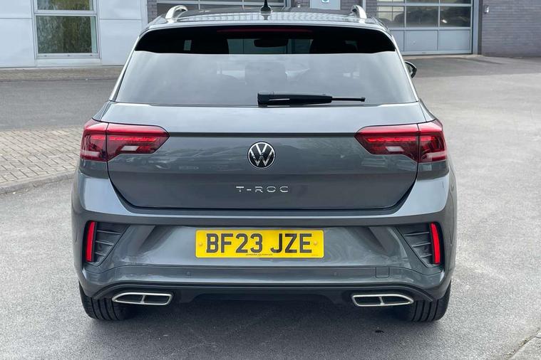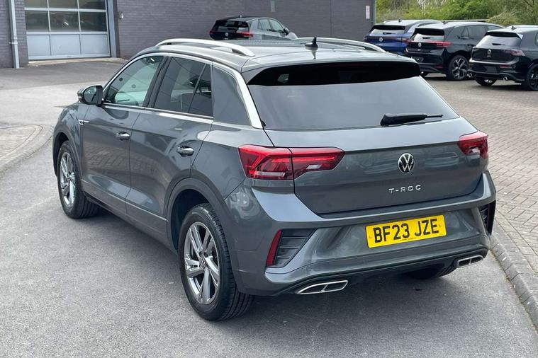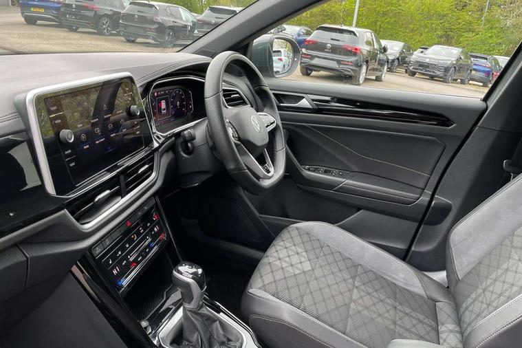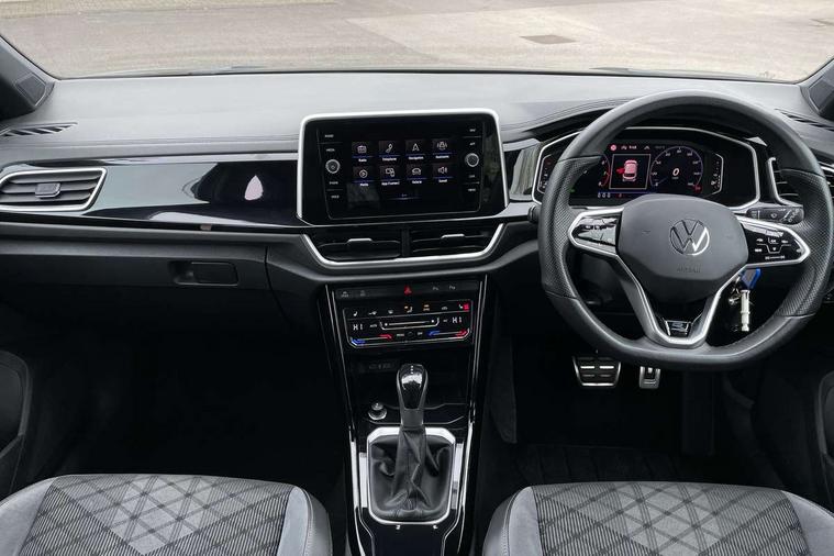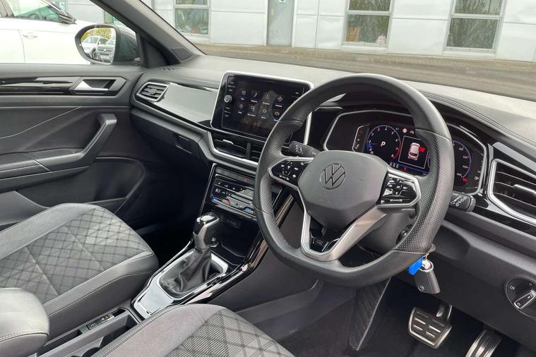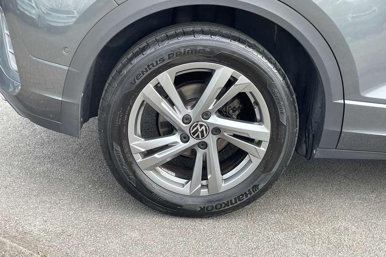 10.25" Digital cockpit pro, Bluetooth mobile phone interface, Driver alert system with fatigue detection, Driver tips and journey analysis, Emergency call service, Lane keeping system Lane Assist, Modified key software - reduce switch off time for key status change to Long no motion, Online services, Park assist including front and rear parking sensors, Service interval indicator, Tailgate/trunk lid release from outside, Think blue trainer driver tips and journey analysis, Warning sound and light for front seatbelts unfastened, Wireless app connect, Battery regeneration during braking, Start/stop function with battery regeneration, Diversity antenna for FM reception, Front and rear 6 speakers, Music playback - MP3, WMA and AAC files, Premium USB cable in choice of either Apple or Android smartphone compatibility, SD card slot, Simultaneous pairing of 2 compatible mobile devices, Title and cover art display, We Connect and We Connect Plus functionality, 3rd brake light, Auto dimming interior rear view mirror, Automatic hazard lights activation under emergency braking, Automatic headlight control with LED separate daytime running lights with coming/leaving home function, Extended roof spoiler, Exterior mirrors aspherical on driver side, convex on front passenger side, External USB type C socket and charging sockets, Front windscreen wiper with intermittent wipe and 4 position delay, Heated rear window, LED Plus headlamps, LED rear combination lamps, LED rear number plate lights, LED tail lamp rear comination lamps, Power windows with comfort operation and circuit breaker, R-Line design body coloured bumpers, Rain sensor, Rear exhaust tailpipe, Rear fog light on one side and reversing lights on both sides, Rear side wing doors, Rear wash/wipe with intermittent wipe setting, Remote electrically foldable door mirrors, puddle lights and reverse activated passenger's door mirror, 12V power socket in centre console, 3 rear head restraints, 3 seat bench in 2nd row, 4 load lashing points in luggage compartment, Air care climatronic air conditoning system with active combination filter and 2-zone temperature control, Black roof lining, Chrome plated radiator grille inserts, air vent surrounds and light switch surrounds, Door and side trim panel with leatherette insert, Drawer under drivers seat, Front + rear carpet mats, Front centre armrest, Front cupholders x 2, Front footwell illumination, Front reading light, Front scuff plates with R logo, Instrument lighting, white adjustable panel illumination, Interior ambient lighting and surround lighting, Interior light delay, Isofix child seat preparation, Leather gearshift handle, Load-through provision with cup holder when folded down ('Unsplit rear seat bench, split folding backrest, with centre armrest), Luggage compartment lighting, Single front passenger seat, Stainless steel pedals, Storage compartment in left and right luggage area, Storage compartment in rear doors, Storage compartments in driver and front passenger doors, Sunvisors with illuminated vanity mirrors, Variable boot floor, height adjustable and removable, Driver assistance pack without proactive passenger protection - T-Roc, 3 point height adj front seatbelts + pretensioners, 3 point seatbelts in outer rear with ECE label, ABS, Child locks on rear doors, Driver and front passenger airbag with front passenger airbag deactivation, Driver and front passenger safety-optimised head restraints, Drivers seatbelt reminder, Electronic parking brake, Electronic Stability Control (ESC) inc EDL (Electronic Differential Lock) and ASR (Traction Control), Front and rear passengers curtain airbag system including front side airbags, Front assist with city emergency braking and pedestrian monitoring, Front seat side impact airbags, Hill start assist, Predictive pedestrian protection, Rear disc brakes, Single tone horn, Tyre pressure loss indicator, Volkswagen roadside assistance, Alarm with interior protection, Anti-theft alarm system with interior monitoring, backup horn, and towing protection, Remote central locking with SAFELOCK, radio remote control with 2 remote control folding keys, Trims for alloy wheels,