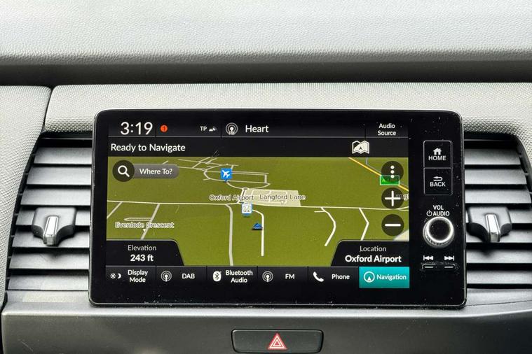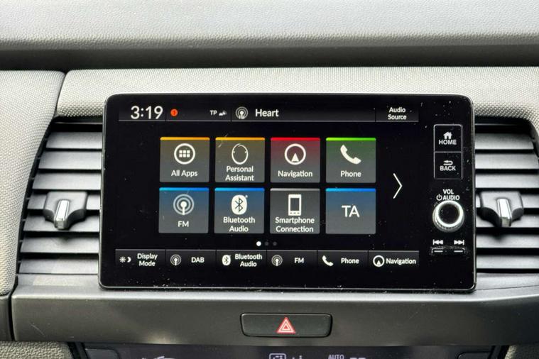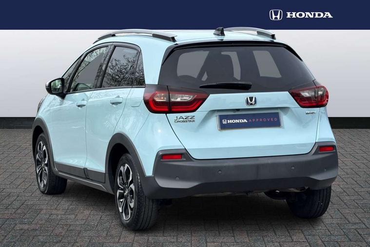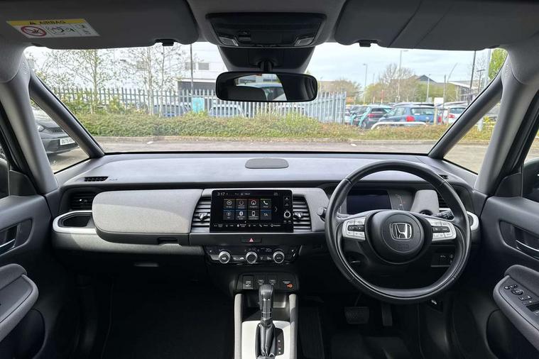 Adaptive cruise control, Bluetooth hands free telephone connection, Econ mode, Electric power steering wheel with variable gear ratio steering, Emergency stop signalling system, Forward collision warning, Front and rear parking sensors, Honda CONNECT with HERE Navigation + 9" touchscreen, AM/FM/DAB/Apple Carplay and android auto, Idle stop, Intelligent speed limiter, Lane departure warning system, Lane keep assist system, Low speed following, Multi-information display, Road departure mitigation, Traffic sign recognition, Vehicle stability assist, 'Shark fin' mobile antenna, 2 USB sockets in rear, 2x USB Front socket (1 data & 1 charge), Premium audio with 8 speakers, front tweeter, centre speaker, Remote audio controls on steering wheel, Subwoofer, Aspheric door mirrors, Auto wipers, Automatic headlights with on/off timer, Coming/leaving home function, Body colour door handles, eHEV emblem, Electric adjustable door mirrors, Electrically folding door mirrors, Exclusive styling includes Front and rear bumper, Front fog garnish, Black fender, side sill garnish, Front and rear electric windows, Heated door mirrors, High beam assist, LED daytime running lights, LED front fog lights, LED Headlights, LED rear lights, Privacy glass, Roof rails, Single exhaust tailpipe, 60/40 split rear bench seat, Climate control air conditioning, Driver and front passenger seat armrests, Driver and passenger front seat pockets, Driver's seat height adjustment, Fabric/Water repellent upholstery, Front accessory power socket, Front head restraints, Front map lights, Front/rear courtesy lights, Heated front seats, Isofix child seat restraint mechanism, Isofix points, Leather gearshift knob, Leather steering wheel, Magic seat flexibility system, Paddle shift controls, Plating interior door handles, Rear head restraints, Rear parcel shelf, Sunvisors with vanity mirrors, Tilt/telescopic adjustable steering wheel, Tonneau cover, Trunk light, 3x3 point rear seatbelts, Anti-lock braking system (ABS), Brake assist function, Brake hold function, Collision mitigation braking system, Deflation warning system, Driver knee airbag, Driver SRS airbag (single stage inflation), Driver/Front Passenger airbags, Electric parking brake, Front and rear side curtain airbag, Front side airbags, Hill start assist, Passenger SRS airbag cut-off device, Rear side airbags, Front seat belt with emergency locking retractor, Honda super locks, Immobiliser, Mirrors and windows key fob operation, Remote central locking with 2 remote folding keys, Security alarm, Smart entry + Smart start, Soft pad mesh interior panels, 16" AL Crosstar alloy wheels in mat berlina black, Tyre repair kit,