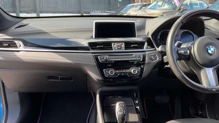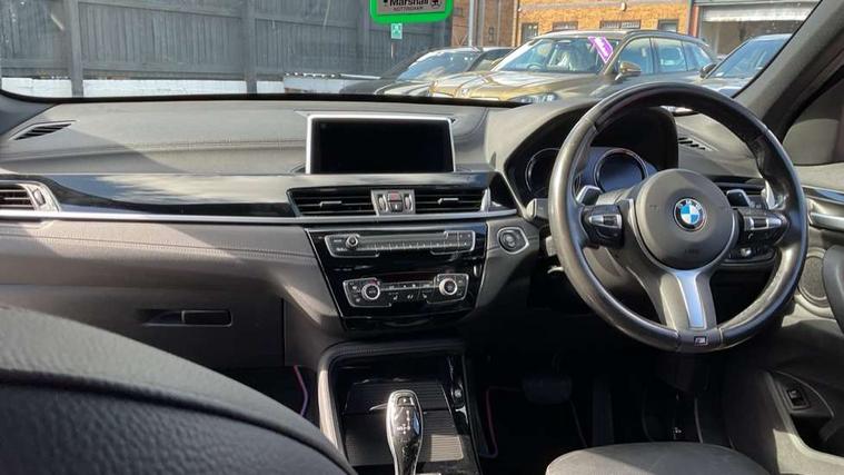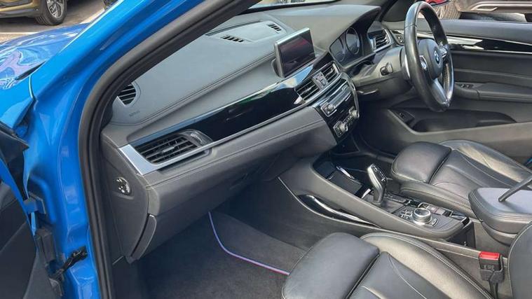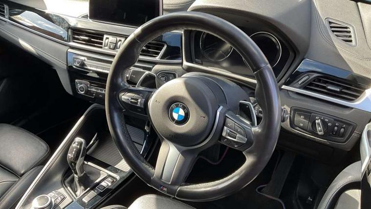 Ambient temperature display, Attentiveness assist, Automatic tailgate opening, BMW Online services, BMW remote services, BMW Teleservices, Brake pad wear indicator in front and rear, Front/rear park distance control (PDC), Instrument cluster with speedometer with miles per hour read out, tachometer and fuel gauge, Lights on warning by audio warning signal when ignition is switched off, Navigation system + 8.8" monitor, On board computer, Optimum shift indicator, Outside temperature gauge, Park assist system, Personal Profile - automatic lock when driving away selectable, Real time traffic information, Service interval indicator, Servotronic PAS, Stop/start button, Tyre puncture warning system, 12V compressor with integrated sealant injection bottle and hose, 51 Litre fuel tank, Anti-roll bars, Balancer shaft, Drive performance control with ECO PRO comfort + sport mode, Electronic differential lock, High precision injection, Performance Control, Twin tube gas filled shock absorbers with degressive characteristic curve, 2 USB Power socket for rear seat, DAB Digital radio, USB connection located in centre console, USB/audio interface, Adjustable headlights, Aero curtain, Automatically dimming rear view mirror, Body colour bumpers, Body colour door handles, Body colour door mirrors, Body colour wheel arches and side sills, Clear lenses direction indicator lights, Direction indicator side lights integrated exterior mirrors, Dynamic brake lights, Electrically adjustable door mirrors with aspheric on driver side, convex on passenger side with integrated indicators, Exterior mirrors - electrically folding with anti-dazzle, Fingertip control / anti-trap function on electric window, Follow me home headlights, Front air guide finished in black silver, Front air inlets in matt black with silver finisher matt, Front and rear bumper system, Front and rear electric windows, Front bumper air intakes with dark shadow finisher, Green tinted heat protection glazing glass, Headlight beam throw control, Heated door mirrors, Heated windscreen washer jets, High gloss shadow line, High level third brake light, Kidney grille with 14 chrome black vertical bars, LED daytime running lights, LED front fog lights, Lightweight engineering, M aerodynamic body styling, M logo designation in side chrome, Model designation, Rain sensor including auto headlights activation, Rear bumper with dark shadow and underbody protection in body colour, Rear fog lights, Rear window aerial, Rear window wash/wipe, Reversing light in rear light cluster, Roof mouldings in matt black, Shark fin antenna, Sill cover in silver matt insert, Twin chrome exhaust tailpipes x2, Visible VIN plate, Welcome lighting, 12v power point in centre console, 3 rear headrests, 4 grab handles, 40:20:40 split folding rear bench seat, Anthracite headlining, Automatic light activation, Boot light, Child seat ISOFIX attachment for two outer rear seats and front passenger seat with anchorage points, Dakota leather upholstery with perforation and contrast stitching, Driver and front passenger heated seats, Driver/front passenger seat backrest back with luggage net, Driver/passenger sunvisors with ticket holders, Dual zone automatic air conditioning, Extended storage, Front and rear door armrests, Front centre armrest/sliding cover, Front door sill finishers with M designation, Front sports seats, Front/rear adjustable head restraints, Gearshift lever with M designation, Illuminated glovebox, Leather gearknob/gaiter/handbrake grip, LED ambient lighting in door trim, Luggage area underfloor compartment, Luggage compartment access via recessed handle below tailgate, Luggage compartment lighting, Luggage compartment loading edge with stainless steel insert, Manually adjustment steering wheel column, Multifunction steering wheel, Rear coded belt buckles, Steering wheel gearshift paddles, Velour floor carpets, Extended lights pack - X1, Extended storage package - X1, 3 rear 3 point seatbelts, ABS/EBD, Audio/visual collision warning system, Automatic Stability Control (ASC), Battery safety cut-off, BMW emergency call, Brake drying, Brake energy regeneration, Braking readiness, Cornering brake control (CBC), Crash Sensor - activates hazard/interior lighting + unlocks doors, Driver/Front Passenger airbags, Driver/front passenger side airbags, Dynamic brake control, Dynamic stability control + (DSC+), Dynamic Traction Control - DTC, Electronic parking brake, Front and rear head airbags, Front passenger airbag deactivation, Front seatbelt force limiters, Front ventilated disc brakes, Hill start assist, Pyrotechnically pre-tensioned front seatbelts, Rear disc brakes, Rear door child safety locks, Seatbelt security check for driver and front passenger, Side impact protection, Twin horns, Tyre pressure monitor, Warning triangle and first aid kit, Auto door lock when driving, Central locking switch for all doors, fuel filler cap and luggage compartment, Check control system for monitoring of lights and door/luggage compartment open warning, Engine immobiliser, Locking wheel nuts, Remote control Thatcham category 1 alarm, Remote control with integrated key with M specific highlight, Contrast stitching on instrument panel, High gloss black centre console, Low rolling resistance tyres,