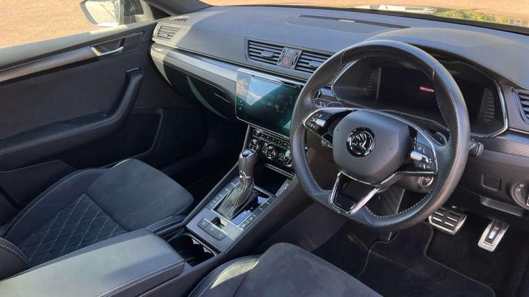 Bluetooth system, CareConnect and Emergency Call, Columbus HDD satellite 3D map navigation with 9.2" colour touch screen, web radio, integrated Wi-Fi, Driver fatigue sensor, Front assist with pedestrian protection, Progressive dynamic steering, Stop/start engine system and energy recovery, Virtual cockpit, Voice control system, Wireless smartlink apple carplay, SmartLink+ android auto, XDS+, 2 USB ports, Bolero radio with 8" touchscreen display, DAB Digital radio, 3rd brake light, Aero front windscreen wipers with intermittent function, Auto dimming rear view mirror, Black rear badge, Body colour door handles, Cornering front fog lights, Electrically adjustable heated and folding door mirrors with memory function, Front and rear electric windows, Full matrix LED headlights with AFS LED DRL integrated with headlight washer LED rear lights(High function), dynamic indicators and lighting animation, Gloss black exterior door mirrors with sports styling including front grill, side strip and window surrounds, Gloss black grille surround with gloss black rib elements, Gloss black rear spoiler (roof), Gloss black strip between rear lights, Light assistant (coming/leaving home/tunnel light), Privacy glass, Rain sensor, Rear exhaust diffuser styling elements, Rear side wing doors, Sportline badging, 12v power point in centre console, 3 seat bench in 2nd row, Black roof headlining, Black textile floor mats, Carbon optic interior elements, Electric auxiliary air heater, Front and rear footwell illumination, Front armrest with storage box, Height adjustable front and rear head restraints, Ice scraper, Illuminated and cooled glovebox, Interior lights with control switches, Isofix child seat fittings on outer rear seats, LED front and rear reading lights, Microsuede/leather upholstery with silver diamond stitching sports seats, One umbrella compartments in driver door with one umbrella in drivers door, Overhead glasses storage compartment, Rear centre armrest with cupholders, Removable parcel shelf, Single front passenger seat, Split folding rear seats, Storage compartment with cover in luggage compartment side panels, Ticket holder on A Pillar, LED package plus - Superb, 3 rear seatbelts, 7 airbags - Front, front side, curtain, driver's knee airbag with front passenger deactivation switch, Driver and passenger seatbelts with warning light, Electronic parking brake, ESC including ABS, EBV, MSR, ASR, EDS, HBA, DSR, RBS, CBC, multi-collision brake (MKB) and Auto hold, Hill start assist, Power operated child lock in rear doors, Tyre pressure monitor, Alarm with interior monitoring tilt sensor and back up horn, Electronic engine immobiliser, Keyless entry and start/stop, Remote central locking with SAFE system, Third remote key,