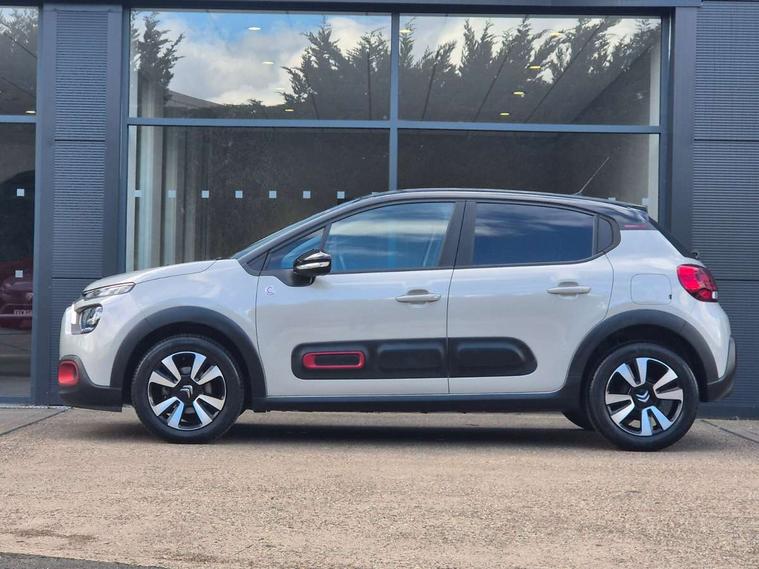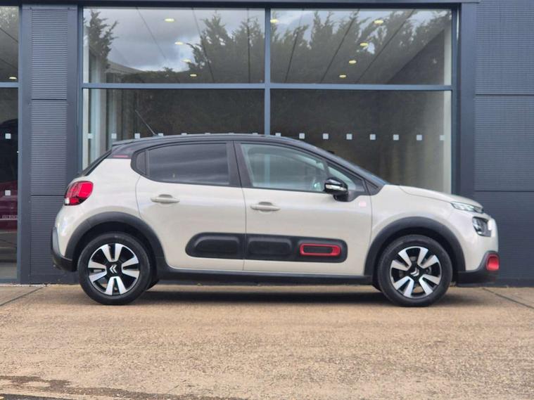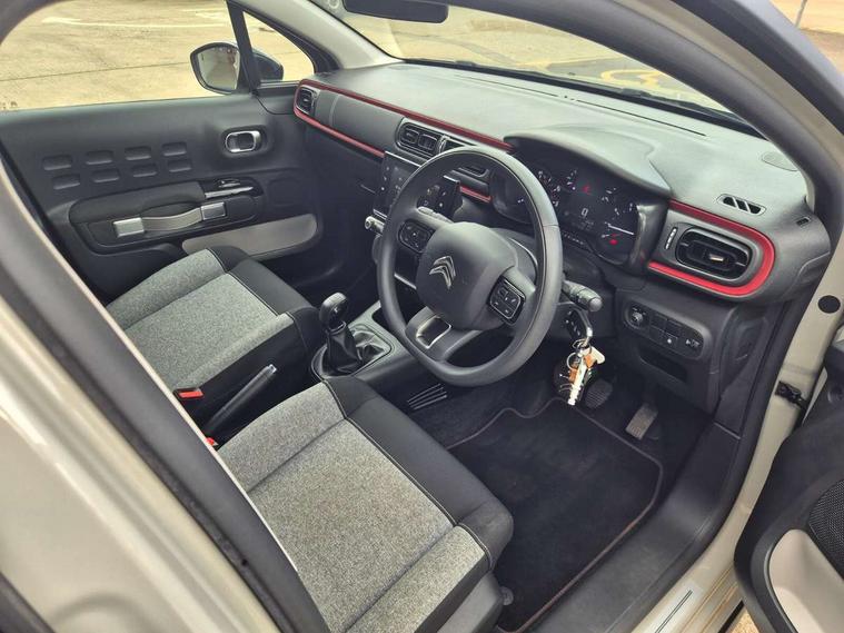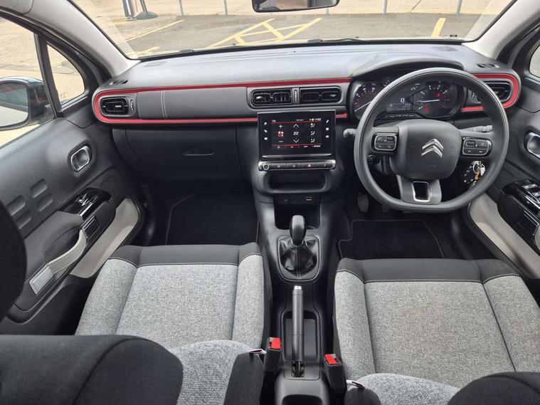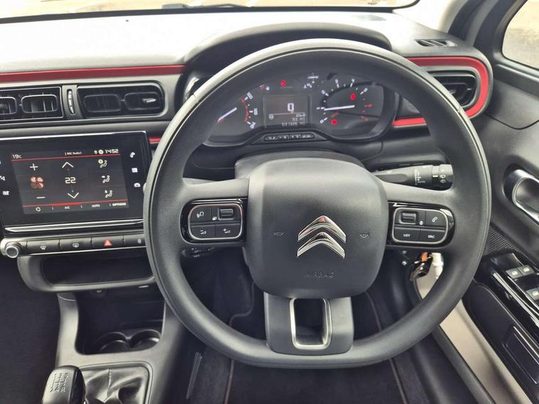 Coffee Break Alert, Cruise control + speed limiter, eCall emergency call system, Exterior temperature display, Instrument cluster with white LCD and analogue gauges, Multi function trip computer, Variable assistance power steering, USB connection, 3D rear light signature, Airbump on side door panel, Auto headlights, Automatic activation of hazard warning lights, Body colour bumpers, Body colour door handles, Chrome decoration on front face, under chevrons and around daytime running lights, Citroen illuminated signature in LED headlights and LED daytime running lights, Dark tinted tailgate and rear side windows, Electric folding and heated door mirrors, Fog lights integrated into front bumper, Front sequential electric windows with one-touch open/close and anti-pinch system, LED Headlights, LED third brake light, Matt black finish B pillar, Perla nera black rear view mirror caps, Rear sequential electric windows with one-touch open/close and anti-pinch system, Rear side wing doors, Rear windscreen wiper with intermittent mode linked to vehicle speed, Standard day night switchable interior rear view mirror, Variable front intermittent wipers, 1/3 to 2/3 split folding rear seat, 12V socket, 3 seat bench in 2nd row, Automatic air conditioning, Boot light, C-SERIES carpet mats, C-SERIES interior ambience, Driver and passenger's sun visor with courtesy mirror, Driver's seat height adjustment, Front lighting panel, Front seats adjustable with forward back slide and adjustable backrest, Height adjustable front head restraints, Height/reach adjust steering wheel, ISOFIX mounting on outer rear seats with top tether and labels indicating fixing points, Mica cloth upholstery, Parcel shelf, Seatbelt unfastened on the move audible and visual alert for front and rear seats, Single front passenger seat, Soft touch gear lever with leather effect gaiter, Steering wheel with satin chrome elements and audio/telephone controls, Three rear headrests, Upholstered armrest in front and rear doors, Anodised Deep Red colour pack - C3, C-SERIES style pack - C3, Safety pack 1 - C3, Visibility pack with automatic lights - C3, ABS with Electronic brakeforce distribution and Emergency braking assistance, Driver and front passenger seatbelts with pyrotechnic pretensioners and force limiters, Driver's airbag, Electric child locks, ESP with anti skid system, Front passenger airbag, Front passenger airbag deactivation, Front side airbags + front/rear curtain airbags, Hill start assist, Manual parking brake with chrome finish button, Mono-tone horn, Outer rear seats with pretensioners and force limiters, Three rear 3-point seatbelts, Tyre pressure monitoring system, Anti theft alarm, Automatic door and boot locking when moving off with automatic unlocking in case of impact, Central locking with locked indicator and interior one touch lock button, Immobiliser, Remote control central locking with two plip keys, Gloss black dashboard finish with grey surround, 16" Matrix diamond cut alloy wheels, Tyre puncture repair kit,