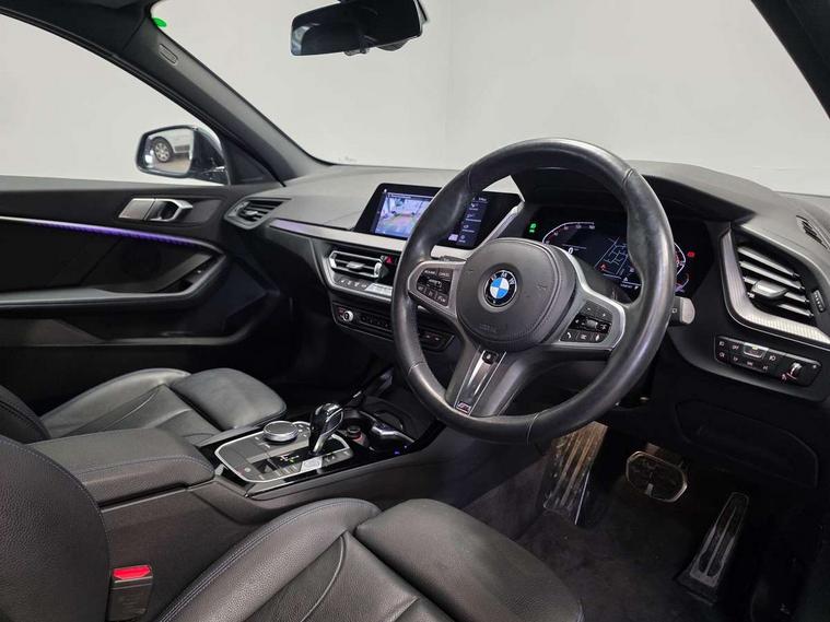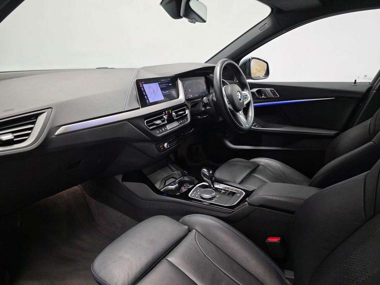 Active guard plus, Attentiveness assist, BMW Online services, BMW Teleservices, Check Control warning system for monitoring of lights and door/luggage compartment open warning, Connected eDrive Services, Eco pro mode, Integrated owners handbook, Oil sensor for level and grade, On board computer, Optimum shift indicator, Personal Profile, Pull away assistant, Speed limiter, Aluminium lightweight construction, Anti roll bar front and rear, Balancer shaft, Double VANOS, Drive Performance Control, Electronic differential lock, High precision injection, M sport suspension, Petrol Particulate Filter, VALVETRONIC engine management, Bluetooth audio streaming, DAB Digital radio, Auto dimming rear view mirror, Automatic headlight beam throw control, Automatic windscreen wipers and automatic headlight, Body colour door handles, Body colour mirror caps, Chrome 'M' logo side designation, Chrome exhaust tailpipe in single, round (Exhaust tailpipe, stainless steel - single, round), Chrome kidney grille frame with Satin Aluminium struts, Direction indicator side lights in exterior mirrors, Electric folding and anti dazzle exterior mirrors, Fading support, Follow me home headlights, Front and rear bumper system with replaceable deformation elements, Front and rear electric windows with open and close fingertip control, anti trap facility and comfort closing, Front door sill finishers in black plastic with M designation in metallic look, Green tinted heat protection glazing, Heated, electrically adjustable exterior mirror aspheric on driver side, convex on passenger side, High gloss shadowline window frame, Recess cover mirror frames and B/C pillar embelisher trim, High level third brake light, LED daytime running lights, LED eyebrow turn indicators, LED front fog lights, Lightweight engineering, Matt black air guide grilles, Model designation on right side of tailgate, Nearside reverse light in rear light cluster, Preparation for high beam assistant, Rain sensor including auto headlights activation, Rear fog lights, Rear window wiper, Shark fin antenna, Visible VIN plate, Welcome lighting, 12V power socket in centre console, 3 rear seat head restraints, 3 spoke M sports design leather steering wheel finished in nappa leather with specific M badge, Anthracite headlining, Anthracite Velour floor mats, Child seat ISOFIX attachment for two outer rear seats and front passenger seat with anchorage points, Conditioned based service, Dakota leather upholstery with perforation and contrast stitching, Driver and front passenger seat heating, Folding rear clothes hook, Four grab handles integrated in roof lining, Front and rear door pockets, Front and rear door pockets with bottle holders, Front and rear side armrest integrated into door trim, Front armrest foldable with integrated storage compartment, Front sports seats with electric side bolster adjustment, Glove compartment, Height adjustable front head restraints, Manual adjust steering wheel, Multi-function controls for steering wheel, Storage compartment in centre console, Sun visors with vanity mirrors and insert tab, Two zone automatic air conditioning, Additional interior lighting pack - 1 Series, Connected pack professional - 1 Series, Extended storage pack - 1 Series, Interior lights pack - 1 Series, Luggage compartment pack - 1 Series, M Sport exterior styling aerodynamics pack - 1 Series, 2 tone horn, 3 point seatbelts on all seats, front pyrotechnic belt tensioners, stopper and belt force limiters, rear coded belt buckles, Airbags - front driver/passenger, front & rear curtain, front side, Anti lock braking system (ABS) with brake assist, BMW emergency call, Brake drying, Braking readiness, Crash sensor activating central locking release, hazard warning lights, fuel cut off, interior lighting + activation of safety battery terminal clamp, Driver and front passenger seat belt security check, Dynamic stability control + (DSC+), Dynamic Traction Control - DTC, Electrically operated hand brake, Front and rear disc brakes, Front passenger manual airbag deactivation, Seatbelt warning, Side impact protection, Tyre pressure monitoring system, Warning triangle and first aid kit, Automatic drive away locking facility, Central locking switch for all doors, fuel filler cap and luggage compartment, Deadlocking function system to all doors, Locking wheel bolts, Remote control with integrated key with High-gloss Black inlay and M designation and 1 button for open/ close lock, window, open luggage compartment, Start/stop button with comfort go keyless engine start and auto start stop deactivation button, Thatcham Cat.1 alarm and immobiliser, Contrast stitching on instrument panel, Reduced rolling resistance tyres,