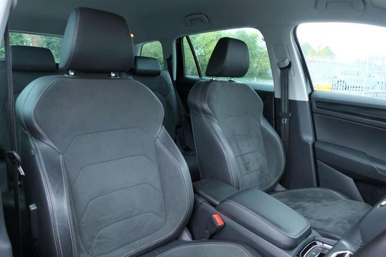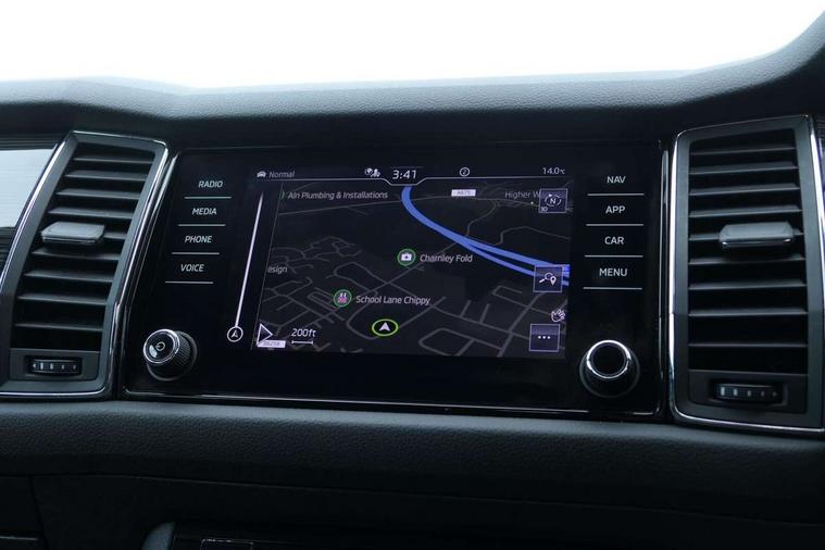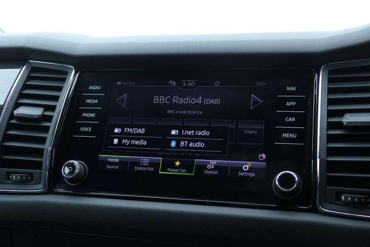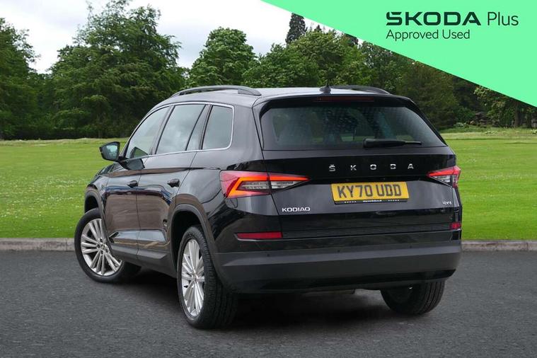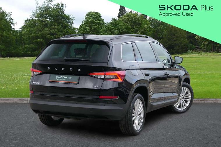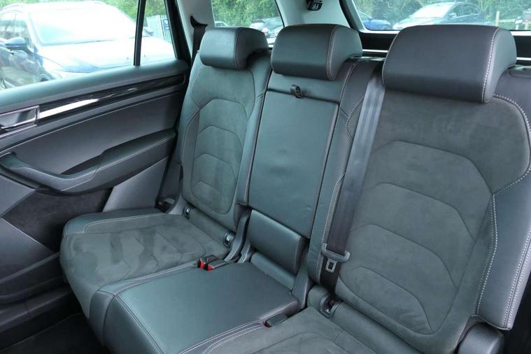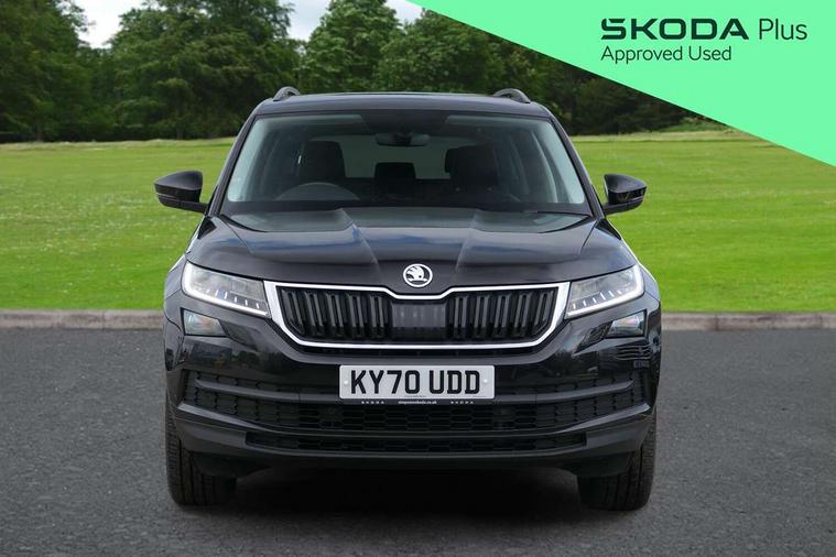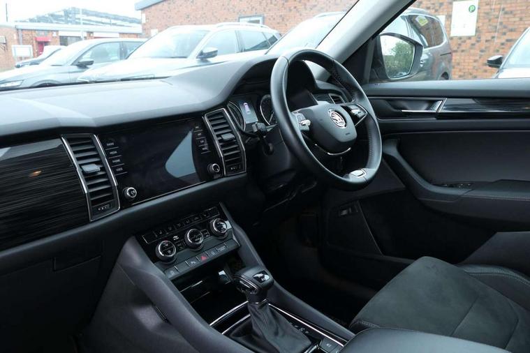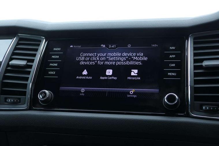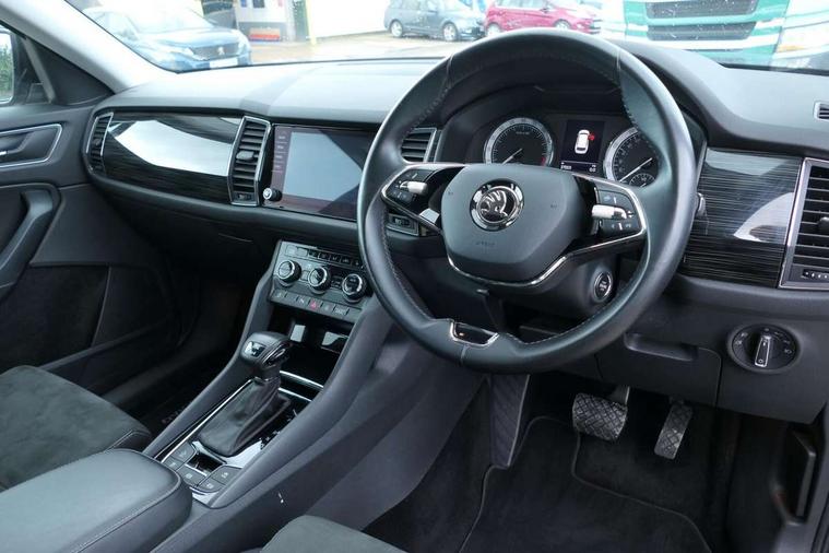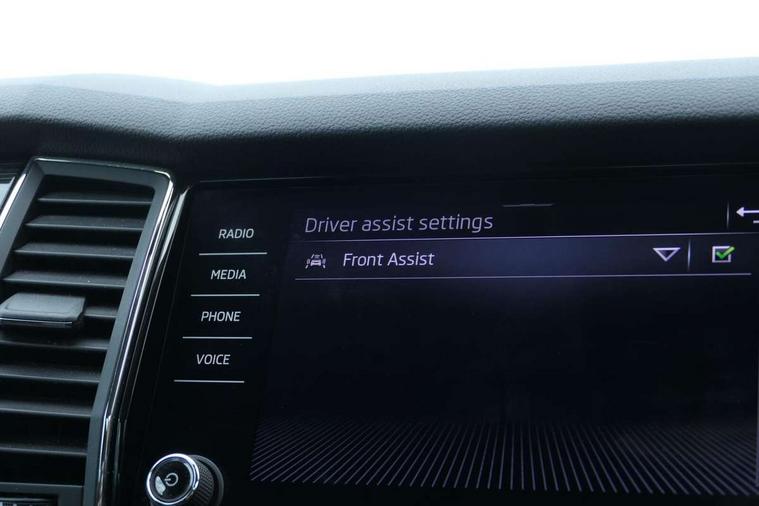 Chrome pack - Kodiaq, Alarm with interior monitoring and tilt sensor with safe function, Immobiliser, Keyless entry and start system (KESSY), Remote central locking, Bolero Radio, DAB Digital radio, DVD System, Auto door release and activation of warning lights, Driver and passenger airbags, Electronic parking brake with hill hold control, Emergency rear braking signal, ESC (incl. ABS+MSR+ASR+EDS+HBA+DSR+RBS+MKB), Front and rear three point safety belt on all seats, Front assist includes AEB city/urban, Front passenger airbag deactivation switch, Front side airbags, Fuel cut off safety device, Head and knee airbags, Rear disc brakes, Safety vest holder in door, Seat belt reminder for all seats, Tailgate unlocking from outside, Two tone horn, Tyre pressure monitor, Warning lights in front doors, Aero front windscreen wipers with intermittent function, Aero rear window wiper, Auto dimming rear view mirror, Automatic activation of hazard warning lights, Black electric window control buttons, Black wheel arch surrounds, Body colour bumpers, Body colour door mirrors and handles, Electric front and rear windows, Electrically adjustable, heated and folding door mirrors, Front and Rear door steps, Full LED Headlights with adaptive front light system and LED daytime running lights, Headlight washers, Heated rear window, Invisible tailpipe, LED front fog lights with static cornering light function, LED rear fog light, LED third brake light in rear spoiler, Light assistant (coming home/tunnel light), Radiator grille frame in black with chrome strip, Rain and light sensors, Rear spoiler, Safety reflectors on front and rear doors, Sunset privacy glass, Without engine designation, 12V socket in boot, 2 rails with 2 hooks including 4 hooks for net programme, 4 foldable roof handles with rear coat hooks, 4 lashing points on luggage floor, 60:40 foldable rear seat with sliding adjustment and backrest angle adjustment, Bottle holders in door panel in the 1.5 litre front and 1 litre rear, Cargo storage compartments, Centre console with open storage box, cup holder and 12V socket, Chrome headlight control button, Chrome interior door handles, Coat hooks on B pillar, Covered storage compartment on driver side, Front and rear door armrest with black adductor trim, Front and rear height adjustable headrests, Front centre armrest with storage compartment, cup holder and 12V socket, Front courtesy lights, Gear shift lever with chrome frame and black gloss insert, Illuminated and cooled glovebox, Illuminated luggage compartment, Isofix child seat fittings in outer rear seats with top tether, Manually adjustable steering column, Net programme in boot (1x horizontal Net, 2x vertical Nets), Overhead glasses storage compartment, Pollen filter, Rear centre armrest with cupholders, Roll up luggage compartment cover with intermediate position, Small Bags on the inner sides of the front backrests, Storage compartment in lower middle instrument panel with closing, Three rear height adjustable headrests, Ticket holder on A Pillar, Umbrella in door panel, Bluetooth system, Digital voice enhancement, ECO Stop/start function, Exterior temperature indicator, Map care, Smartlink wireless for apple carplay and wired for android auto, Speed limiter, USB C Port x 2 in front centre console,