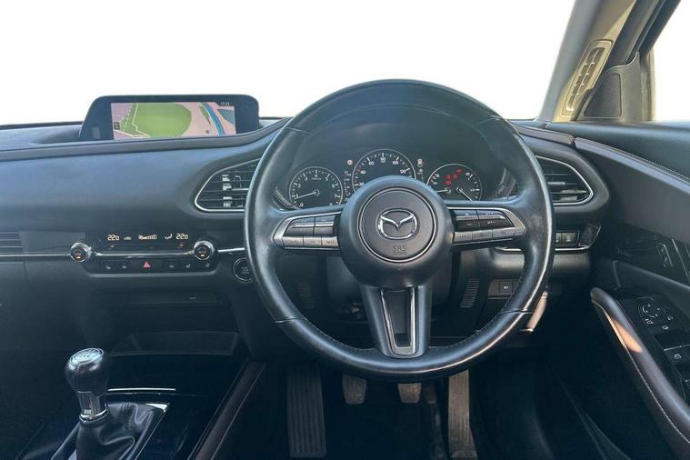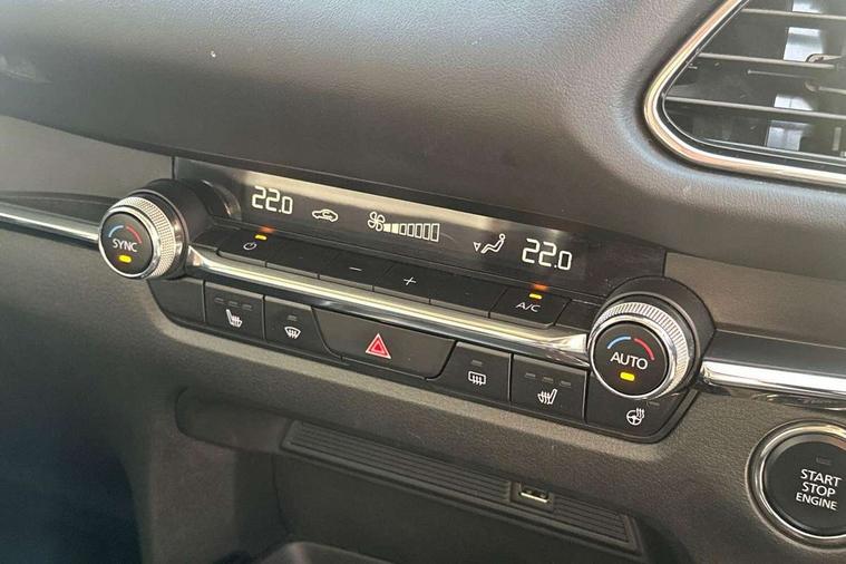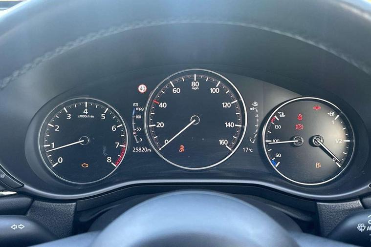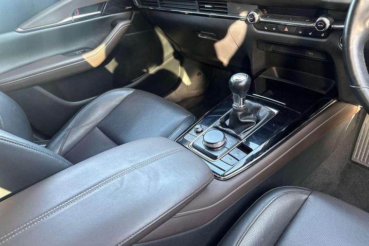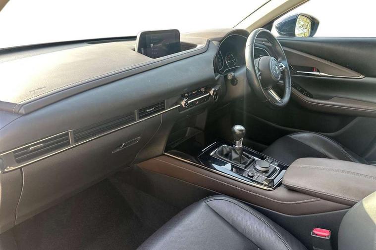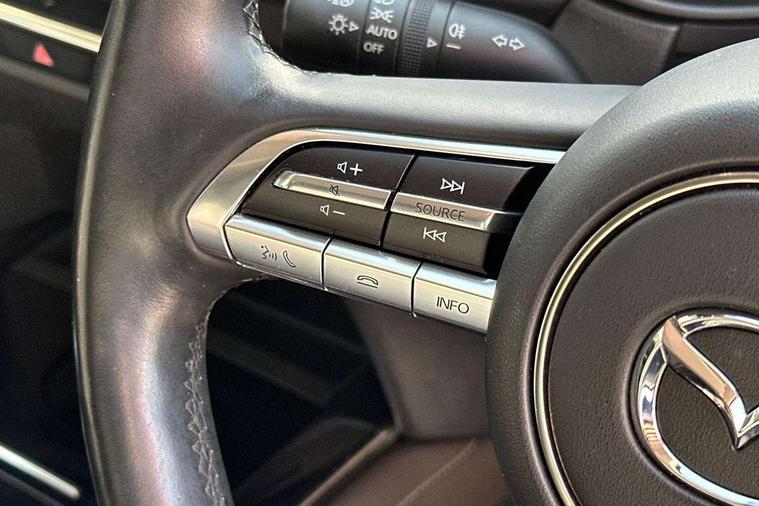 360 View Monitor, 7" TFT Colour driver instrument panel display, 8.8" Colour centre touch screen display with Mazda Connect infotainment, Adaptive cruise control (Mazda radar cruise control), Apple car play/Android Auto, Blind spot monitoring with rear cross traffic alert, Cruising Traffic Support, Driver attention alert system, Driver monitoring system, E-call with GPS, Emergency stop signalling system, Engine start/stop button, Front and rear parking sensors, Front Cross Traffic Alert, Integrated bluetooth, Integrated Mazda navigation system, Intelligent speed assist, Lane keep assist system (LAS) with Lane departure warning system (LDWS), PAS, Power lift gate, Service indicator, Trip computer, Window projected colour active driving display (head up display) with traffic sign recognition, i-stop, 2 USB charging ports, Bose surround sound system with 12 Speaker, Bose center point, Bass match and audio pilot technology, DAB Digital radio, Multimedia Commander including separate volume dial, Steering wheel mounted audio/bluetooth controls, Adaptive LED Headlights, Auto dimming driver's door mirror, B-pillar and C-pillar garnishes in piano black finish, Body coloured, electrically adjustable, heated auto power folding door mirrors with integrated indicators, Coming/leaving home lighting function, Door mirrors with tilt-down function when reversing, Dual chrome exhaust, Dusk sensing headlights, Electric front/rear windows with one touch auto up/down, Frameless auto dimming interior rear view mirror, Front grille in piano black finish, Front kodo turn signal, High beam assist, Piano black rear roof spoiler, Power tilt/slide sunroof, Privacy glass (rear side windows and rear screen), Rain sensing front wipers with adjustable speed and intermittent wipe, Rear fog lights, Rear wiper, Signature front LED daytime running lights, Signature LED rear combination lights with LED rear turn lights, 60/40 split fold down rear seats, Chrome centre bezel steering wheel, Chrome horn pad ring, Dashboard, door cards and front centre armrest in rich brown leather, Driver and front passenger visors with covered vanity mirror and driver ticket holder, Driver seat memory function, Driver's seat, power tilt, slide, recline, height and lumbar adjustment, Driver, Front passenger and two rear grab handles with coathooks, Dual zone climate control air conditioning with rear air vents, Electrical power outlet, Folding rear centre armrest with two cup holders, Front and rear (x3) head restraints, Front and rear door pockets, Front and rear LED lighting, Front armrest, Front centre storage with two cupholders, Front passengers seat manual slide, recline and height adjustment, Gear shift indicator, Glove box handle with chrome surround, Glovebox illumination, Heated front seats with 3 stage setting, Heated steering wheel, ISOFIX child seat anchorage points attached on outer rear seats, Leather wrapped gear shift knob, Leather wrapped steering wheel with telescopic and tilt adjustment, Luggage compartment light, Rear passenger seat map pockets, Roof mounted sunglasses holder, Vinyl leather door panel inserts, 3 point ELR front seat belts x2 with pretensioners, 3 point ELR rear seat belts, Anti-lock braking system (ABS), Driver/Front Passenger airbags, Drivers knee airbag, DSC - Dynamic Stability Control, Electronic parking brake with auto disengage function and auto hold function, Front and rear curtain airbags, Front and rear smart city brake support, Front passenger airbag cut-off switch, Front side airbags, G-Vectoring control plus, Hill launch assist, Mild Hybrid system with regenerative braking, Rear cross traffic braking, Seatbelt reminder for driver/front passenger and rear seats, Traction control system (TCS), Tyre pressure monitoring system (TPMS), Remote central locking with deadlocking and automatic door lock when driving, Smart keyless entry, Thatcham accredited alarm and immobiliser, 18" Bright silver metallic alloy wheels, Emergency tyre repair kit,