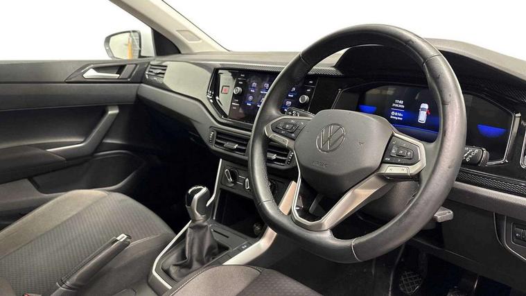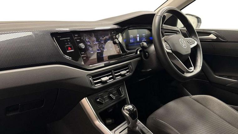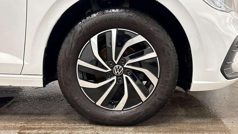 Adaptive cruise control without follow-to-stop and speed limiter, Bluetooth mobile phone interface, Driver alert system, Emergency call service, Front assist system, Power assisted speed sensitive steering, Preparation for We connect and We connect plus, Speedo and rev counter, electronic odometer, trip, service interval display and fuel gauge, Standard rear axle, Travel Assist - Lane keeping system and traffic jam assist, Travel assist including emergency assist, Trip computer, Warning signal and warning light for front and rear seatbelts not fastened, Washer fluid level indicator, Wireless app connect, Front wheel drive, Rear shock absorpion, Start-stop system with battery regeneration (recuperation - energy recovery during braking), DAB Digital radio, Diversity antenna for FM reception, Front and rear 6 speakers, Automatic dimming interior rear view mirror, Body colour bumpers, Body colour door handles, Body colour door mirrors, Electric front windows, Heat insulating darkened glass in side and rear windows, Heat insulating glass windscreen, Power folding adjustable/heated exterior mirrors and front passenger exterior mirror lowering function, Rain sensor, Rear electric windows, Rear fog light, Rear side wing doors, Rear windscreen washer and wiper with interval delay, Third brake light, 12V power socket in centre console, 2 front and 2 rear reading lights, 2 USB-C ports in the front, 2 USB-C charging sockets on the center console in the rear, 3 rear head restraints, 60/40 split folding rear seat and rear seat bench not split, Chrome plated radiator grille inserts, air vent surrounds and light switch surrounds, Door and side trim panel, Driver and front passenger seat height adjustment, Driver/passenger sunvisors with illuminated vanity mirrors, Front centre armrest, Front seat backrest storage pockets, Front standard seats, Handbrake lever handle in leather, Hartley/Thomas cloth upholstery, Headliner in recycled material, Isofix child seat preparation easy-fit (for two outer rear seats, and front passenger seat) compatible with I-size, Leather trimmed gear knob, Luggage compartment cover, Luggage compartment floor, Luggage compartment lighting, Multifunction steering wheel, Single front passenger seat, Standard pedal cluster, Light and vision pack - Polo, 3 point height adj front seatbelts + pretensioners, 3x3 point rear seatbelts, ABS, Driver and front passenger airbag with front passenger airbag deactivation, Drivers and front passengers safety optimised head restraints, ESC (Electronic stability control) + EDL (Electronic Differntial lock) and ASR (Traction control), Extended and predictive pedestrian/ cyclist protection, Front curtain and side airbags with center airbag, Front disc brakes, Hill hold control, Manual child lock in rear doors, Rear drum brakes, Single tone horn, Tyre pressure loss indicator, Alarm with interior protection, Anti-theft alarm system with interior monitoring, backup horn, and towing protection, Anti-theft wheel bolts, Electronic engine immobiliser, Lava stone black gloss/matt decorative inserts in dash and front door panels, Low rolling resistance tyres,