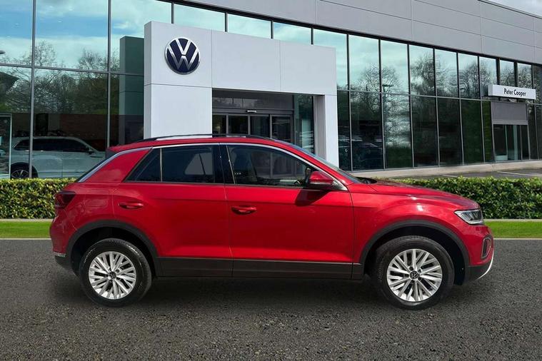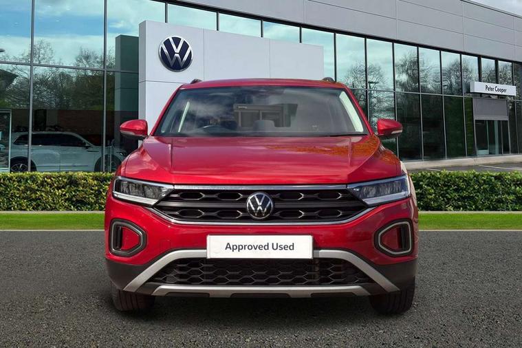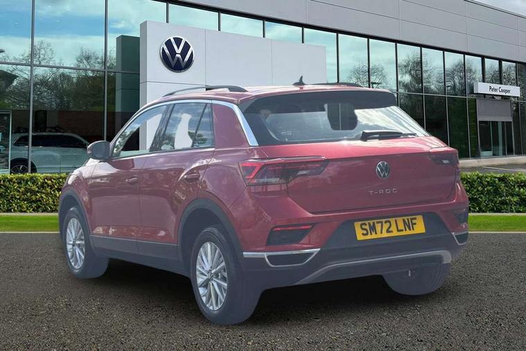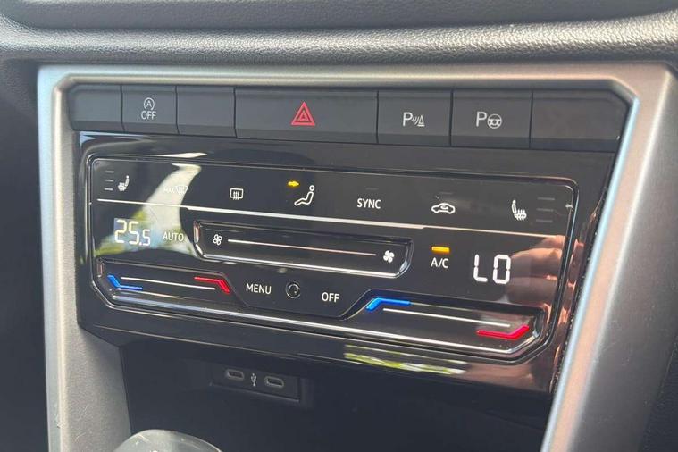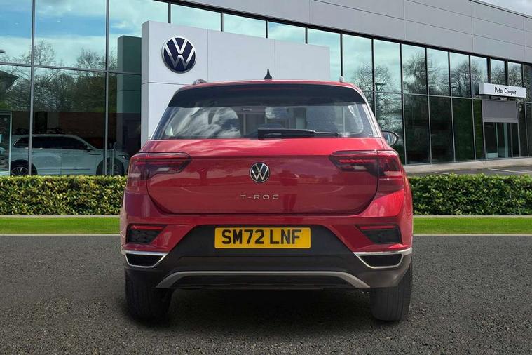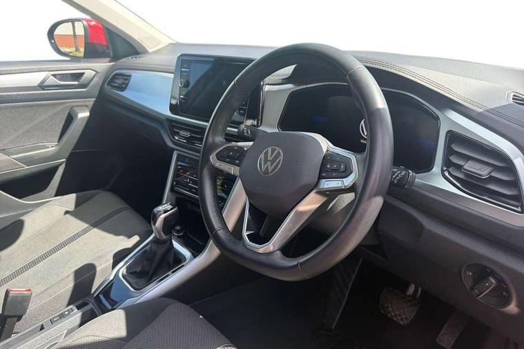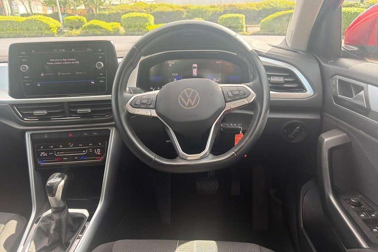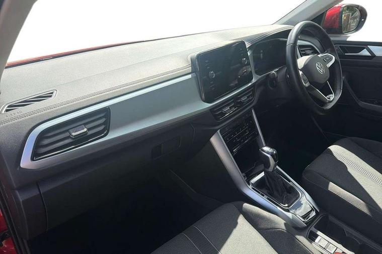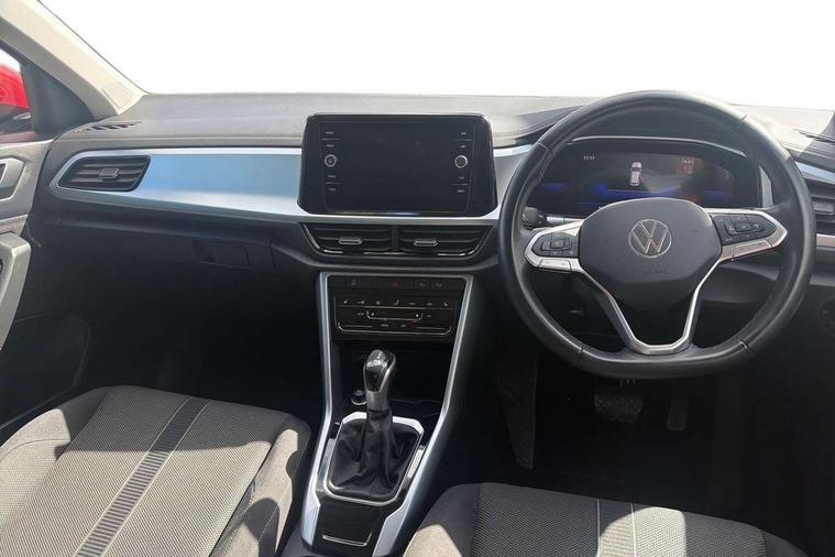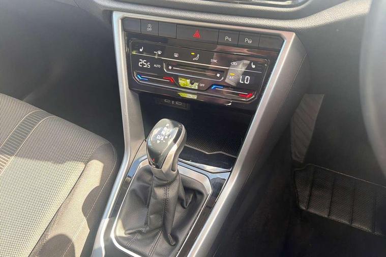 Bluetooth mobile phone interface, Driver alert system with fatigue detection, Driver tips and journey analysis, Emergency call service, Lane keeping system Lane Assist, Modified key software - reduce switch off time for key status change to Long no motion, Online services, Park assist including front and rear parking sensors, Power assisted speed sensitive steering, Service interval indicator, Tailgate/trunk lid release from outside, Think blue trainer driver tips and journey analysis, Warning sound and light for front seatbelts unfastened, Wireless app connect, Battery regeneration during braking, Front shock absorption, Rear shock absorption chassis with increased ride height, Start/stop function with battery regeneration, DAB Digital radio, Diversity antenna for FM reception, Front and rear 6 speakers, Music playback - MP3, WMA and AAC files, Premium USB cable in choice of either Apple or Android smartphone compatibility, SD card slot, Simultaneous pairing of 2 compatible mobile devices, Title and cover art display, We Connect and We Connect Plus functionality, 3rd brake light, Auto dimming interior rear view mirror, Automatic hazard lights activation under emergency braking, Automatic headlight control with LED separate daytime running lights with coming/leaving home function, Black roof rails, Body coloured bumpers and radiator grille with chrome trim and front fog lamps with chrome bezel, Body coloured exterior mirror housings and door handles, Extended roof spoiler, Exterior mirrors aspherical on driver side, convex on front passenger side, External USB type C socket and charging sockets, Front windscreen wiper with intermittent wipe and 4 position delay, Heated rear window, LED Headlights, LED rear combination lamps, LED rear number plate lights, LED tail lamp rear comination lamps, Power windows with comfort operation and circuit breaker, Rain sensor, Rear exhaust tailpipe, Rear fog light on one side and reversing lights on both sides, Rear side wing doors, Rear wash/wipe with intermittent wipe setting, Remote electrically foldable door mirrors, puddle lights and reverse activated passenger's door mirror, 12V power socket in centre console, 3 rear head restraints, 3 seat bench in 2nd row, 4 load lashing points in luggage compartment, Air care climatronic air conditoning system with active combination filter and 2-zone temperature control, Ambient lighting with mirror logo projection, Cloth upholstery, Door and side trim panel in cloth, Drawer under drivers seat, Driver/front passenger seat height adjustment, Front centre armrest, Front comfort sports seats, Front cupholders x 2, Front reading light, Instrument lighting, white adjustable panel illumination, Interior light delay, Isofix child seat preparation, Leather gearshift handle, Load-through provision with cup holder when folded down ('Unsplit rear seat bench, split folding backrest, with centre armrest), Luggage compartment lighting, Lumbar support for driver's and front passengers seat, Non-folding front passenger seat backrest, Single front passenger seat, Storage compartment in left and right luggage area, Storage compartment in rear doors, Storage compartments in driver and front passenger doors, Sunvisors with illuminated vanity mirrors, Variable boot floor, height adjustable and removable, Driver assistance pack without proactive passenger protection - T-Roc, 3 point height adj front seatbelts + pretensioners, 3 point seatbelts in outer rear with ECE label, ABS, Child locks on rear doors, Driver and front passenger airbag with front passenger airbag deactivation, Driver and front passenger safety-optimised head restraints, Drivers seatbelt reminder, Electronic parking brake, Electronic Stability Control (ESC) inc EDL (Electronic Differential Lock) and ASR (Traction Control), Front and rear passengers curtain airbag system including front side airbags, Front assist with city emergency braking and pedestrian monitoring, Front disc brakes, Front seat side impact airbags, Hill start assist, Predictive pedestrian protection, Rear disc brakes, Single tone horn, Tyre pressure loss indicator, Volkswagen roadside assistance, Alarm with interior protection, Anti-theft alarm system with interior monitoring, backup horn, and towing protection, Remote central locking with SAFELOCK, radio remote control with 2 remote control folding keys, Pewter matt decorative inserts for intrument panel, centre console and door panels at the front, Trims for alloy wheels,