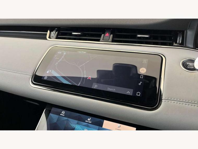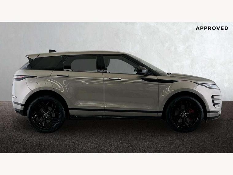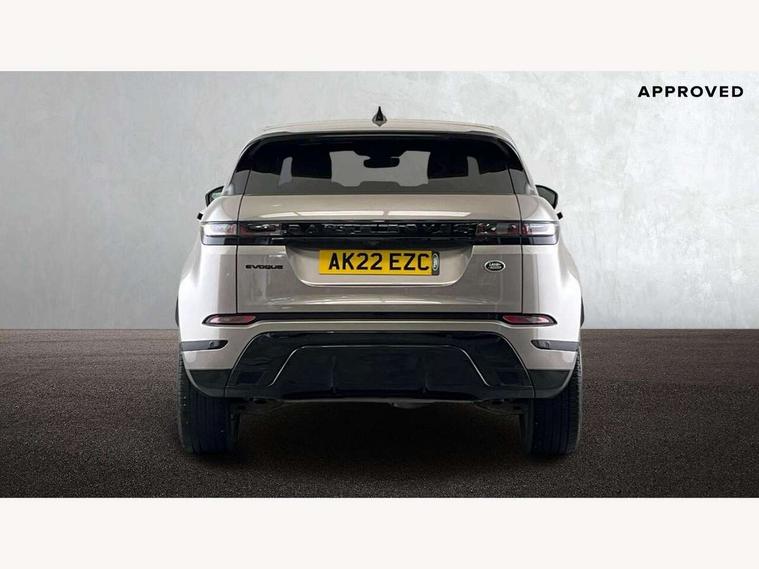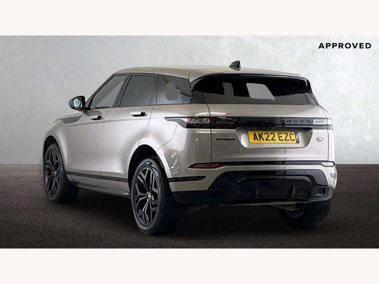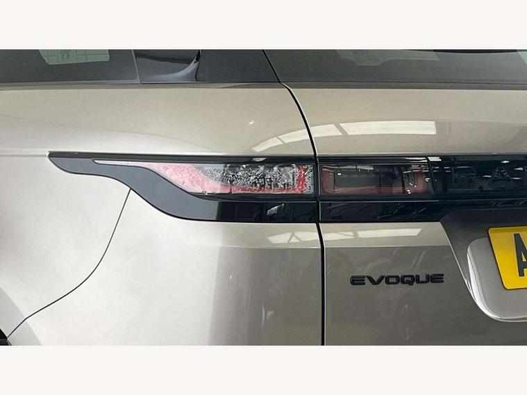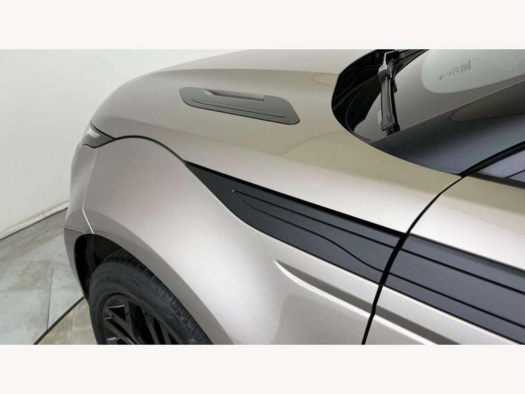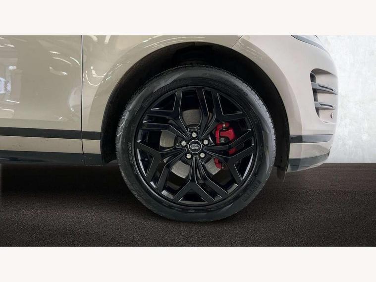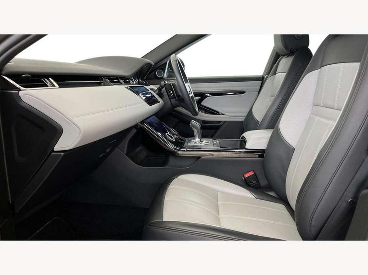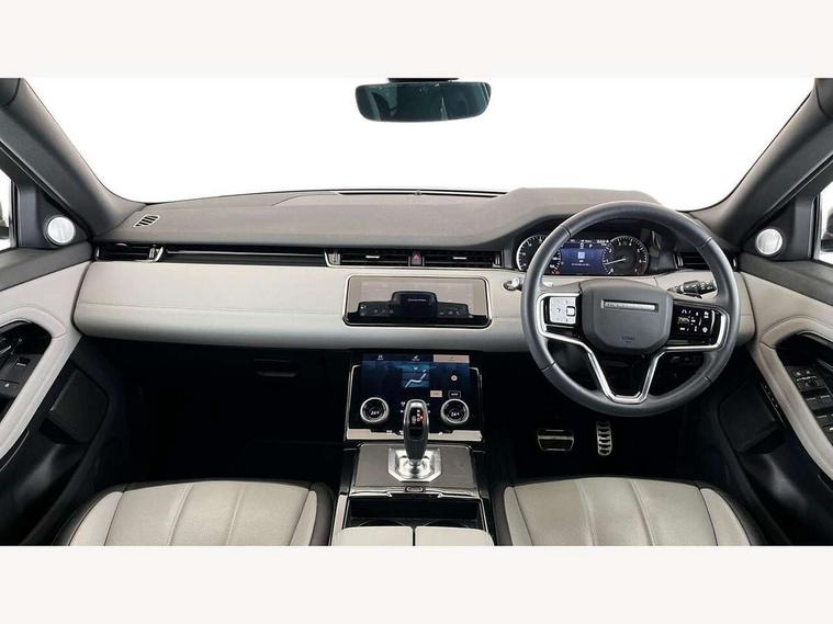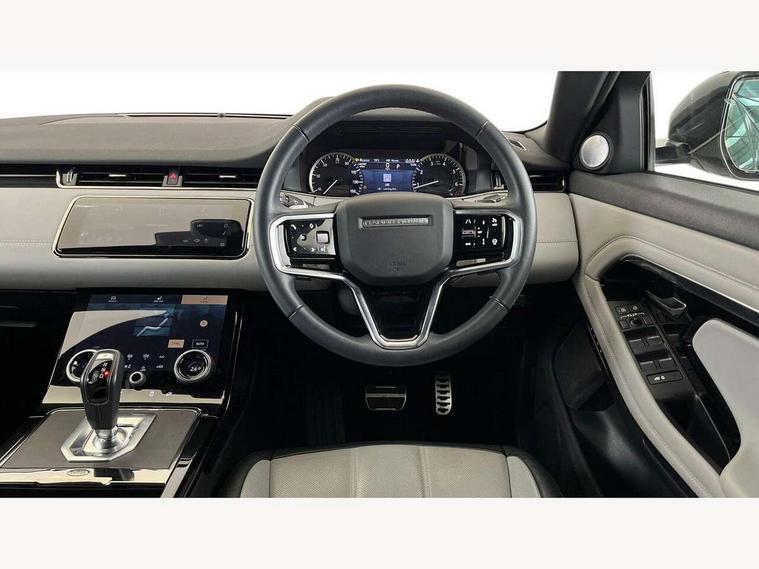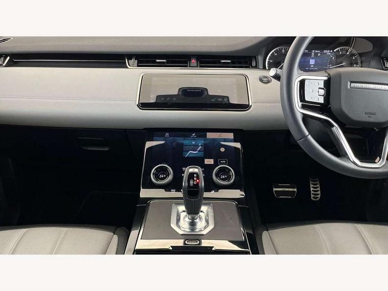 Adaptive cruise control, Android Auto, Apple car play, Blind spot assist, Bluetooth connectivity, Brake pad wear indicator warning light, Driver condition monitor, eCall emergency system, Electronic power assisted steering (EPAS), Front and rear parking aid, InControl remote, Land Rover InControl apps, Lane keep assist, Pivi pro connected includes upgraded infotainment, connected navigation pro, Nuance speech licence, Push button starter, Rear collision monitor, Rear traffic monitor, Traffic sign recognition with adaptive speed limiter, Voice control system, All terrain progress control, Efficient Driveline, Large fuel tank, Passive suspension, Terrain Response 2 Auto, Digital Audio Broadcast radio-DAB, Steering wheel mounted controls, Auto headlights, Automatic headlight levelling, Electric windows with one touch open/close and anti trap, Evoque and R-Dynamic badge, Flush deployable exterior door handles, Heated rear window with timer, Heated washer jets, Heated windscreen, Power fold, auto-dimming, heated door mirrors with approach lights and auto dimming driver side, Rain sensing windscreen wipers, Rear fog lights, Rear side wing doors, Rear wiper, Tailgate spoiler, Third brake light, 40:20:40 split folding rear seats with centre headrest and armrest, Ambient interior lighting, Bright metal pedals, Isofix system on outer rear seats, Overhead lighting console, Overhead stowage for sunglasses, Passive front head restraints, Rear air vents, Rear centre headrest, Rear head restraints, Satin chrome gearshift paddles, Single passenger seat, Sunvisors with illuminated vanity mirrors, Twin sliding front centre armrest, 3 rear 3 point seatbelts, Anti-lock braking system (ABS), Customer configurable autolock, DSC - Dynamic Stability Control, Electronic brake force distribution, Electronic parking brake, Electronic traction control, Emergency braking, Front and rear seatbelt reminder, Hill descent control, Hill launch assist, Low traction launch, Power operated child locks, Roll stability control, Six airbags - Driver and passenger airbags/driver knee airbag/front side airbag and curtain airbags, Torque vectoring brake, Tyre pressure monitoring system, Alarm, Immobiliser, Intrusion sensor, Keyless entry, Locking wheel nuts,