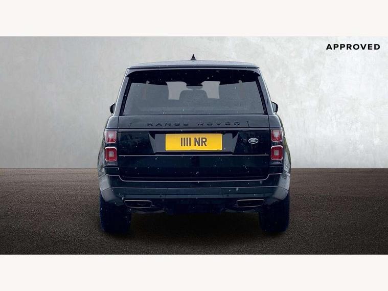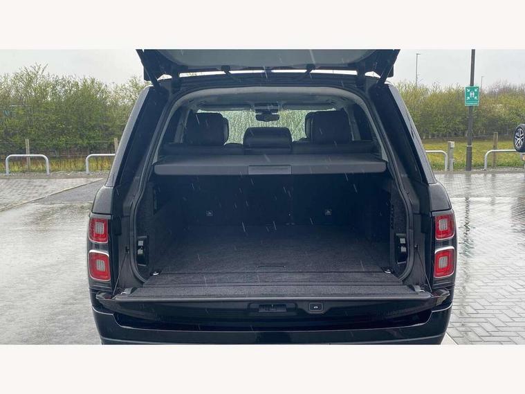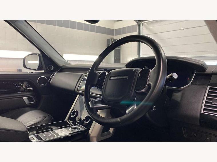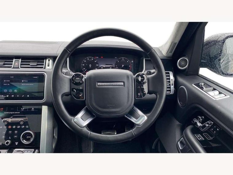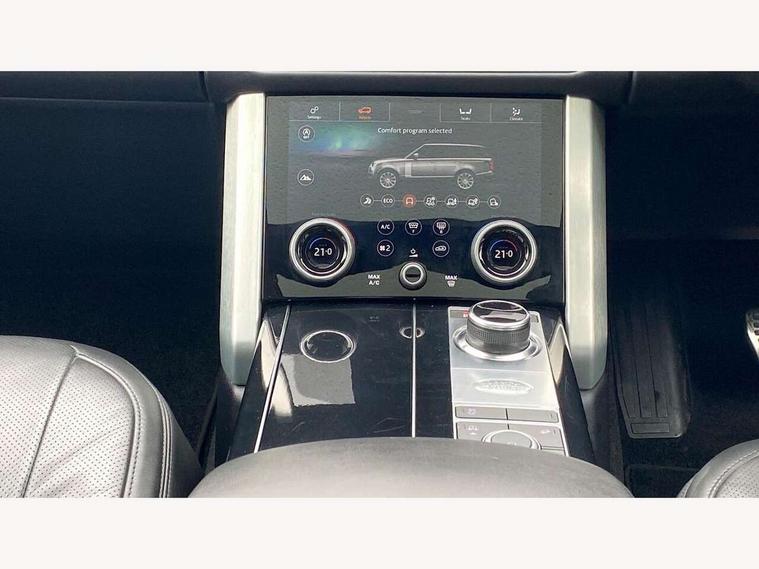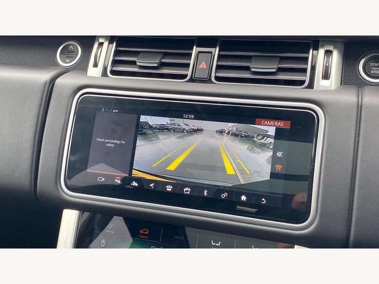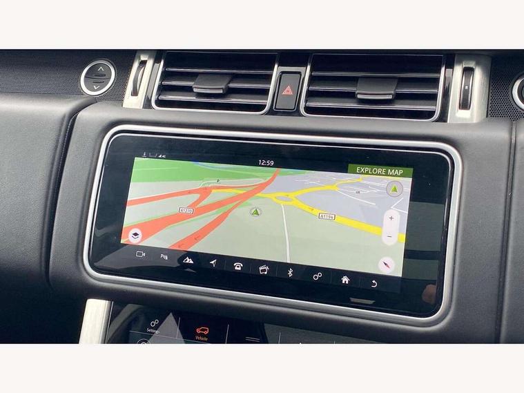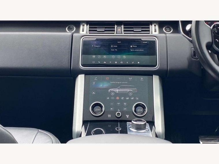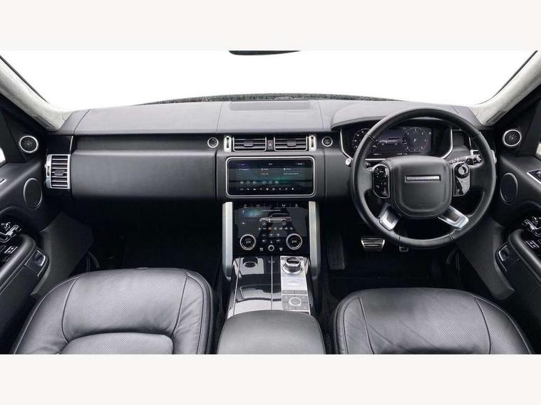 Android Auto, Apple car play, Bluetooth mobile phone connection, Dynamic route guidance, Electric power assisted steering (EPAS), Interactive Driver display instrument cluster, Lane departure warning system, Navigation pro system with 10" touch screen, app interface and media storage, Powered gesture tailgate/boot lid, Push button starter, Rear camera wash, Rotary shifter, Service interval indicator, Touch pro duo system, Trip computer, Voice control system, 8 speed automatic transmission, Adaptive dynamics, All Wheel Drive (AWD), Automatic access height, Diesel particulate filter, Electronic air suspension, Twin speed transfer box, Digital Audio Broadcast radio-DAB, Digital TV, InControl app, USB socket, Acoustic windscreen, Auto dimming interior rear view mirror, Auto self levelling headlights, Automatic headlights, Body coloured bumpers, Centre high mounted stop light, Door/quarter lights in toughened plate glass, Electric windows with one touch open/close and anti trap, Electrical towing preparation, Follow me home headlights, Front and rear recovery eyes, Front fog lights, Headlamp power wash, Heated rear window, Heated windscreen includes heated washer jets, Illuminated metal treadplates with brand name script, Integrated twin tailpipes, LED rear lamps, LED tail lights, No badges, Power fold, auto-dimming, heated door mirrors with memory and approach lights, Power front/rear windows with global close, Privacy glass, Rain sensing windscreen wipers, Rear fog lights, Rear wash/wipe, Side repeater indicators in mirror, Sliding Panoramic roof includes gesture sunblind and auto sunblind, Trailer stability assist, 12V power point in luggage area, 12V power sockets, 3 rear headrests, Black gearshift paddles, Bright metal pedals, Carpet mats, Centre console with storage and armrest, Configurable Ambient interior lighting, Customer configurable single point entry, Driver and passenger front seat armrests, Easy boot loading, Electrically adjustable steering column, Folding rear seats, Front and rear cupholders, Front and rear grab handles, Front headrests, Front seat back map pockets, Heated steering wheel, Loadspace cover, Loadspace light, Lockable glovebox, Luggage compartment lighting, Luggage tie down in loadspace, Perforated Windsor leather upholstery, Rear centre armrest, Rear ISOFIX, Soft close doors, Suede cloth headlining, Through load facility, Twin blade sunvisors with Illuminated vanity mirrors, Black exterior pack - Range Rover, Smartphone pack - Range Rover, 3 rear 3 point seatbelts, Anti-lock braking system (ABS), Auto lock system when vehicle in motion, Cornering brake control (CBC), Curtain airbags, Customer configurable autolock, Driver/front passenger head+thorax airbag, Drivers knee airbag, DSC - Dynamic Stability Control, Electronic brake force distribution, Electronic parking brake, Electronic traction control, Emergency braking, ESP, Front airbags with passenger seat occupant detector, Front seatbelt pretensioners with force limiters, Front side airbags, Grey anodised brake calipers, Height adjustable front seatbelts, Hill descent control, Hill launch assist, Low traction launch, Power operated child locks, Roll stability control, Tyre pressure monitoring system (TPMS), Immobiliser, Intrusion sensor and alarm, Keyless entry, Locking wheel nuts, Remote central locking,