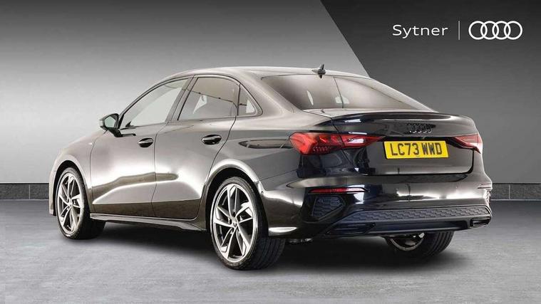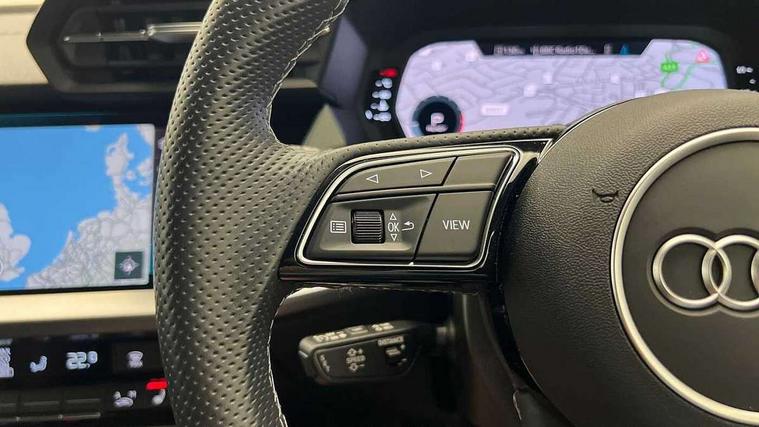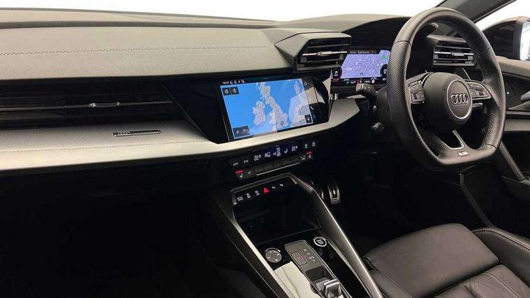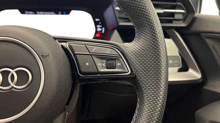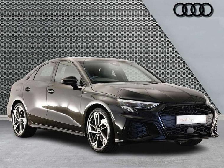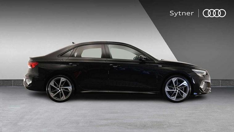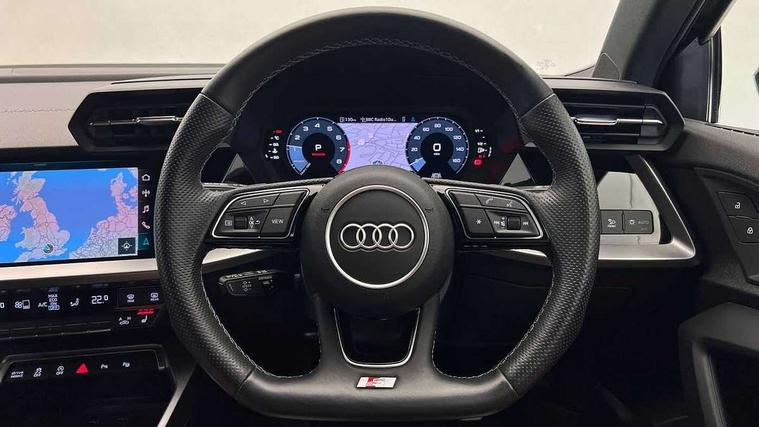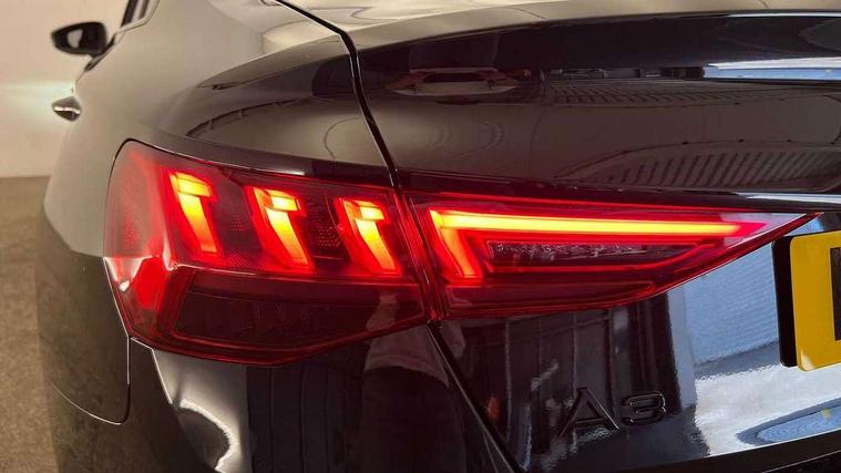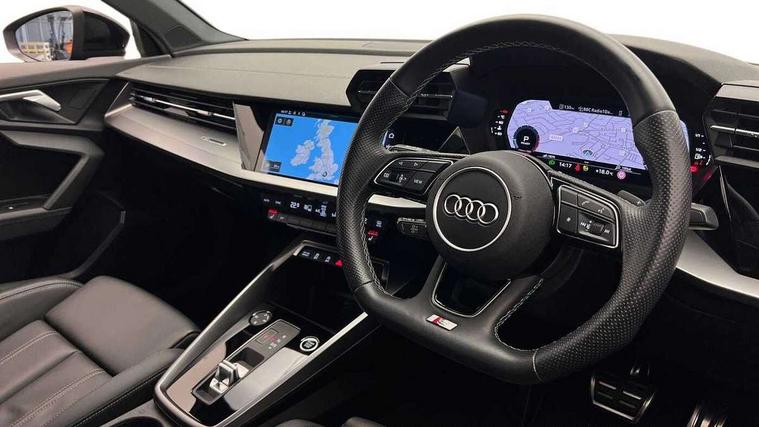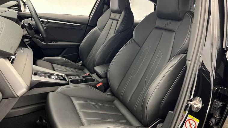Audi drive select (Auto, Comfort, Dynamic, Efficiency and Individual), Audi smartphone interface, Audi Virtual Cockpit - 10.25" digital and colour instrument cluster, Automatic start/stop system with recuperation, Bluetooth interface, Camera based traffic sign recognition, Collision avoidance assistant, e-Call (emergency call), Electromechanical power speed sensitive steering, Lane departure warning system, MMI Navigation Plus with high resolution 10.1" colour touch screen display, Service indicator, Trip computer, Voice control system with natural language interaction, Sports suspension, 2xUSB-C connection with data and charging functions, 6 passive loudspeakers, CD player, DAB Digital radio, 3rd brake light, Acoustic glass windscreen, Audi beam uses LEDs to project the Audi logo onto the ground as you exit your A3, Auto dimming frameless rear view mirror, Electrically adjustable/heated/folding/auto dimming door mirrors with integrated LED indications + kerb view function for passenger side, Front electric windows, Illuminated door sills with aluminium inserts at the front with S logo, LED daytime running lights, LED headlights with LED rear lights and dynamic rear indicators, Light and rain sensors, Model and engine designation badges at rear, Privacy glass - dark tinted rear window, rear door and side windows, Rear boot, Rear electric windows, Rear side wing doors, S roof spoiler, 12V socket and storage compartment in front centre console, 3 seat bench in 2nd row, 3 spoke flat bottomed leather multifunction sport steering wheel with gear shift paddles, 4 way electrically adjustable lumbar support for driver and front passenger, 60/40 split folding rear seat bench, Black cloth headlining, Dual zone electronic climate control, Front and rear centre armrest in artificial leather, Front and rear headrests, Front/rear floor mats, Height and reach adjustable steering wheel, Interior lighting - glove compartment light and right hand side, Luggage compartment floor covering, Manual boot compartment lid, Single front passenger seat, Stainless steel pedals and front footrest in black, Twin leather upholstery with front sports seats S embossed logo, Aluminium interior elements pack - A3, Black styling pack - A3 Saloon/Black edition, LED interior lighting pack - A3 Saloon, 3x3 point rear seat belts, Driver and front passenger airbag with passenger airbag deactivation, Electronic Stabilisation Control (ESC) including ABS, ASR and EDL, First aid kit with warning triangle and 2 safety vests, Front side airbags with head airbags and interaction airbag, Pre-sense front with pedestrian and cyclist detection, Seatbelt monitoring, Tyre pressure loss indicator, Anti theft alarm, Anti-theft wheel bolts, Electronically operated child locks, Immobiliser, Remote control central locking, Aluminium air vent surrounds, Dark spectrum aluminium inlays, accent surfaces in the dashboard and centre console in platinum grey silk effect paint finish, 19" 5 arm trapezoid design alloy wheels in matt grey with diamond cut finish,
