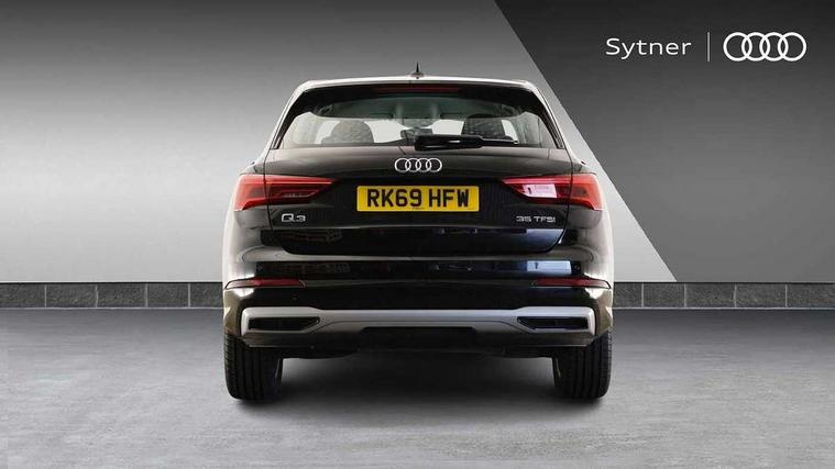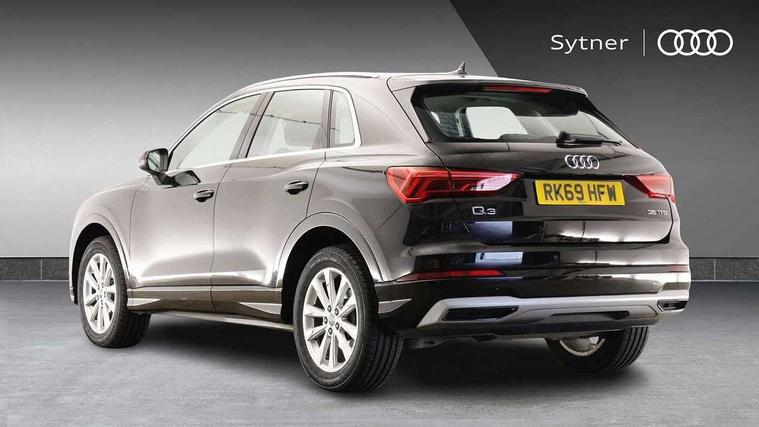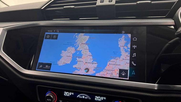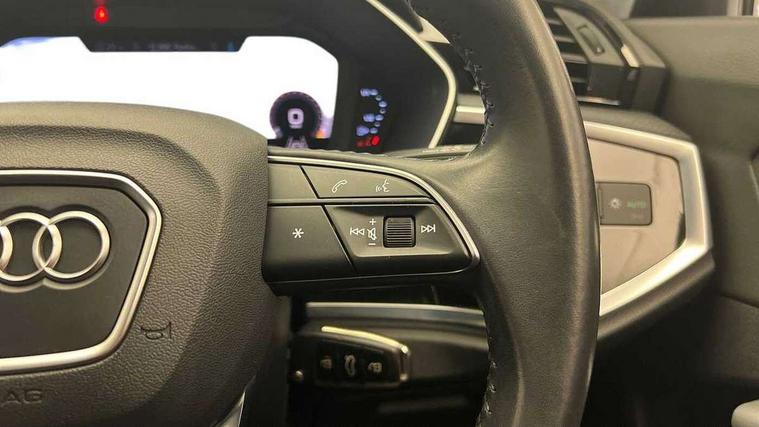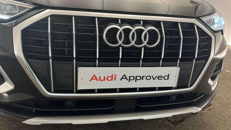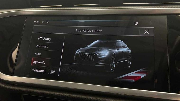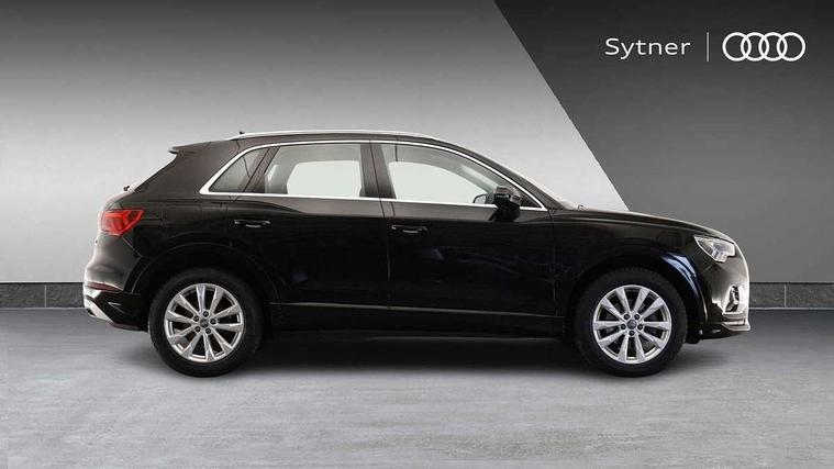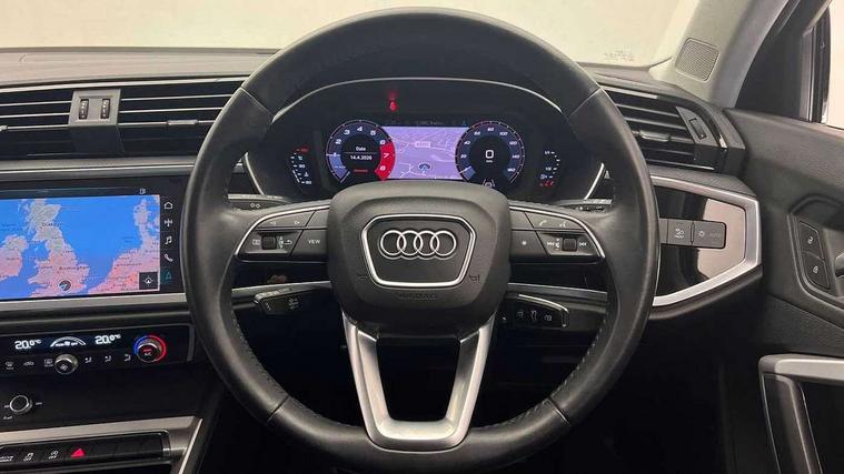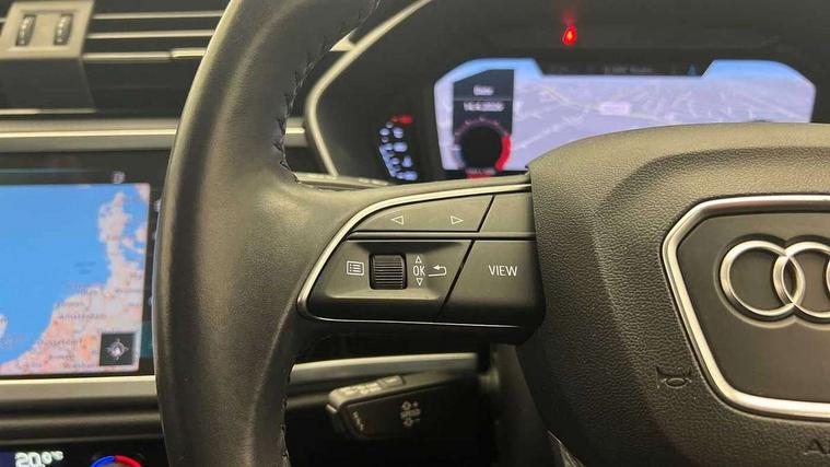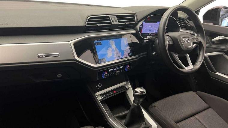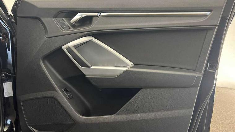 Audi connect safety and service (e-call), Audi drive select, Audi lane departure warning, Audi side assist, Audi smartphone interface, Audi Virtual Cockpit - 10.25" display, Bluetooth interface, Camera based traffic sign recognition, Cruise control + speed limiter, MMI navigation plus with MMI touch, Power opening/closing tailgate, Progressive steering, Rear parking sensors, Service interval indicator, Stop/start system, Voice control system, Standard suspension, 1 x USB type C and 1 USB type A charging points, 6 speakers, DAB digital radio module, Acoustic windscreen, Aluminium roof rails, Aluminium window trim, Auto dimming rear view mirror, Body coloured bumpers, Electrically adjustable and heated door mirrors with integrated LED side indicators, Front and rear electric windows, Front fog lights, Front side air inlets in matt selenite silver, Front spoiler in matt selenite silver, Grille vertical bars in aluminium silver/Matt, High gloss black finish B and C pillars, LED headlights with LED daytime running lights and dynamic rear indicator, LED rear lights, Rain and light sensors, Rear diffuser strip in selenite silver, Titanium black radiator grille, 12V socket in rear centre console, 40:20:40 split folding rear bench seat, Adjustable rear seat bench/backrest, Aluminium door sill trims, Dual zone climate control, Front and rear headrests, Front and rear roof module including reading lights, Front and rear velour floor mats, Front centre armrest with storage compartment and angle adjustment, Glove compartment lighting, Height and reach adjustable steering wheel, ISOFIX child seat mounting and Top Tether with front passenger airbag deactivation, Luggage compartment light, Lunar silver cloth headlining, Manual front seats with height adjustment, Stainless steel luggage compartment sill finisher, Non smoking pack - Q3, 3x3 point rear seatbelts, 6 airbags - Driver, front passenger, curtain and side windows, Audi pre-sense front with pedestrain and cyclist recognition, Electrically operated child locks on rear doors, Electromechanical parking brake, Electronic stabilisation control including ABS, ASR and EDL, Hill descent control, Hill hold assist, Pre sense basic, Seatbelt monitoring, Tyre pressure warning, Warning triangle and first aid kit, Anti theft alarm, Anti theft wheel bolts, Remote central locking, MMI touch colour display in gloss black with aluminium surround,