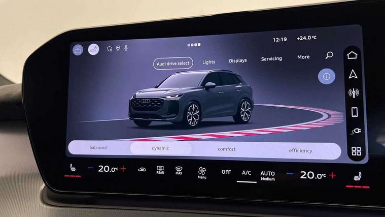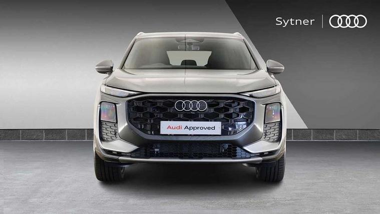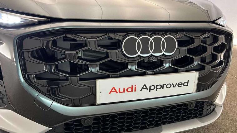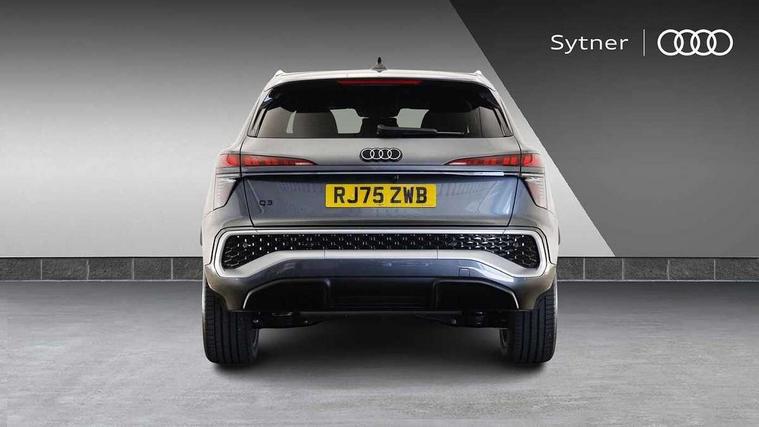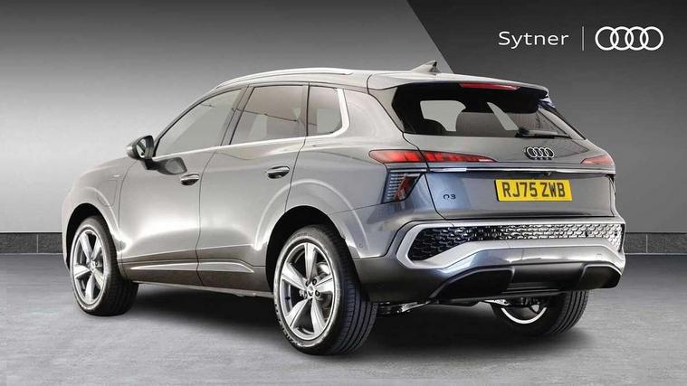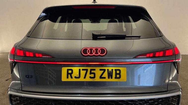 Adaptive cruise control, Audi connect emergency call and service, Audi connect remote and controls, Audi drive select (Balanced/Individual, effeciency, comfort and dynamic), Audi virtual cockpit plus - 11.9" display, Bluetooth interface, Camera based traffic sign recognition, Driver attention and fatigue monitor with driver monitoring, Front cross traffic assist, Lane departure warning with emergency assist, Panoramic curved display with 12.8" MMI navigation plus and MMI touch, Park assist plus with parking system and 360 display, Phonebox light with wireless charging, Reversing camera, Smartphone interface includes wireless Apple carplay/Android Auto, Start/stop system, Swerve assist and turn assist, Traffic sign based speed limiter, Voice control system with natural language interaction, 3 pin 10 amp domestic charging cable, Charging socket CCS type 2, Comfort suspension, Compact charging system, Industrial connector CEE 32A, 230V, Mode 3 charging cable for public charging, 22 KW (AC), Petrol Particulate Filter, 2 USB-C ports with charge and data functions, Audi sound system with 10 loudspeakers, subwoofer, 8 channel amplifier with 260 watts, DAB digital radio module, Acoustic glass for front door windows, Acoustic windscreen, Aluminium roof rails, Aluminium window trim, Audi Q3 lettering on the B-pillars, Auto dimming door mirrors, Auto dimming rear view mirror, Body colour door mirrors, Contrasting finish in volcano grey, Electrically folding, adjustable and heated door mirrors with integrated LED side indicators and kerb view function for passenger side, Full paint finish, Illuminated door sills with aluminium inserts at the front with S logo, LED daytime running lights, LED headlights plus with LED rear lights pro with continous light strip, illuminated Audi rings, rear, LED third brake light, Loading sill protector in stainless steel, Main beam assist, Privacy glass - dark tinted rear window, rear door and side windows, Projection light in the exterior mirrors - Projects a graphic element onto the ground, Q3 badging on the rear, Rain and light sensors, Rear side wing doors, Rear window, rear door windows and rear side windows in clear glass, Rear wiper, Sports bumpers, 3 seat bench in 2nd row, 3 spoke flat top and bottomed leather multi function sport steering wheel with gear shift paddles and "S" badging, 3-zone deluxe automatic air conditioning, 4 way lumbar support for the front seats - electric with horizontal and vertical adjustment in four directions, Black cloth headlining, Convenience auxiliary air conditioning, Front and rear floor mats, Front and rear headrests, Front centre armrest, Heated front seats, Height and reach adjustable steering wheel, Interior storage compartment, Leather/artificial leather upholstery combination with S emblem + front sports seats, Luggage compartment lid, electrically opening and closing, Manual front seats with height adjustment, Rear seat bench plus with split folded 40:20:40, Single front passenger seat, Stainless steel pedals, Steering wheel operating unit, gloss black, Storage compartment in front centre console, Ambient lighting package pro - Q3, S line exterior styling pack - Q3, 3x3 point rear seatbelts, Acoustic vehicle alerting system, Convenience key with safelock, Driver and front passenger airbag with passenger airbag deactivation, Electromechanical parking brake, Electronic stabilisation control including ABS, ASR and EDL, First aid kit with warning triangle and high visibility vests, Front emergency brake assist, Hill hold assist, i - Size child seat mounting on the front passenger side and i - Size and top tether on the outer rear seats, Power operated child locks, Seatbelt monitoring, Three point automatic belts with belt tensioner and height adjustment, Tyre pressure loss indicator, Anti theft wheel bolts, Remote central locking, Thatcham approved category 1 anti theft alarm, Dark aluminium divergence inlay, Interior elements in dinamica microfibre, Interior trims in aluminium look, Tool kit and Jack, Tyre repair kit,