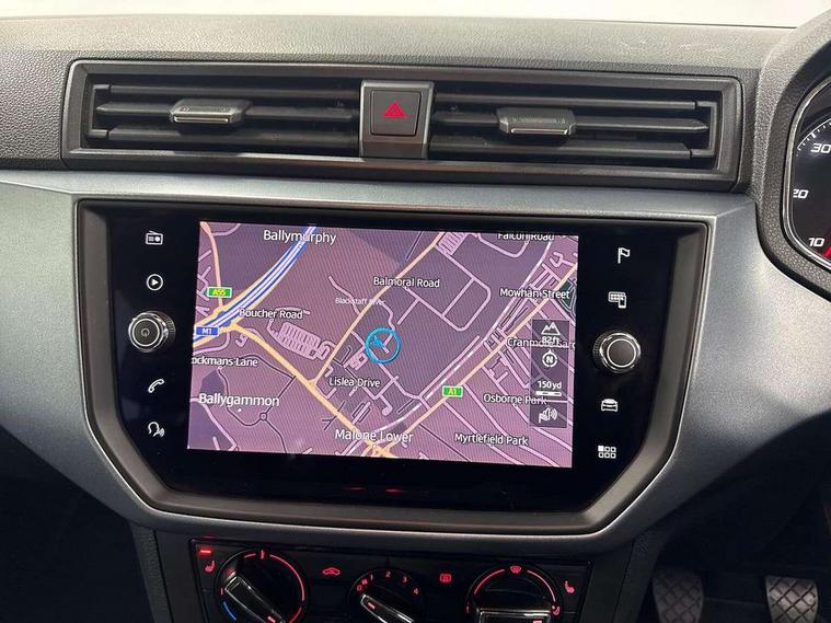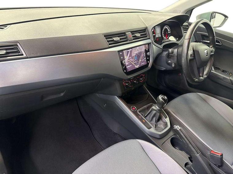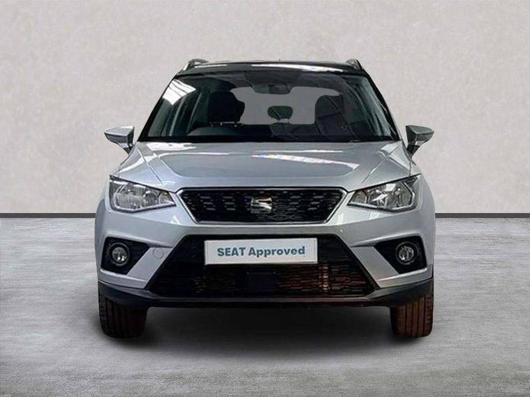 'Lights On' Reminder warning buzzer, Adaptive cruise control, Digital clock, Electric speed sensitive power steering, Front assistant collision mitigation, Full Link Smartphone Integration with Mirror Link, Apple Car Play, Google Android Auto, Low fuel warning light, Outside temperature display, Rear parking sensor, RPM counter, Trip computer, Comfort suspension, 6 speakers, Beats audio system, Bluetooth interface for hands free and audio streaming, DAB Digital radio, SEAT USB media cable, Steering wheel mounted audio controls, Anti theft roof antenna, Automatic activation of hazard warning lights, Automatic headlights, Black roof rails, Black window surrounds, Body coloured bumpers, Body coloured door handle inserts, Chrome grille surround, Electric adjustable door mirrors, Electric front/rear windows with one touch/auto up/down, Electric headlight adjustment, Front fog lights with static cornering function, Halogen headlights, Hidden exhaust pipe, LED daytime running lights, LED licence plate lighting, LED tail lights, Rear fog lights, Rear window wash/wipe, Visible VIN plate, Windshield wiper with intermittent control and potentiometer, 2 cupholders, 3 rear height adjustable headrests, 60/40 split folding rear seat, Active head restraints, Air conditioning, Ambient interior lighting, Card holder, Cloth upholstery, Double boot floor, Driver and passenger sunvisors, Driver/front passenger seat height adjustment, Dust/pollen filter, Footwell ambient lighting, Front courtesy lights, Front reading light, Gear shift indicator, Height/reach adjustable steering column, Illuminated boot, Instrument lighting with brightness control, Isofix attachments on outer rear seats, Leather handbrake, Leather steering wheel and gear knob, Connectivity pack plus - Arona, Winter pack - Arona, 3 point seatbelts on all rear seats, ABS+EBA, Child locks on rear doors, Driver/Front Passenger airbags, Electronic stability control, Front and rear seatbelt reminder, Front side/curtain airbags, Height adjustable active front headrests, Hill hold control + Tyre Pressure monitor, Multi-Collision braking, Passenger airbag deactivate switch, Tiredness recognition system, Traction control, 2 folding remote keys with window open/close function, Immobiliser, Keyless entry and start, Locking wheel bolts, Remote central locking + deadlocks, Interior chrome line trim, 17" Dynamic alloy wheels,