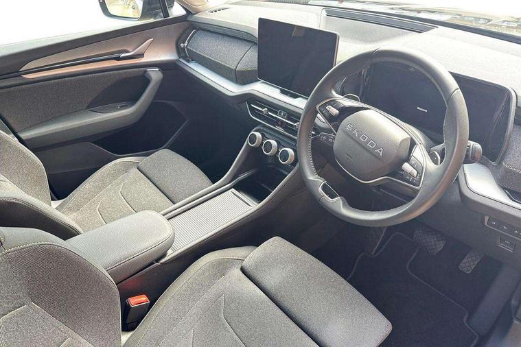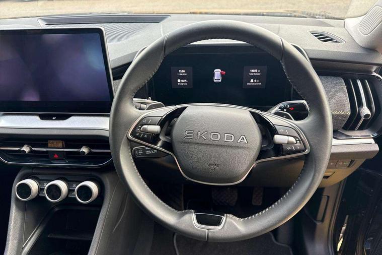 13" satellite navigation touchscreen display, Blind spot detection with door exit warning, Bluetooth system, ChatGPT functionality, Driver alert - Fatigue and drowsiness monitor, Dry display cleaner, Emergency call, Front and rear parking sensors, Front cross traffic assist, Lane assist, PAS, Rear traffic assist, Rear view camera, Tailgate unlocking from outside, Traffic sign recognition, USB C Port x 2 in front centre console, Virtual Cockpit - 10.25" digital display, Voice control system, Wireless charging for two smartphones (15W) with cooling function, Wireless SmartLink for Apple CarPlay and Android Auto, Stop/start function, 2x USB-C in the rear, 8 Speakers, DAB Digital radio, Aero front windscreen wipers with intermittent function, All weather light, Auto dimming rear view mirror, Black wheel arch surrounds, Body colour bumpers, Body colour door mirrors and handles, Cornering light and poor weather light, Electric folding /adjustable/separted heated/folding door mirrors, auto dimming with boarding sports and memory function, Electric front and rear windows, Exterior black decorative trims, Heat insulating glass in windshield, Heated rear window, Ice scraper in fuel tank cap, Invisible tailpipe, LED daytime running lights, LED front fog lamps, LED Headlights, LED rear fog light, LED rear lights, LED third brake light in rear spoiler, Light assistant with automatic headlight control and coming home feature, Logo projection in door mirrors, Rear roof spoiler, Rear side wing doors, Rear window wiper, Safety reflectors on front and rear doors, Unique dark chrome design logo on alloy wheels, Window control switches with black trim, Windscreen wipers with rain sensor, Without engine designation, 1.5l bottle holder points in all door, 1x centre rear reading light, 2 seat bench in 3rd row, 3 configurable smart dials with 32mm coloured display, 3 seat bench in 2nd row, 4 foldable roof handles with rear coat hooks, Ambient interior lighting - Dashboard, front-door stowage compartments, front and rear door panels and footwell lighting, Automatic gear selector on steering column, Chrome interior door handles, Driver/front passenger reading lights, Fabric headlining, Fixed bench 40:60:40 split folding backrests, Front and rear floor mats, Front centre armrest with jumbo box storage compartment, cup holder and 12V socket, Height adjustable front headrests, Isofix child seat fittings in outer middle row rear seats and front passenger with top tether, Manual height adjustment for front passenger seats and thigh support extender, Manual lumbar support for front passenger seat, Manually adjustable steering column, Pollen filter, Rear centre armrest with cupholders, Rear seat boot backrest release, Single front passenger seat, Skoda lettering on steering wheel, Storage pocket including mobile phone pockets on the backs of the front seats, Sunvisors with illuminated vanity mirrors, Three rear height adjustable headrests, Ticket holder on A Pillar, Tri zone climate control, Umbrella in door panel x1 made from sustainable materials, Upper and lower glovebox with card holder and coin compartment, USB C port by rear view mirror for charging only (15W), Variable boot floor, Auto door release and activation of warning lights in the event of an accident, Driver and front passenger airbag with knee airbag and front passenger airbag deactivation, Electric child locks, Electronic parking brake, ESC (incl. ABS+EMD+MSR+ASR+EDL+HBA+DSR+RBS+ESBS+MCB+TSA+XDS), Front assist with braking reaction to vehicles, pedestrians and cyclists, Front disc brakes, Fuel cut off safety device, Height adjustable front 3 point seatbelts + pretensioners, Hill hold assist, Junction assist with automatic emergency braking, Rear disc brakes, Safety vest holder in door, Seat belt reminder for all seats, Three point rear seat belts, Two tone horn, Tyre pressure monitor, Alarm with interior monitoring and tilt sensor with safe function, Anti-theft wheel bolts, Immobiliser, Remote central locking with 2 keys, Breakdown kit, Tool kit,