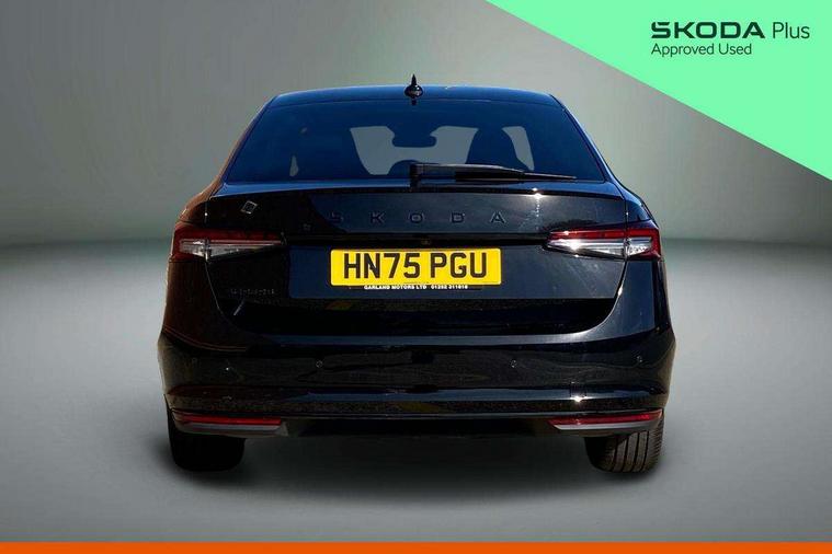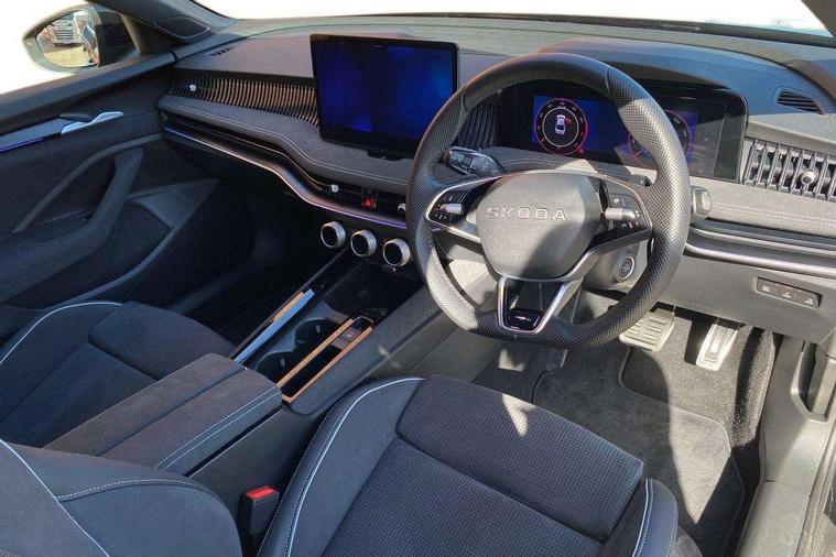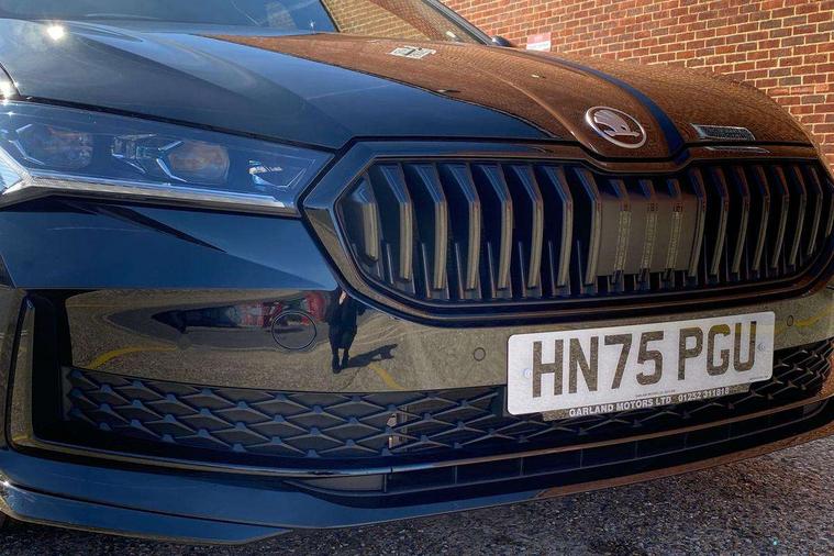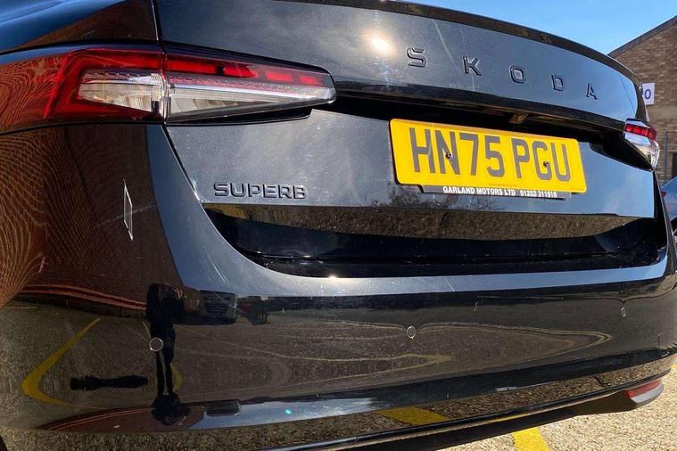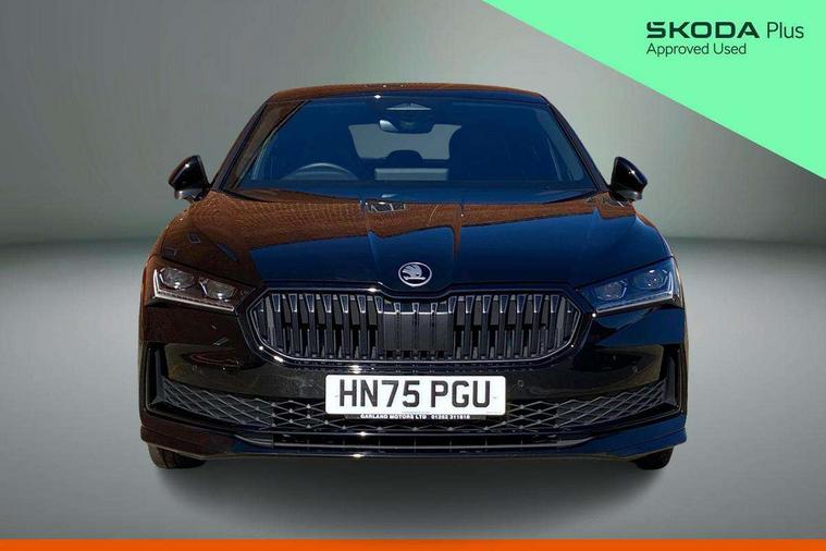 13" touchscreen display with satellite navigation, 4x USB-C ports (2x in front centre console and 2x in rear) (45W), Adaptive cruise control with speed assist, lane assist plus and traffic tram assist, Blind spot detection with door exit warning, Bluetooth system, CareConnect and Emergency Call, ChatGPT functionality, Driver fatigue sensor, Easy boot close funtion, Front assist with extended predictive pedestrian protection, Front cross traffic assist, PAS, Quick start all heating software functionality, Stop/start engine system, Traffic sign recognition, Turn assist with evasive assistance, Virtual Cockpit - 10.25" digital display, Voice control system, Washer for rear camera, Wireless charging for one smartphone (15W) with cooling function, Wireless smartlink apple carplay, SmartLink+ android auto, Dynamic chassis control plus with progressive dynamic steering, DAB Digital radio, Display cleaner, FM radio connection, Web radio connection, Acoustic side windows and interior noise suppression, Backdrop lighting, Black exterior styling window and grille surrounds, Body colour door handles, Dynamic range control with poor weather light and integrated fog light, Electrically adjustable, heated, folding and driver side auto-dimming door mirrors with memory function, integrated indicators and logo projection, Frameless auto-dimming rear view mirror with USB-C, Gloss black door mirrors, Ice scraper in fuel tank cap, LED 3rd brake light, Light assist with High beam control, Light assistant (coming/leaving home/tunnel light), Privacy glass, Rear fog lights (x2), Rear side wing doors, Skoda lettering in black, Sportline badging, Sports bumpers, Windscreen wipers with rain sensor, 12V socket 1x centre console 1x boot, 14-way electrically adjustable, memory, front seats with 4-way pneumatic lumbar support, and extendable thigh support with smart comfort entry aid, 2x cargo elements in boot, 2x light in boot, 3 seat bench in 2nd row, 60:40 Split folding rear seats, Aluminium pedals, Bottle holders in the front doors 1.5 litre bottle and rear 1.5 litre bottle, Cup holder in front with easy open mat, Front armrest with storage box, Front sports seats, Heated and ventilated front seats, Height adjustable front and rear head restraints, Illuminated glovebox, Interior lights with control switches, Isofix child seat fittings in outer rear and front passenger seats, LED front and rear reading lights, Single front passenger seat, Skoda lettering on steering wheel, Storage compartment with cover, Storage pockets on back of front seats, Sun visors with illuminated vanity mirrors, Ticket holder on A Pillar, Tri zone climate control, Umbrella in driver's door, Light and view package - Superb, Transport package - Superb Hatchback, 3 rear seatbelts, 8 Airbags - Front driver and passenger, front side driver and passenger, centre, curtain front and rear, drivers knee, Crew protect assist, Driver and passenger seatbelts with warning light, Electronic parking brake, ESC including ABS, EBV, MSR, ASR, EDS, HBA, DSR, RBS, CBC, multi-collision brake (MKB) and Auto hold, Hill hold assist, Power operated child lock in rear doors, Alarm with interior monitoring tilt sensor and back up horn, Backrest remote release from trunk, Electronic engine immobiliser, Keyless start/stop, Remote central locking with SAFE system, Third key, Walk away locking, Decorative front door sills, 19" Torcular polished black alloy wheels with anti theft wheel bolts,