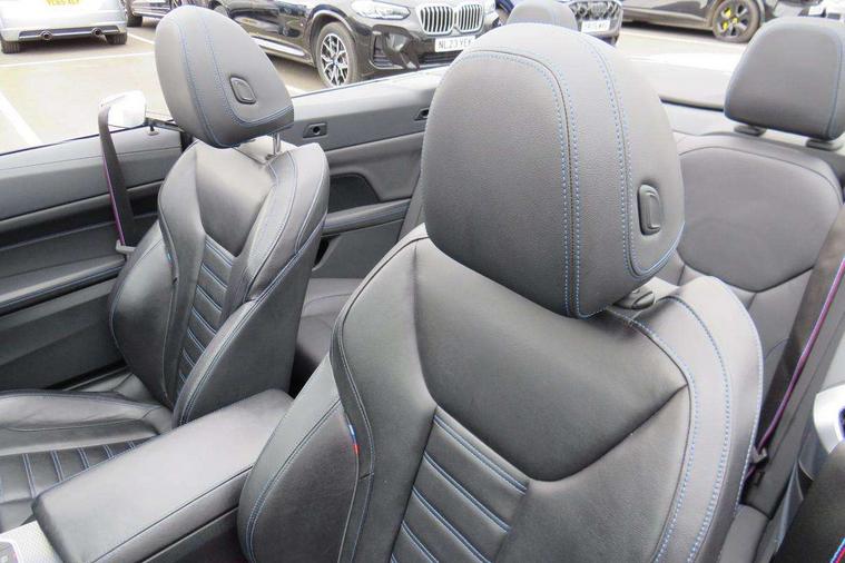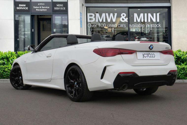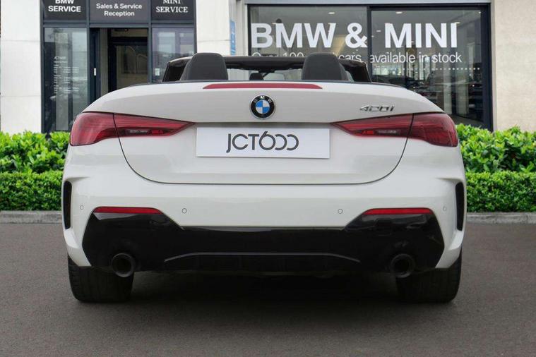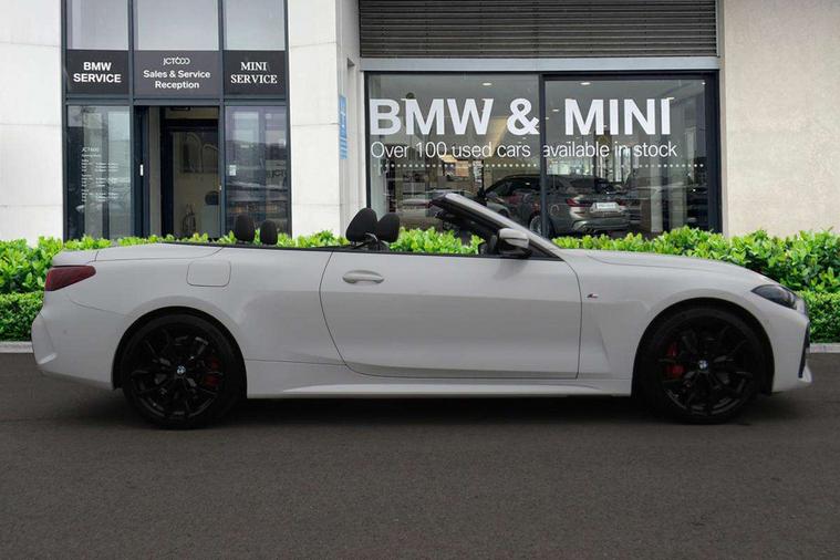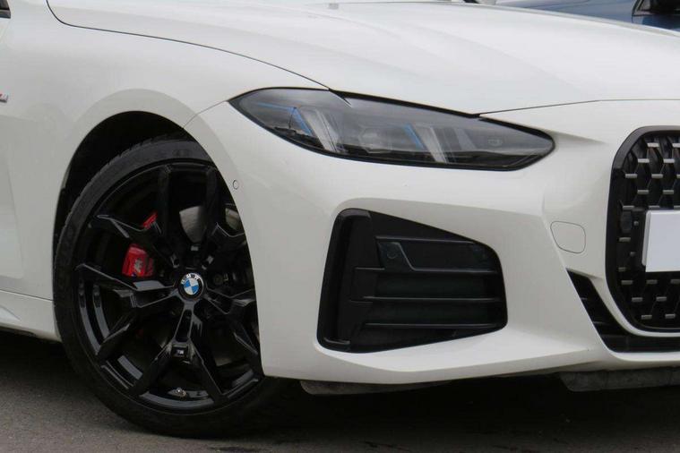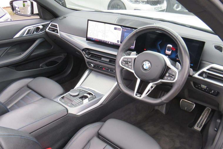 Active guard plus, Attentiveness assist, Auto start-stop, Bluetooth hands free facility with USB audio interface with audio streaming, BMW ConnectedDrive online services, BMW iDrive controller on centre console, BMW Live Cockpit Plus Nav-12.3" instrument&14.9" control Widescreen curved display/Intelligent Voice Assist/iDrive touch/Access 3rd party app/4G LTE, BMW service history, BMW Teleservices, Brake pad wear indicator in front and rear, Check Control warning system for monitoring of lights and door/luggage compartment open warning, Condition based service, Electric power steering with Servotronic steering optimised at all speed ranges, Gearshift time display in manual mode, Instrument cluster with speedometer with mph readout, tachometer, fuel gauge and oil temperature gauge, Integrated owners handbook, Language version English, Oil sensor for level and grade, warning by check control system, On board computer - average speed, fuel consumption, outside temp display with acoustic warning, clock/date, service interval, odometer/trip meter, Optimum shift indicator, Run flat indicator, Shifting point display, Variable sport steering, 8 speed automatic steptronic transmission with gearshift paddles, Balanced 50/50 weight distribution, Double joint spring strut front axle, Double VANOS, Drive performance control - ECO PRO, comfort and sport modes, Electronic differential lock control (EDLC), High precision injection, Low centre of gravity, Petrol Particulate Filter, Stroke dependent dampers, VALVETRONIC engine management, 1x USB type A with data transfer and 1.5 Amp charging function in the centre console, 1x USB type C with 3 Amp charging function in the front centre armrest, DAB tuner, Electronic service booklet, Personal eSim, Acoustic glazing, Automatic headlight beam throw control with load dependent regulating reaction, dynamic compensation of braking dive and acceleration squat, Automatic windscreen wipers and automatic headlight, Automatically dimming electrochromatic rear view mirror, BMW emblem on engine compartment lid and tailgate, BMW kidney grille with mesh grille front side of the nuggets in matt aluminium and frame in chrome high gloss, Body colour fuel filler flap, Body colour roof fin, Brushed aluminium inserts in the front door sill finishers with BMW designation, Door sill strips, Dynamic brake lights, Electric windows - front and rear, with open/close fingertip control, anti trap facility and comfort closing function all round, Exterior mirrors - electrically folding with anti-dazzle, Fading support, Follow me home headlights, Front and rear bumper system, Front apron plastic in body colour, Green tinted heat protection glazing, High gloss shadow line exterior trim, Illuminated bow type door handles in body colour drivers side with door lock, Interior rear view electrochromatic mirror with automatic anti dazzle function, LED 3rd brake light, LED daytime running lights, LED front fog lights, LED front indicators, Licence plate panel integrated into front bumper and tailgate, Lightweight engineering, Low and high beam headlights in Bi-LED, M designation on front side panels, left and right, One piece front bumper cover including towing eye cover in body colour, Preparation for high beam assistant, Rear boot, Reversing light, Side frame decorative moulding black matt, Two part LED tailights in L-shape with components in smoked glass, brake light, LED turn indicator and rear fog light, Visible exhaust tailpipe finisher, Visible VIN plate, Welcome lights in interior and door handle area, Widened track and increased camber values for max transverse dynamics, agility and steering precision, Wind deflector, Window recess finisher strip in matt black, Windscreen wipers with integrated heated washing jets, 12V power socket in front centre console, 2 2nd row folding seats, 2 front cupholder in centre console with clamping elements and matt black inlay, 2 Rear seat headrests, 2 zone automatic air conditioning, 2nd row centre armrest with built-in cupholders, 3 spoke flat bottom M sport leather multifunction steering wheel, 4 pieces lashing eyelets in luggage compartment, Anthracite headlining, Armrest integrated in front and rear door trim + front centre console armrest, Battery in luggage compartment, BMW ID, Driver seat backrest width adjustment, Electric memory seats - electrically adjustable seats with drivers seat memory, exterior mirrors memory and automatic parking function, Extended storage - Luggage compartment partition net on left side trim panel, Bag hook on both sides of the luggage compartment, Front and rear door pockets, Front and rear reading lights, Front footwell lights, Front sport seats, Heated driver and front passenger seats, Height adjustable front headrests, Height adjustable mechanically and infinitely variable steering column, Illuminated armrest storage compartment, Illuminated glove compartment with separate small compartment, Luggage compartment light, Make-up mirror lights, Single front passenger seat, Storage compartment in rear centre console, Sunvisors with illuminated vanity mirrors and ticket pocket, Toolkit located in luggage compartment, Velour front floor mats, Ambient lighting pack - 4 Series, Connected professional package - 4 Series, M sport exterior styling pack - 4 Series, Park assist pack - 4 Series, 2 x 3-point rear seatbelts, Battery safety cut-off, BMW emergency call, Brake energy regeneration, Braking pre-tensioning, Child seat ISOFIX attachment for the two outer rear seats, Coasting in idle in ECO PRO mode, Cornering brake control (CBC), Crash sensor activating of airbags, Unlocking doors, hazard warning lights, interior light, safety battery terminal, Driver and front passenger side airbags, integrated in the door side seat backrest bolsters for all seat variants, Driver/Front Passenger airbags, Dry braking, Dynamic brake control, Dynamic stability control + (DSC+) - Anti-lock Braking System (ABS) with brake assist and cornering b