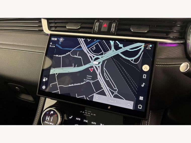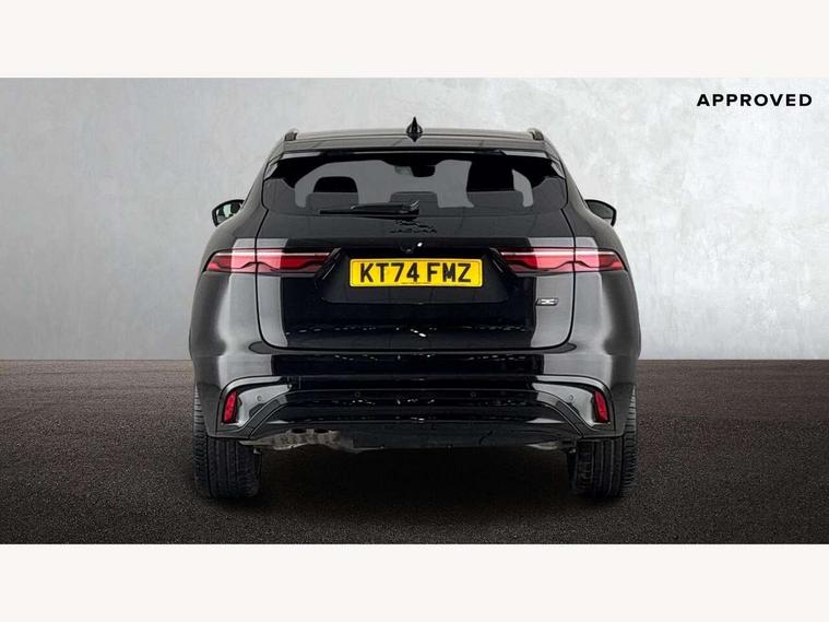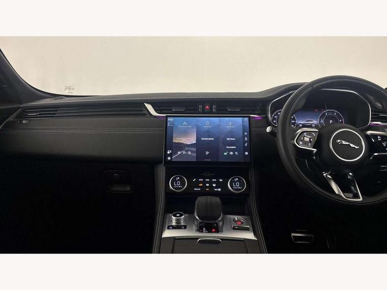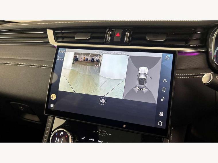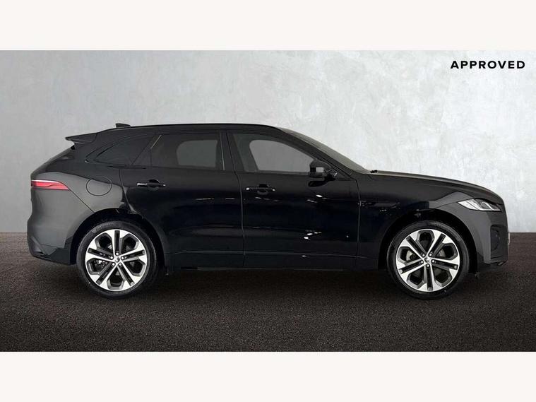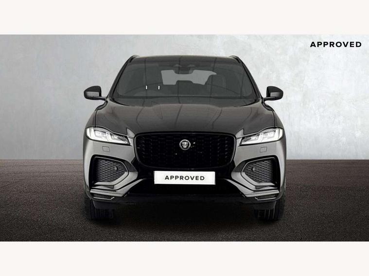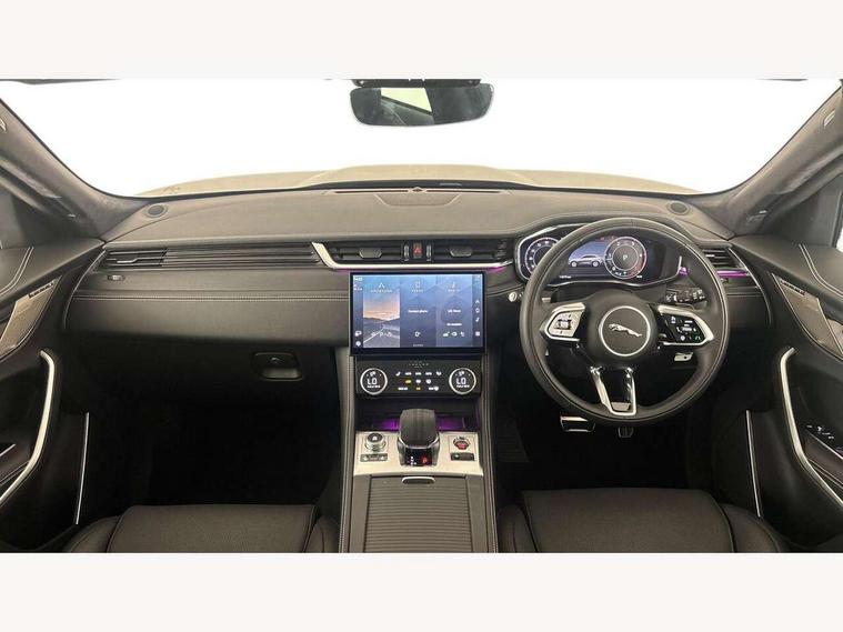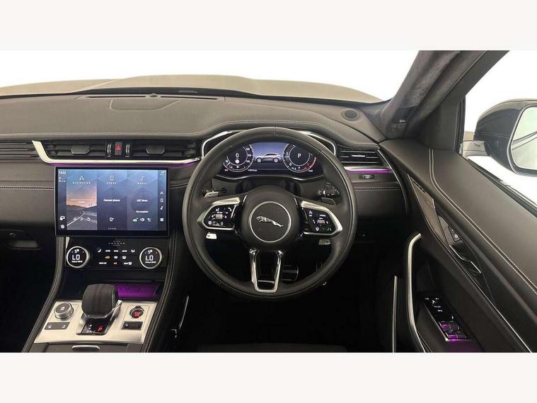 11.4" touchscreen, Adaptive cruise control with steering assist, Android Auto, Apple car play, Blind spot assist, Bluetooth connectivity, Clear exit monitor, Driver alert system, Driver condition monitor, eCall emergency call system, Eco driving style assistant, Electric power assisted steering, InControl remote, Interactive driver display digital with 12" TFT display, Jaguar Toggle shift selector, Lane departure warning system, Lane keep assist, Outside temperature gauge, Personalisation profile management, Pivi pro connected navigation system with app interface and media storage, Pro services and wifi hotspot, Push button starter, Rear collision monitor, Rear traffic monitor, Service interval indicator, Speed proportional steering, Start up sequence with movement in dials and lighting, Traffic sign recognition with adaptive speed limiter, Trip computer, Voice control system, Wireless device charging, 8 speed automatic transmission, Adaptive dynamics, All terrain progress control, All Wheel Drive (AWD), Configurable dynamics, Open differential with torque vectoring by braking, AM/FM radio, Bluetooth streaming, DAB Radio (Digital Audio Broadcasting), Dynamic volume control, InControl apps, InControl protect, iPod integration, 3 flash lane change indicators, 90th Anniversary Edition Badge, AHBA and animated directional indicators, Approach Illumination, Auto dimming rear view mirror, Automatic headlights, Electric heated/power fold memory door mirrors with approach lights and auto dimming driver side, Electric windows with one touch open/close and anti trap, F-Pace and R Dynamic badge, Green tinted glass, Heated front windscreen + heated washer jets, Heated rear window with timer, Illuminated metal tread plates with Jaguar script, Jaguar script and leaper, LED High level third brake light, LED tail lights, Metal load space scuff plates, Non acoustic front windscreen, Privacy glass (rear side windows and rear screen), R Dynamic badge on side door, Rain sensor windscreen wipers, Rear fog lights, Rear metal tread plates, Rear side wing doors, Rear wiper, Trailer stability assist, Variable front intermittent wipers, 12V power point front, 3 rear headrests, 3 seat bench in 2nd row, Additional power sockets - Two additional USB sockets in rear centre console and one 12V socket in trunk, Air distribution speed, Bright metal foot pedals, Centre armrest console, Centre console with side storage, Configurable cabin lighting, Deletion loadspace storage rails, Door sill tread plates, Ebony suede cloth headlining, Electrically adjustable steering column, Fold flat front seats, Front centre armrest with storage compartment, Front door storage space, Glovebox finisher with jaguar script, Heated steering wheel, Hooks in loadspace, Illuminated glovebox, Interior front door handles with separate locking switches, ISOFIX on outer rear seats, Jaguar sense, Leather steering wheel, Luggage tie downs in loadspace, Mist sensing, Multifunction steering wheel, Overhead lighting console, Overhead stowage for sunglasses, Passive front head restraints, Premium carpet mats, Rear air vents, Rear armrest with twin cupholders, Rear centre headrest, Rear door storage space, Reversible boot floor, Satin chrome gearshift paddles, Shopping bag hook, Single front passenger seat, Sunvisors with illuminated vanity mirrors, Twin front cupholders with cover, Online Pack with data plan - F-Pace, 355mm front brakes and 325mm rear brakes, 3x3 point rear seatbelts, ABS, All surface progress control (ASPC), Brake pad warning light, DSC - Dynamic Stability Control, Electric parking brake (EPB), Emergency brake assist, Front airbags with passenger seat occupant detector, Front and rear seatbelt reminder, Front side airbags, Full length side window curtain airbag, Hill launch assist, Power operated child locks, Traction control, Tyre pressure monitoring system, Immobiliser, Keyless entry, Keyless start, Locking wheel nuts, Perimeter alarm, Remote central locking, Valet mode,