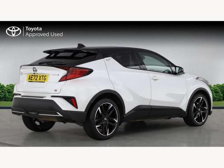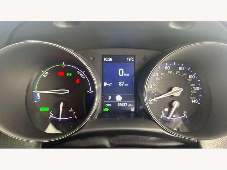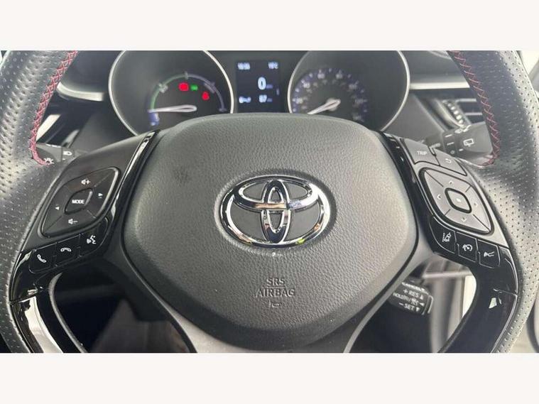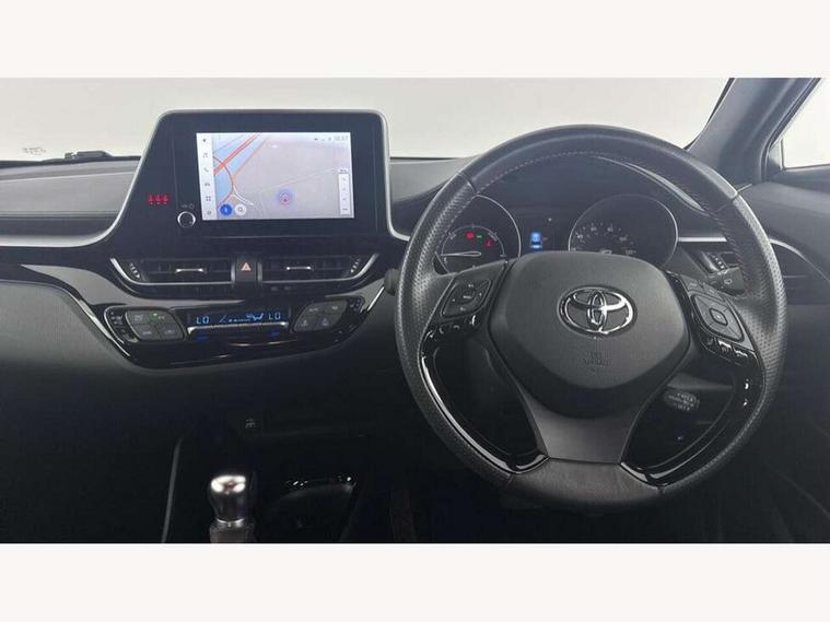 4.2" coloured TFT screen for multi-information display, Adaptive cruise control, Bluetooth connectivity, E-call, Electric power steering, Hybrid system indicator, Lane departure alert with steering control, Lane trace assist, Push button tailgate release, Remote boot door release in cabin, Remote boot door release in key, Reversing camera, Road sign assist - RSA, Simple Intelligent parking assist, Smart voice assist, Touch 2 Go navigation system, Trip computer, Voice recognition, Wireless smartphone integration, Vehicle Stability Control (VSC), 6 speakers, AM/FM radio, DAB Radio (Digital Audio Broadcasting), Toyota touch 2 multimedia system with 8" display, USB connector, Wi-fi connectivity, Adaptive front light system, Adaptive LED Headlights, Anti-jam protection on power windows, Auto high beam, Auto up and down function on all power windows, Automatic headlight levelling, Automatic headlights, Automatic headlights cut-off, Black and body coloured rear bumper, Black upper front grille, Body colour door handles, Body colour door mirrors, Body coloured front bumper, Boot door release with push button, Chrome front lower bumper, Electric heated door mirrors, Follow me home headlights, Front and rear power windows, Front spoiler lip in black, Headlight cut off reminder, Honeycomb lower front grille, LED daytime running lights, LED fog lights, LED front light guide, LED High mounted stop light, LED rear brake lights, LED rear combination lights, Noise reduction layer on front windows and windscreen, Power adjustable door mirrors, Privacy glass, Rain sensor, Rear sequential indicators, Rear side wing doors, Rear spoiler, Rear tailgate, Rear window defogger, Rear window wiper, Shark fin antenna, UV-filter on driver and passenger windows, UV-filter on rear windows, 12v power outlet - front, 3 rear headrests, 3 seat bench in 2nd row, 3 spoke perforated leather steering wheel, 60/40 split folding rear seat, Adjustable rear headrests, Adjustable speed limiter switch on steering wheel, Assist grips front and centre pillar, Audio and telephone switches on steering wheel, Black front door assist grips, Blue ambient lighting on front cup holders, Blue ambient lighting on front doors, Boot light, Chrome interior door handles, Cloth upholstery, Driver and front passenger personal light, Driver and front passenger Whiplash Injury Lessening seats, Driver and passenger seatback pockets, Dual zone automatic air conditioning, Floor mats, Front cupholders, Front head restraints, Front sports seats, Glovebox with internal light, Hard tonneau cover, Heated driver and front passenger seats, Hooks for luggage holding net, Humidifying Nanoe air purifier, Illuminated entry system, Isofix attachments on outer rear seats, Leather gearshift, Light on driver sun visor, Light on passenger sun visor, Manual telescopic steering wheel, Manual tilt steering wheel, Manually height adjustable driver seat, Manually height adjustable front passenger seat, Manually reclining driver seat, Manually reclining front passenger seat, Manually sliding driver seat, Manually sliding front passenger seat, Microphone on front personal light, Mirror on driver sun visor, Mirror on passenger sun visor, Multimedia switches on steering wheel, Pollen filter, Power adjustable lumbar support on driver seat, Shopping bag hooks, Single front passenger seat, Slow opening on lower glovebox, Voice recognition switch on steering wheel, Tech with parking sensor pack - C-HR, 16 Disk front wheel brake, 3x3 point rear seatbelts, ABS+EBD+Brake assist, Electronic parking brake, Front and rear seatbelt reminder, Front passenger airbag on/off switch, Hill start assist control (HAC), Pre collision system with pedestrian detection, Pre-tensioners and force limiters, Rear door child safety locks, SRS Airbags - Driver + Front passenger, front side, front and rear curtain and driver's knee airbags, Toyota safety sense, Tyre pressure monitoring system, Tyre pressure warning system, Acoustic vehicle alert system (AVAS), Glass-breaking alarm sensors, Immobiliser, Intrusion alarm, Intrusion sensor, Motion sensor alarm, Power door locks, Power passenger window lock, Remote central locking, Black lower dashboard, Black upper dashboard, Piano black console, Silver deco line on upper dashboard, 19" Black machined alloy wheels, Tyre repair kit,