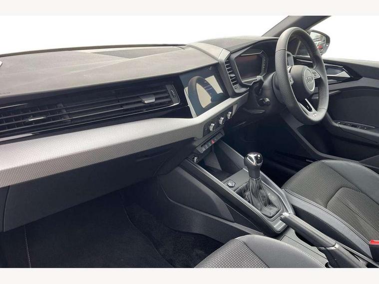 10.25" Digital instrument cluster display classis style instrument dials + speed, odometer, time, outside temperature, telephone menu + fuel level warning, Advanced driver attention and drowsiness monitor, Audi connect emergency call and service, Audi drive select, Audi remote connect and control, Audi smartphone interface, Bluetooth interface, Camera based traffic sign recognition, Cruise control, Driver's information system, Electromechanical power steering, Lane departure warning system, Rear parking sensor, Service interval indicator, Speed limiter, Start stop system with recuperation, Voice control system, Washer fluid level indicator, Sports suspension, 2 x USB type C connection points, 6 loudspeakers, DAB Digital radio, MMI radio plus with 10.1" colour MMI display screen and MMI touch, Auto dimming rear view mirror, Body coloured door mirrors, Door sill trims with aluminium inlays and S line logo in front, Electric front and rear windows, Electrically adjustable, heated, folding door mirrors with integrated LED side indicator, Front side air inlets in grained matt black and C frame in anthracite black, Headlight cleaning system, Heat insulating glass windscreen and side windows, Heated rear windscreen, High level LED brake light, LED daytime running lights, LED headlights with range control LED rear lights + dynamic rear indicators, Light and rain sensors, Privacy glass, Radiator grille and rear diffuser in matt anthracite black, Radiator protective grille frame in matt aluminium silver, Rear fog lights, Rear side wing doors, Rear wiper, S line badges on front wings, Side front spoiler lips in grained matt black, 12V socket in centre console with two cup holders, 3 rear seats with headrests, 3 seat bench in 2nd row, 3 spoke leather multi-function plus steering wheel features S badging and grips in perforated leather with contrast stitching, 40:60 Split folding rear seat or fully collapsed, Black cloth headlining, Front and rear velour black floor mats with contrast stitching in fine silver, Front head restraints, Front passenger seat, Height and reach adjustable steering wheel, Interior lighting includes roof module, front and rear reading lights and right luggage compartment lighting, ISOFIX child seat mounting for front passenger and outer rear seats including top tether attachment point of outer rear seats, Leather gear knob with aluminium trim, Leather handbrake grip, Manual air conditioning, Manual height adjustable for driver and front passenger seat, Manually adjustable lumbar support in front seats, Stainless steel pedals, Ambient lighting package - A1, Luggage compartment pack - A1, S line exterior styling pack - A1 Sportback, 3x3 point rear seatbelts, Audi pre-sense front with pedestrain and cyclist recognition, Brake assist function, Driver and front passenger airbag with front side and head airbags, Electronic Stability Control including ABS, EBD, ASR and EDL, Front passenger airbag deactivation switch, Hill hold assist, Manual rear child locks, Seatbelt height adjustment for front seats, Seatbelt monitoring, Tyre pressure loss indicator, Warning triangle and first aid kit, Anti theft alarm, Anti theft wheel bolts, Immobiliser, Remote control key with safelock, Aluminium trim for control switches, air vents and digital instrument cluster, Black dashboard, Silver grey inlays polygon structure in diamond paint finish, Structured grey accent surfaces insert of air vents, interior door handle recesses and centre console in quartz paint finish,