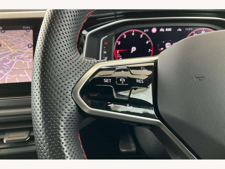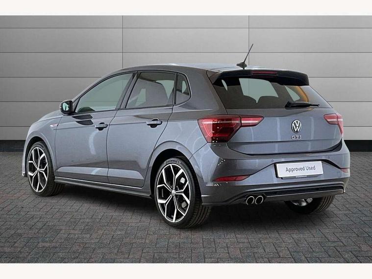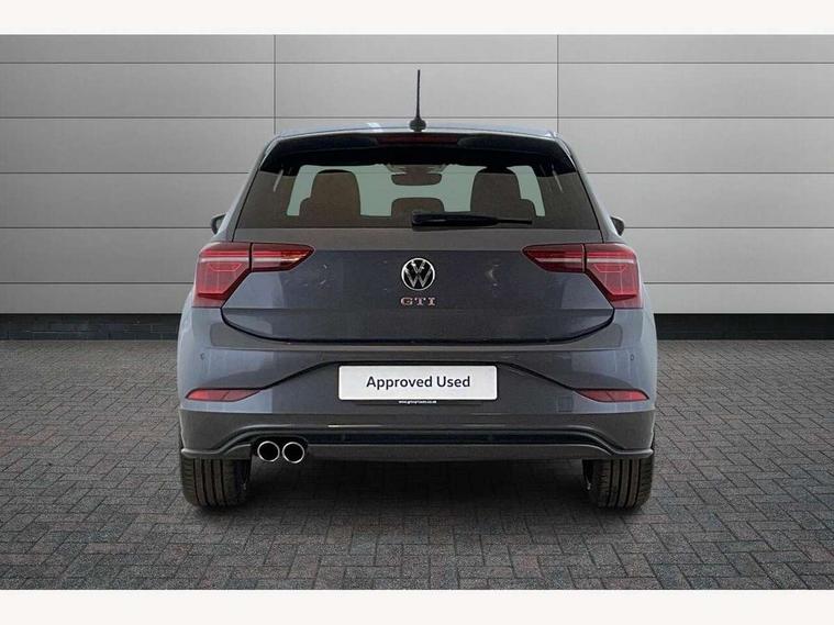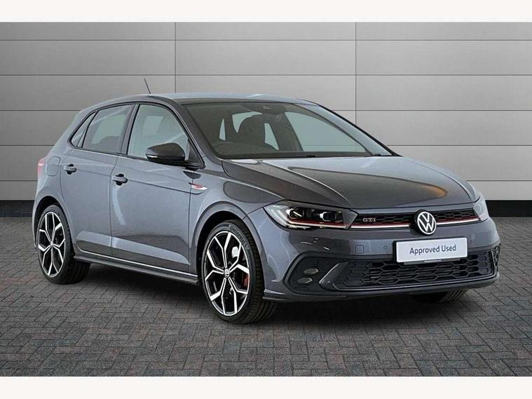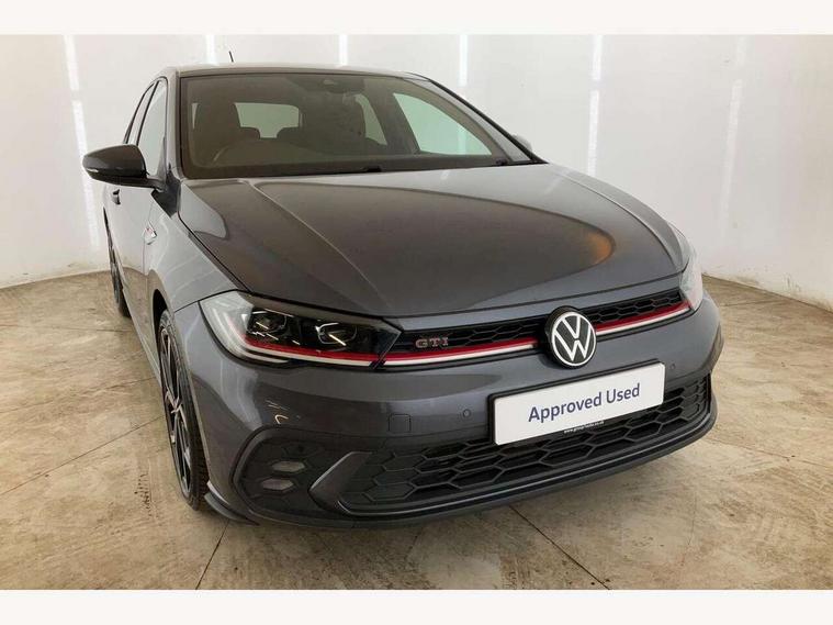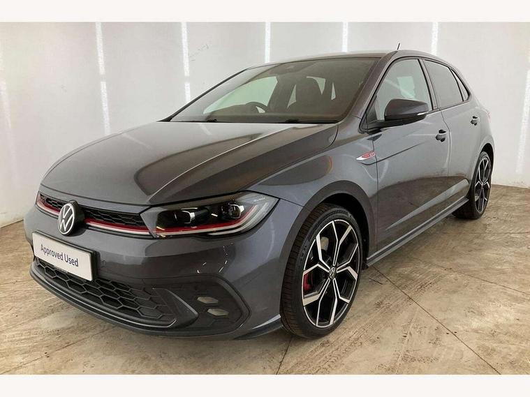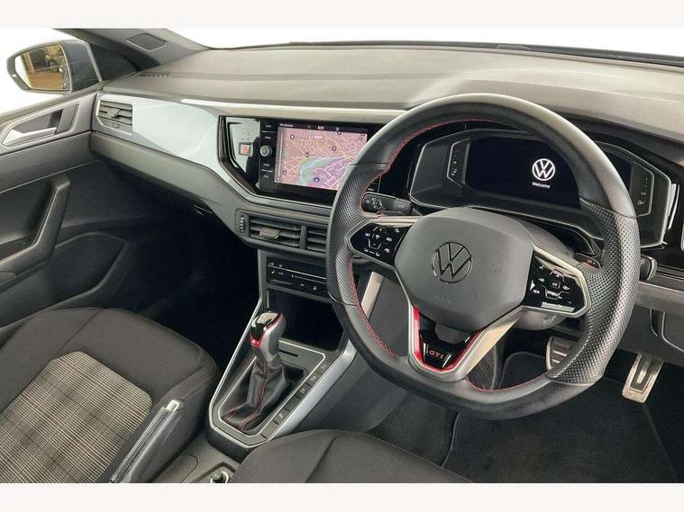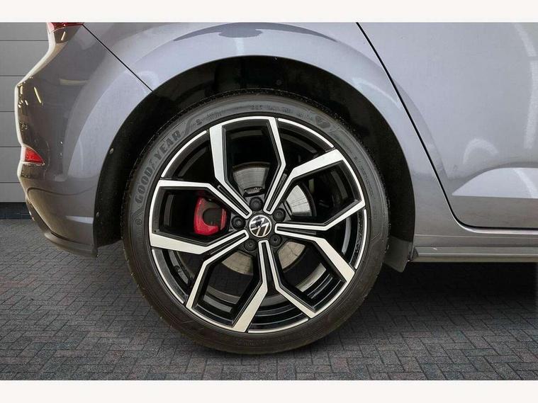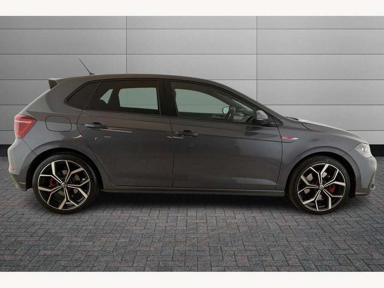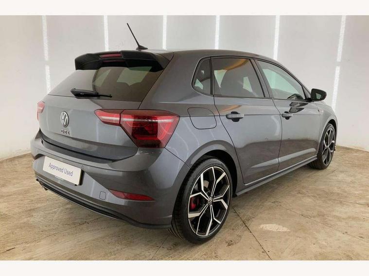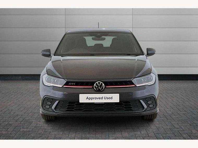 Adaptive cruise control with follow-to-stop and speed limiter, Bluetooth mobile phone interface, Digital Cockpit Pro with 10.25" Display, Driver alert system, Dynamic road sign display, Eco mode, Emergency call service, Power assisted speed sensitive steering, Preparation for We connect and We connect plus, Speedo and rev counter, electronic odometer, trip, service interval display and fuel gauge, Travel Assist - Lane keeping system and traffic jam assist, Travel assist including emergency assist, Trip computer, Warning signal and warning light for front and rear seatbelts not fastened, Washer fluid level indicator, Wireless app connect, Adaptive chassis control, Front wheel drive, Heavy duty rear axle, Rear shock absorpion sports version, Sports select suspension lowered by 15mm, Start-stop system with battery regeneration (recuperation - energy recovery during braking), DAB Digital radio, Diversity antenna for FM reception, Front and rear 6 speakers, Body colour bumpers, Body colour door handles, Electric front windows, Front scuff plates in aluminium with GTI logo, Heat insulating darkened glass in side and rear windows, Heat insulating glass windscreen, Power folding adjustable/heated exterior mirrors and front passenger exterior mirror lowering function, Rear electric windows, Rear fog light, Rear side wing doors, Rear windscreen washer and wiper with interval delay, Sport bumpers with air intakes with honeycomb structure, Third brake light, Twin chrome exhaust tailpipes, 12V power socket in centre console, 2 USB-C ports in the front, 2 USB-C charging sockets on the center console in the rear, 3 rear head restraints, 60/40 split folding rear seat and rear seat bench not split, Air care climatronic air conditoning system with active combination filter and 2-zone temperature control, Black roof lining, Ceramique headliner, Chrome plated radiator grille inserts, air vent surrounds and light switch surrounds, Door and side trim panel, Driver and front passenger seat height adjustment, Driver/passenger sunvisors with illuminated vanity mirrors, Front + rear carpet mats, Front centre armrest, Front footwell illumination, Front seat backrest storage pockets, GTI sports gearshift knob in aluminium leather, Handbrake lever handle in leather, Isofix child seat preparation easy-fit (for two outer rear seats, and front passenger seat) compatible with I-size, LED interior light with switch off delay and dimmer, 2 reading lights front and rear, Luggage compartment cover, Luggage compartment floor, Luggage compartment lighting, Single front passenger seat, Stainless steel pedals, Standard pedal cluster, Three spoke leather wrapped multifunction sports steering wheel with shifting paddles, IQ LED matrix headlights pack - Polo, Light and sight pack - Polo GTI, Sports suspension pack - Polo, 3 point height adj front seatbelts + pretensioners, 3x3 point rear seatbelts, ABS, Driver and front passenger airbag with front passenger airbag deactivation, Drivers and front passengers safety optimised head restraints, ESC (Electronic stability control) + EDL (Electronic Differntial lock) and ASR (Traction control), Extended and predictive pedestrian/ cyclist protection, Front and rear disc brakes with red brake calipers, Front curtain and side airbags with center airbag, Hill hold control, Manual child lock in rear doors, Two tone horn, Tyre pressure loss indicator, Alarm with interior protection, Anti-theft alarm system with interior monitoring, backup horn, and towing protection, Anti-theft wheel bolts, Electronic engine immobiliser, Chrome applications on rotary light, mirror adjustment, window regulator switches, outlet with frame in black, Low rolling resistance tyres,