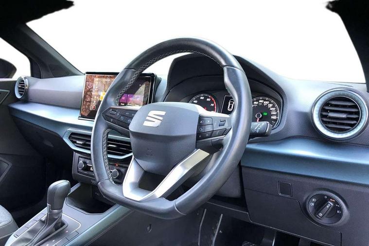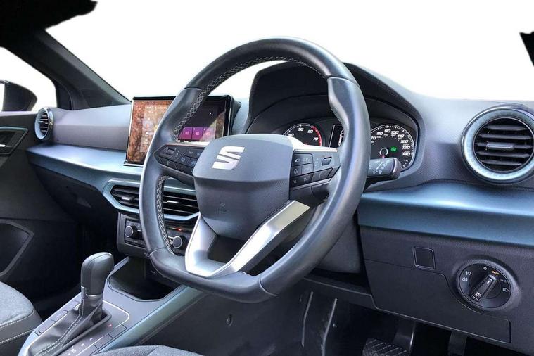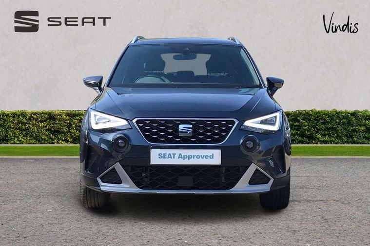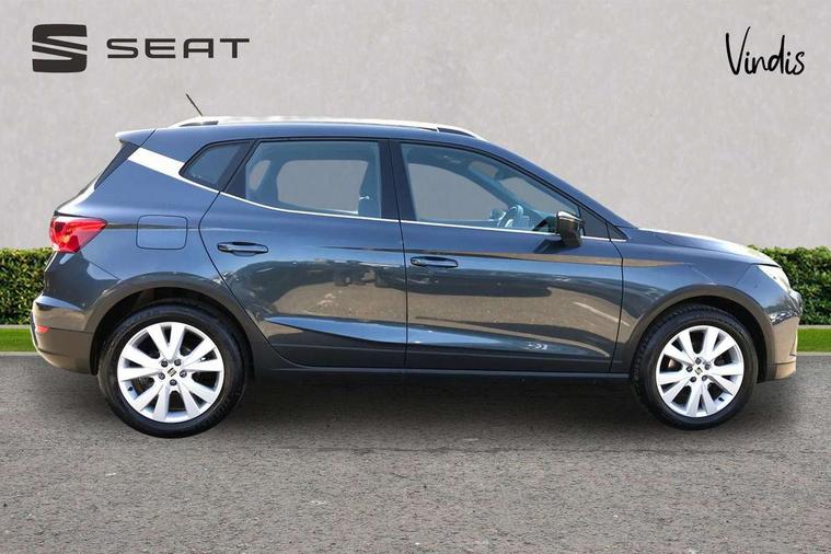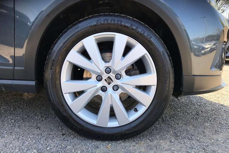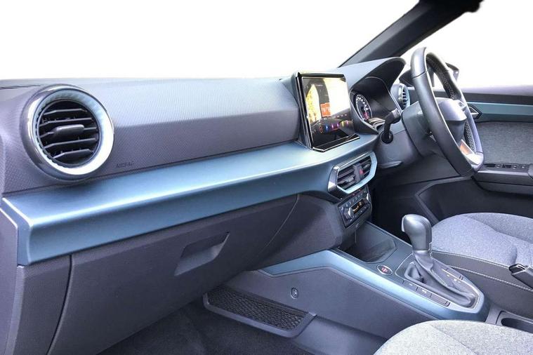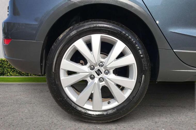 'Lights On' Reminder warning buzzer, Digital clock, Electric speed sensitive power steering, Full Link Smartphone Integration with Mirror Link, Apple Car Play, Google Android Auto with USB Type C cable for Apple and Android compatibility, Lane keeping system, Low fuel warning light, Outside temperature display, Rear parking sensor, RPM counter, Seat connect with safety, service, remote and online, Trip computer, Bluetooth interface for hands free and audio streaming, DAB digital radio and AM/FM radio, Steering wheel mounted audio controls, Anti theft roof antenna, Auto dimming interior rear view mirror, Automatic activation of hazard warning lights, Body coloured bumpers, Body coloured door handle inserts, Chrome roof rails and window surrounds, Chrome window trim, Electric front/rear windows, Electrically adjustable, heated and folding door mirrors, FULL LED automatic headlights with dynamic headlight range control, coming and leaving home, LED daytime running lights, Hidden exhaust pipe, LED rear tail lights and licence plate lights, Protective side mouldings, Rain sensing wipers, Rear spoiler, Rear window wash/wipe, Roof colour door mirrors, Visible VIN plate, Windshield wiper with intermittent control and potentiometer, 2 cupholders, 60/40 split folding rear seat, Aircare filter, Aran green Illuminated coloured air vent, Black interior roof, Cloth upholstery, Double boot floor, Driver sunvisor with covered mirror + card holder, Dual zone climate control, Flat bottomed leather steering wheel/gear knob/handbrake, Front courtesy light with 2x front and 2x rear reading lights, Front seat back storage pockets, Gear shift indicator, Height adjustable front seats, Height/reach adjustable steering column, Illuminated boot, Instrument lighting with brightness control, Interior ambient lighting, Interior light in footwell, central console and door panel, ISOFIX points in outer rear seats with top tether anchorage points, Passenger sunvisor with vanity mirror, Storage net on centre console, Two front and three rear height adjustable headrests, Connectivity pack plus - Arona, Interior chrome pack - Arona, Safety and driving pack (M) - Arona, Storage pack - Arona, 3 point seatbelts on all rear seats, ABS, Active front headrests, Child locks on rear doors, Driver and front passenger airbags with front passenger airbag de activation, front side and curtain airbags, Electronic stability control, Emergency Brake Assist (EBA) and front assist, Front and rear seatbelt reminder, Hill hold control, Multi-Collision braking, Tiredness recognition system, Traction control, Tyre pressure monitoring system, Alarm with back-up horn, Electronic engine immobiliser, KESSY Keyless entry and go, Locking wheel bolts, Remote central locking + deadlocks, Tow away protection, Titan black dashboard, 17" Dynamic alloy wheels,