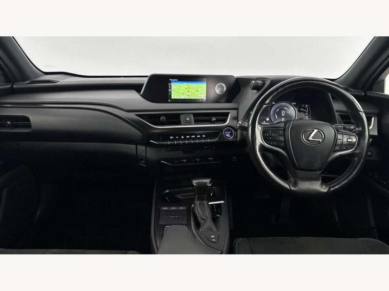4 driving modes EV/Eco/Normal/Sport, 7" Lexus media display, 7" TFT instrument cluster, Analogue clock with GPS function, Apple car play/Android Auto, Compatible mobile phone bluetooth with audio streaming, E-call, Electric power steering (EPS) with speed sensitive features, Lane change flasher function, Lexus link connected services, Lexus safety systems + includes dynamic radar cruise control, pre collision system day and night, lane tracing assist, road sign assist, Push button start, Remote touch interface, Trip computer, Vehicle Dynamics Integrated Management (VDIM), Vehicle Stability Control (VSC), 2 front USB and 2 rear USB charging points, 6 speakers, AM/FM and DAB radio, AUX socket with VTR compatibility, CD player, Acoustic windscreen, Aero stabilising arch mouldings, Aero stabilising rear lights, Aero ventilated wheels, Bi-LED (low and high beam) headlights with Auto High Beam (AHB), Black roof drip mouldings, Black wheel arches, Body adhesive, laser screw welding and laser brazed roof structure, Body coloured bumpers, Electric adjustable/heated door mirrors, Front and rear one touch power windows, with anti-jam protection, Headlight cleaners, LED daytime running lights, LED tail lights, LED third brake light, Light green UV glass, Manual control of windscreen wipers, Rear wiper, Shark fin roof aerial, Single hidden exhaust pipe, Towing preparation, Variable front intermittent wipers, 12V accessory port centre console and luggage compartment, 2 cup holders in the front and rear centre console, 2 x folding shopping bag hooks in boot, 2 x sun visors with vanity mirror and lamp, 4 x tie down hooks in the boot, 5 headrests, 6 way driver and passenger manually adjustable front seats, 60/40 split folding rear seat, Card holder installed in driver and passengers sun visors, Centre armrest with storage, Driver and passenger door pocket, Dual zone electronic climate control + Nano-E humidity sensor, Glovebox, Illuminated entry system, Leather gear lever, Leather steering wheel, LED interior illumination, Map pockets in the rear of passenger's front seat, Premium fabric upholstery, Rear air vents with 2 USB chargers, Rear armrest with 2 cupholders, Storage tray under audio panel, Textile carpet mats, Tilt/reach adjustable steering column, Under deck storage, Under desk side storage, 2 x Isofix child rear seat restraints, 3x3 point rear seatbelts, Anti-lock braking system (ABS), BAS (Brake Assist System), Driver and front passenger 2 stage airbag, Driver and front passenger knee airbag, Driver/front passenger side airbags, EBD - Electronic brakeforce distribution, ECB (Electronically Controlled Brake System), Electric parking brake, Front adjustable seatbelt anchor points, Front and rear curtain shield airbags, Front outer seatbelt+pre-tensioners, force limiter+tension reduction: 3-point with active safety link to PCS, Hill start assist control (HAC), Passenger airbag cut-off device, Rear outer seatbelt+pre-tensioners, force limiter+tension reduction: 3-point with active safety link to PCS, Centre belt w/o pre tensioner+force limiter, Secondary Collision Brake (SCB), TRC (Traction Control), Tyre pressure warning, 2 x remote key fobs, Anti theft system : Alarm instruction sensor, glass breakage sensor and engine immobiliser, Locking wheel nuts, Remote central door locking, Speed sensitive auto door locking, Two motion door lock with double lock, VIN Window etching, 17" Alloy wheels, Tyre repair kit,