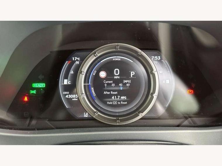 4 driving modes EV/Eco/Normal/Sport, 7" Lexus media display, 8" LFA inspired TFT meters with movable meter ring, Analogue clock with GPS function, Apple car play/Android Auto, Compatible mobile phone bluetooth with audio streaming, E-call, Electric power steering (EPS) with speed sensitive features, Front and rear parking sensor with intelligent clearance sonar, Lane change flasher function, Lexus link connected services, Lexus navigation system, Lexus safety systems + includes dynamic radar cruise control, pre collision system day and night, lane tracing assist, road sign assist, Push button start, Remote touch interface, Reversing camera with back guide lines, Trip computer, F Sport suspension tuning and rear performance dampers, Vehicle Dynamics Integrated Management (VDIM), Vehicle Stability Control (VSC), 2 front USB and 2 rear USB charging points, 6 speakers, AM/FM and DAB radio, AUX socket with VTR compatibility, CD player, Acoustic windscreen, Aero stabilising arch mouldings, Aero stabilising rear lights, Aero ventilated wheels, Aluminium roof rails, Auto dimming interior rear view mirror, Bi-LED (low and high beam) headlights with Auto High Beam (AHB), Black roof drip mouldings, Body adhesive, laser screw welding and laser brazed roof structure, Body coloured bumpers, Colour coded wheel arches, Electric adjustable/heated door mirrors, F SPORT exterior styling consists of black Mesh front grille, enhanced side rockers, metallic coated front bumper and F SPORT badging, Front and rear one touch power windows, with anti-jam protection, Headlight cleaners, LED cornering headlights, LED daytime running lights, LED front and rear fog lights, LED tail lights, LED third brake light, Privacy glass, rear doors and tailgate, Rain sensor windscreen wipers, Rear side wing doors, Rear wiper, Shark fin roof aerial, Single hidden exhaust pipe, Towing preparation, Variable front intermittent wipers, 12V accessory port centre console and luggage compartment, 2 cup holders in the front and rear centre console, 2 way electrical lumbar adjustment for driver, 2 x folding shopping bag hooks in boot, 2 x sun visors with vanity mirror and lamp, 3 seat bench in 2nd row, 4 x tie down hooks in the boot, 5 headrests, 60/40 split folding rear seat, 8 way driver/passenger electrically adjustable front seats, Active sound control, Card holder installed in driver and passengers sun visors, Centre armrest with storage, Driver and passenger door pocket, Dual zone electronic climate control + Nano-E humidity sensor, F Sport aluminium sports pedals, F SPORT dimpled leather gear lever, F SPORT front seat headrest adjustable forwards and backwards, F Sport interior styling, F Sport leather steering wheel with paddle shifts, Fabric/Tahara leather upholstery, Glovebox, Heated steering wheel, Illuminated entry system, LED interior illumination, Map pockets in the rear of passenger's front seat, Rear air vents with 2 USB chargers, Rear armrest with 2 cupholders, Single front passenger seat, Storage tray under audio panel, Textile carpet mats, Tilt/reach adjustable steering column, Under deck storage, Under desk side storage, 2 x Isofix child rear seat restraints, 3x3 point rear seatbelts, Anti-lock braking system (ABS), BAS (Brake Assist System), Driver and front passenger 2 stage airbag, Driver and front passenger knee airbag, Driver/front passenger side airbags, EBD - Electronic brakeforce distribution, ECB (Electronically Controlled Brake System), Electric child locks, Electric parking brake, Front adjustable seatbelt anchor points, Front and rear curtain shield airbags, Front outer seatbelt+pre-tensioners, force limiter+tension reduction: 3-point with active safety link to PCS, Hill start assist control (HAC), Passenger airbag cut-off device, Rear outer seatbelt+pre-tensioners, force limiter+tension reduction: 3-point with active safety link to PCS, Centre belt w/o pre tensioner+force limiter, Secondary Collision Brake (SCB), TRC (Traction Control), Tyre pressure warning, 2 x remote key fobs, Anti theft system : Alarm instruction sensor, glass breakage sensor and engine immobiliser, Locking wheel nuts, Remote central door locking, Speed sensitive auto door locking, Two motion door lock with double lock, VIN Window etching, 18" F Sport alloy wheels with run flat tyres,