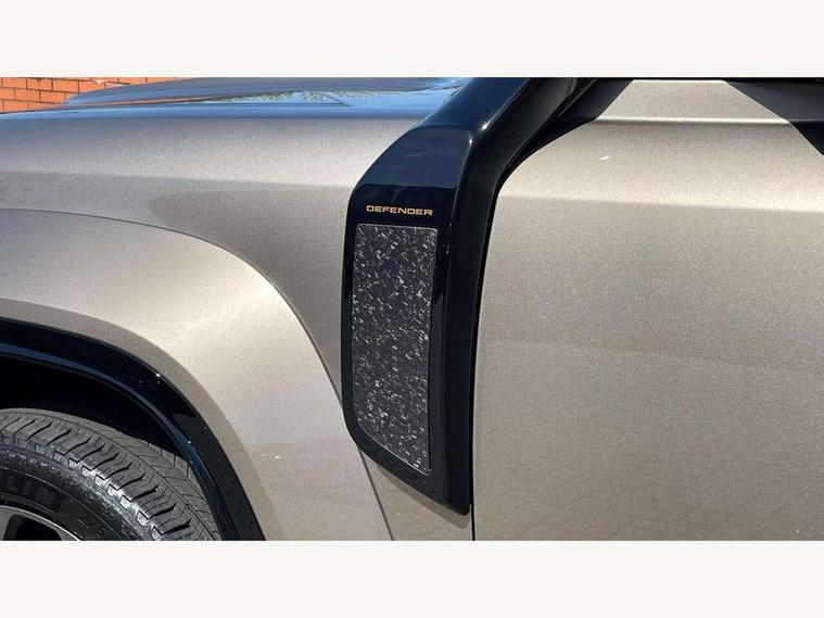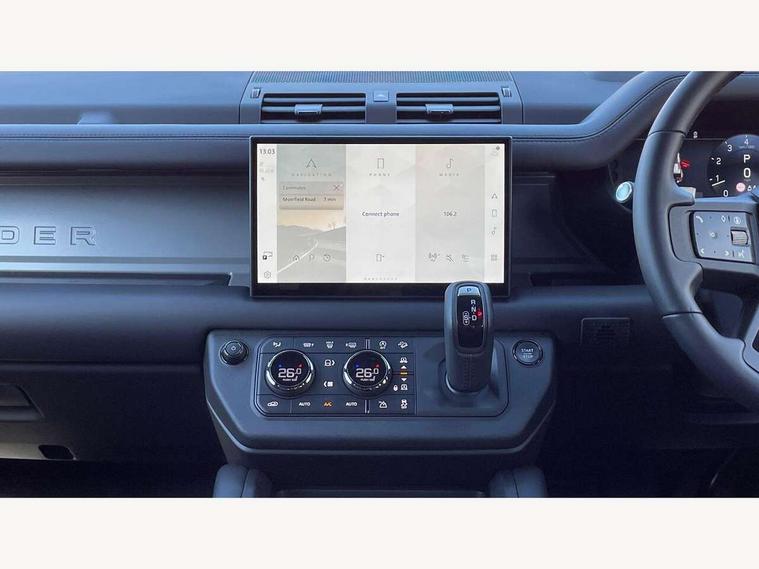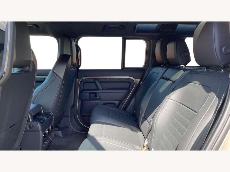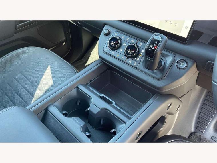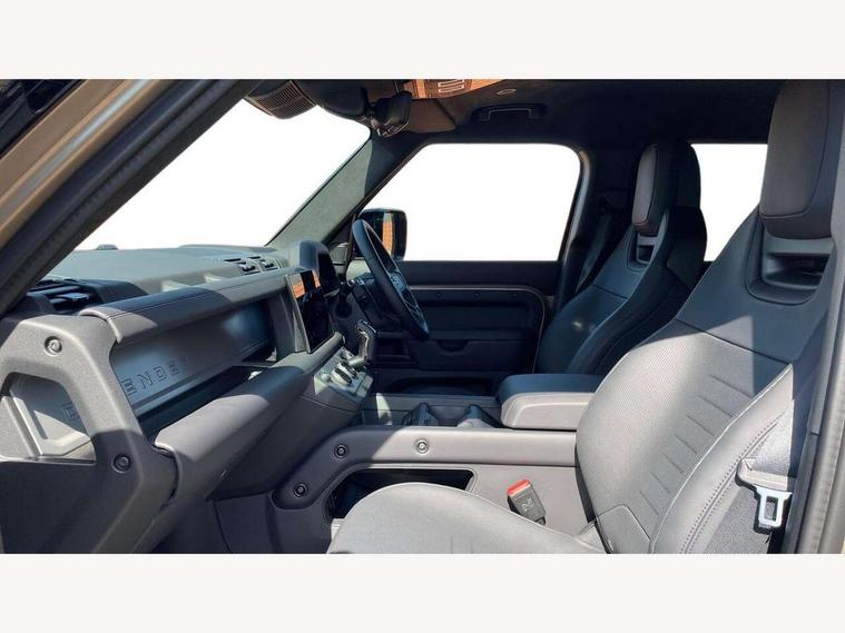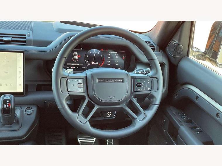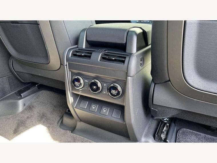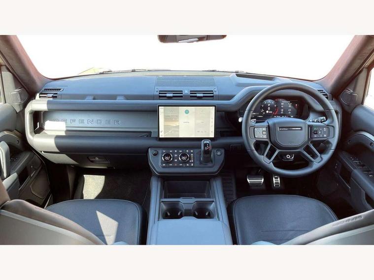 1 x USB-C (power only) & 1 x USB-C (power & data) in Row 1, 2 x USB-C in Row 2, 11.4" touchscreen, 360 degree parking aid, 3D Surround Camera with 360 View, 180 Rear View, Front Traffic Detection, Forward Vehicle Guidance, Tow Hitch Assist and clear sight Ground View, Adaptive cruise control, Android Auto, Apple CarPlay, Blind spot assist, Bluetooth system, Brake pad wear indicator, Clear exit monitor, Configurable programs, Connected navigation pro, Driver condition monitor, Electric power assisted steering (EPAS), Garage door opener (Homelink), Head up Display, Interactive driver display, Lane keep assist, Push button start, Rear collision monitor, Rear traffic monitor, Traffic sign recognition with adaptive speed limiter, Trip computer, Wade Sensing, Wireless device charging, 6D Dynamics, 8 speed automatic transmission, All terrain progress control, All wheel drive system, Electronic active differential with brake torque vectoring, Terrain Response 2 with dynamic program, Twin speed transfer box, DAB Radio (Digital Audio Broadcasting), Meridian 700w surround sound audio system with 15 speakers, Pivi pro connected, Advanced tow assist, Automatic headlight levelling, Automatic headlights, Black contrast roof, Black contrast tail door, ClearSight interior rear view mirror, Darkened LED tail lights, Electric heated/power fold door mirrors with approach lights and auto dimming driver side, Electric windows with one touch open/close and anti-trap, Follow me home lighting, Front fog lights, Graphite front undershield, Headlamp power wash, Heated rear window with timer, Heated washer jets, Heated windscreen, Illuminated metal treadplates with brand name script, LED 3rd brake light, Matrix LED headlights with signature DRL, Octa badge, Phosphor bronze exposed rear recovery eyes, Privacy glass, Puddle lights, Rain sensing windscreen wipers, Rear fog lights, Rear side wing doors, Rear wiper, Satin black exhaust finisher, Side hinged tailgate, Signature graphic (with interior storage), Sliding panoramic roof, Solar attenuating windscreen, Trailer stability assist, 12V power socket in loadspace, 14 way heated and cooled electric memory performance front seats, 3 seat bench in 2nd row, 40:20:40 folding, heated rear seats with centre armrest, Air quality sensor, Alpine lights, Body and soul seat, Bright metal pedals, Cabin Air Purification plus, Configurable cabin lighting, Domestic plug socket, Durable rubber cabin flooring, Durable rubber loadspace flooring, Edge illuminated paddle shifters, Electric cabin pre conditioning, Electric reach + rake adjustable steering column, Electrically adjustable steering column, Footwell lights, Front centre console refrigerator compartment, Front head restraints, Front passenger isofix child seat attachment, Heated steering wheel, Loadspace cover, Loadspace Hook, Multifunction steering wheel, No flat load floor storage, Overhead stowage for sunglasses, Rear headrests, Rear ISOFIX, Rear reading lights, Signature carpet mats, Signature interior upgrade, Single front passenger seat, Soft close tail door, Standard seat configuration, Storage glovebox, Sunvisors with illuminated vanity mirrors, Three-zone Climate Control with Rear Cooling Assist, Twin front cupholders, Non-smoker package, Online pack with data plan - Defender, Satin moonlight exterior pack - Defender, 5 x 3 point seatbelts, ABS, Black brake calipers, Brake hold function, Cornering brake control (CBC), Cross car beam in metallic grey powder coat brushed finish, Customer configurable autolock, Driver and passenger airbags, DSC - Dynamic Stability Control, EBD - Electronic brakeforce distribution, Electric parking brake (EPB), Emergency brake assist, Emergency braking, ESP + traction control, Front airbags with passenger seat occupant detector, HDC - Hill descent control, Hill launch assist, Low traction launch, Power operated child locks, Remote for (e-Call, Optimised assistance call, InControl app, Climate, beep and flash and door), RSC - Roll stability control, Seat belt reminder, TPMS (Tyre pressure monitoring system), Alarm, Immobiliser, Intrusion sensor, Keyless entry, Locking wheel nuts, Secure tracker pro,