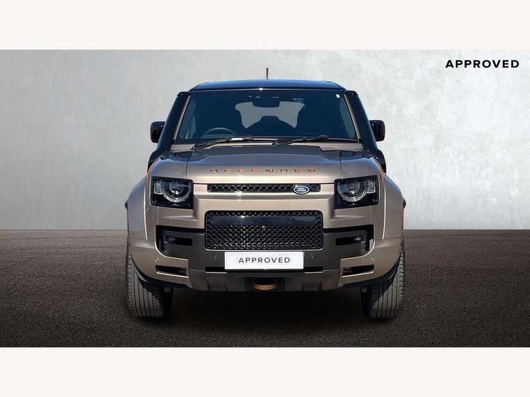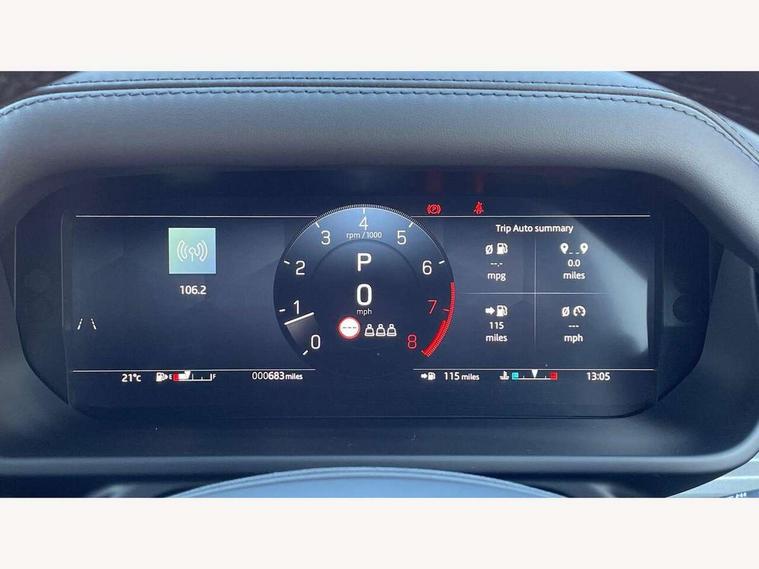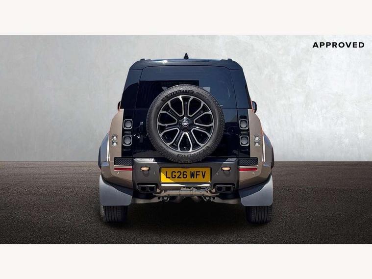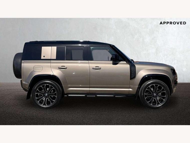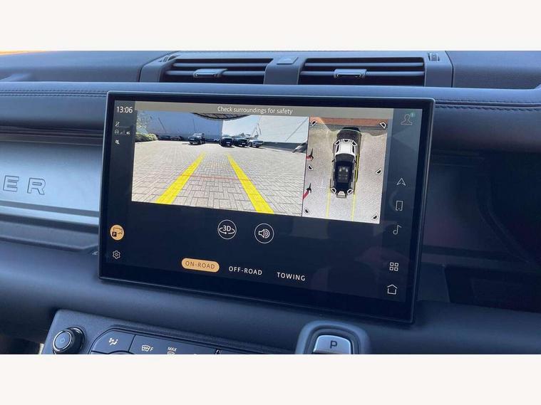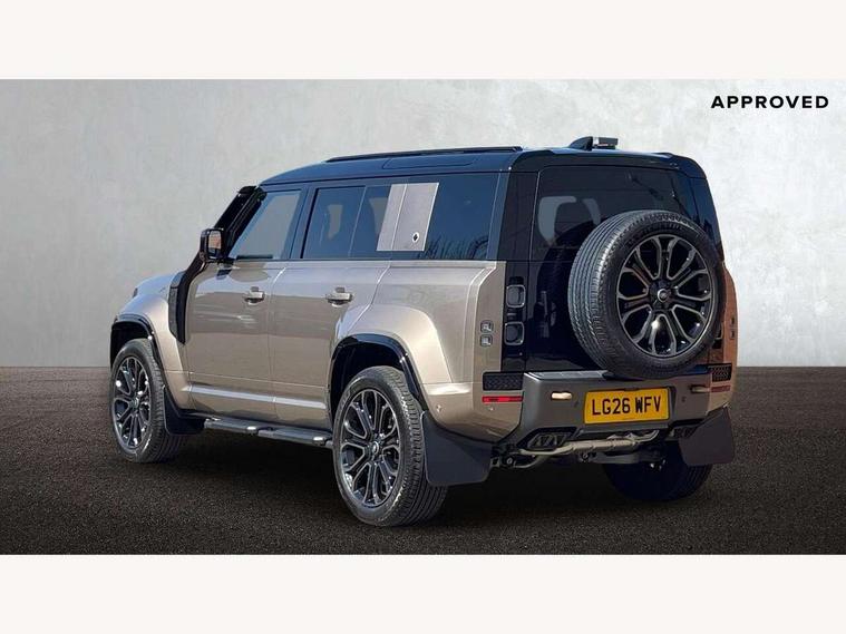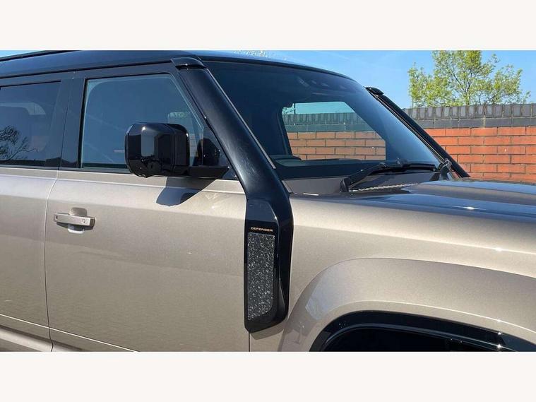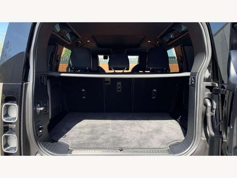 1 x USB-C (power only) & 1 x USB-C (power & data) in Row 1, 2 x USB-C in Row 2, 11.4" touchscreen, 360 degree parking aid, 3D Surround Camera with 360 View, 180 Rear View, Front Traffic Detection, Forward Vehicle Guidance, Tow Hitch Assist and clear sight Ground View, Adaptive cruise control, Android Auto, Apple CarPlay, Blind spot assist, Bluetooth system, Brake pad wear indicator, Clear exit monitor, Configurable programs, Connected navigation pro, Driver condition monitor, Electric power assisted steering (EPAS), Garage door opener (Homelink), Head up Display, Interactive driver display, Lane keep assist, Push button start, Rear collision monitor, Rear traffic monitor, Traffic sign recognition with adaptive speed limiter, Trip computer, Wade Sensing, Wireless device charging, 6D Dynamics, 8 speed automatic transmission, All terrain progress control, All wheel drive system, Electronic active differential with brake torque vectoring, Terrain Response 2 with dynamic program, Twin speed transfer box, DAB Radio (Digital Audio Broadcasting), Meridian 700w surround sound audio system with 15 speakers, Pivi pro connected, Advanced tow assist, Automatic headlight levelling, Automatic headlights, Black contrast roof, Black contrast tail door, ClearSight interior rear view mirror, Darkened LED tail lights, Electric heated/power fold door mirrors with approach lights and auto dimming driver side, Electric windows with one touch open/close and anti-trap, Follow me home lighting, Front fog lights, Graphite front undershield, Headlamp power wash, Heated rear window with timer, Heated washer jets, Heated windscreen, Illuminated metal treadplates with brand name script, LED 3rd brake light, Matrix LED headlights with signature DRL, Octa badge, Phosphor bronze exposed rear recovery eyes, Privacy glass, Puddle lights, Rain sensing windscreen wipers, Rear fog lights, Rear side wing doors, Rear wiper, Satin black exhaust finisher, Side hinged tailgate, Signature graphic (with interior storage), Sliding panoramic roof, Solar attenuating windscreen, Trailer stability assist, 12V power socket in loadspace, 14 way heated and cooled electric memory performance front seats, 3 seat bench in 2nd row, 40:20:40 folding, heated rear seats with centre armrest, Air quality sensor, Alpine lights, Body and soul seat, Bright metal pedals, Cabin Air Purification plus, Configurable cabin lighting, Domestic plug socket, Durable rubber cabin flooring, Durable rubber loadspace flooring, Edge illuminated paddle shifters, Electric cabin pre conditioning, Electric reach + rake adjustable steering column, Electrically adjustable steering column, Footwell lights, Front centre console refrigerator compartment, Front head restraints, Front passenger isofix child seat attachment, Heated steering wheel, Loadspace cover, Loadspace Hook, Multifunction steering wheel, No flat load floor storage, Overhead stowage for sunglasses, Rear headrests, Rear ISOFIX, Rear reading lights, Signature carpet mats, Signature interior upgrade, Single front passenger seat, Soft close tail door, Standard seat configuration, Storage glovebox, Sunvisors with illuminated vanity mirrors, Three-zone Climate Control with Rear Cooling Assist, Twin front cupholders, Non-smoker package, Online pack with data plan - Defender, Satin moonlight exterior pack - Defender, 5 x 3 point seatbelts, ABS, Black brake calipers, Brake hold function, Cornering brake control (CBC), Cross car beam in metallic grey powder coat brushed finish, Customer configurable autolock, Driver and passenger airbags, DSC - Dynamic Stability Control, EBD - Electronic brakeforce distribution, Electric parking brake (EPB), Emergency brake assist, Emergency braking, ESP + traction control, Front airbags with passenger seat occupant detector, HDC - Hill descent control, Hill launch assist, Low traction launch, Power operated child locks, Remote for (e-Call, Optimised assistance call, InControl app, Climate, beep and flash and door), RSC - Roll stability control, Seat belt reminder, TPMS (Tyre pressure monitoring system), Alarm, Immobiliser, Intrusion sensor, Keyless entry, Locking wheel nuts, Secure tracker pro,