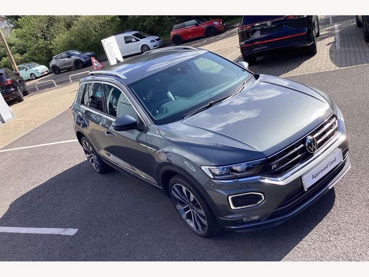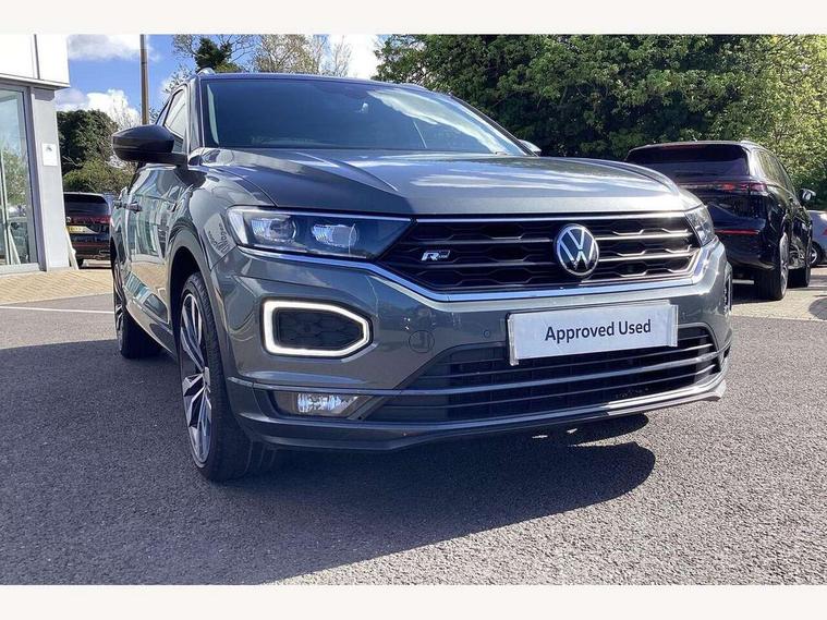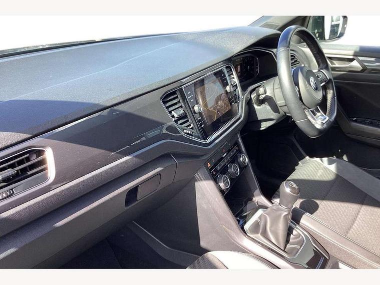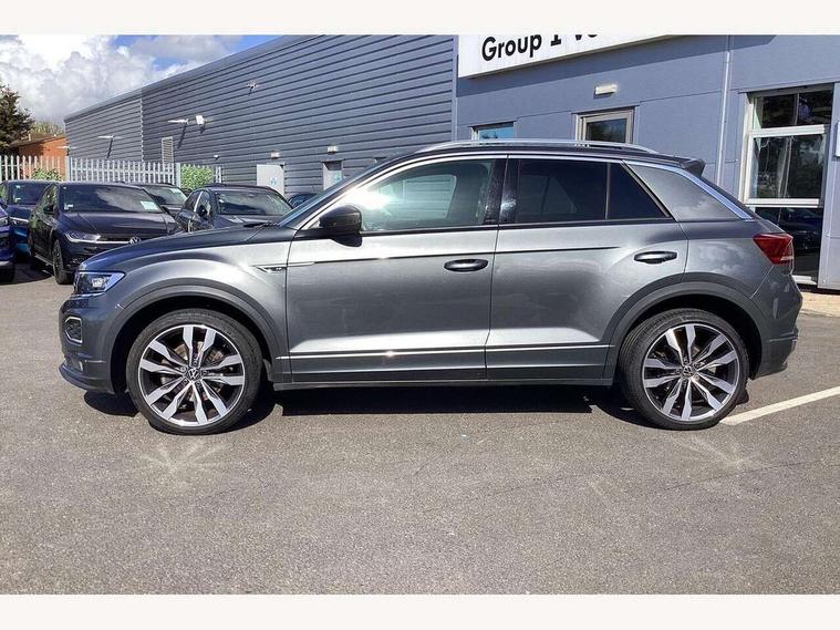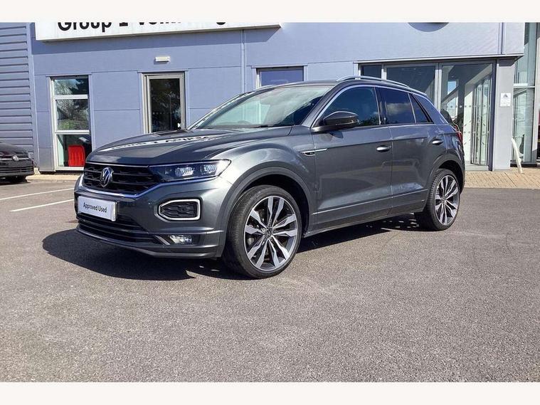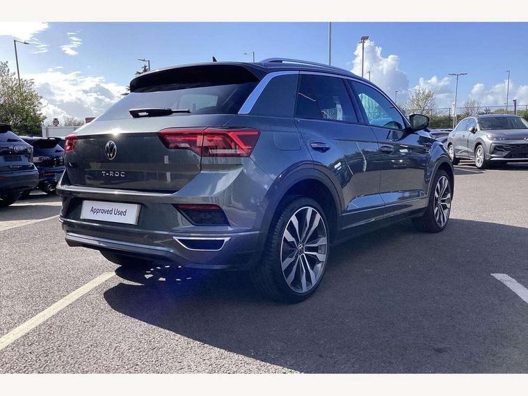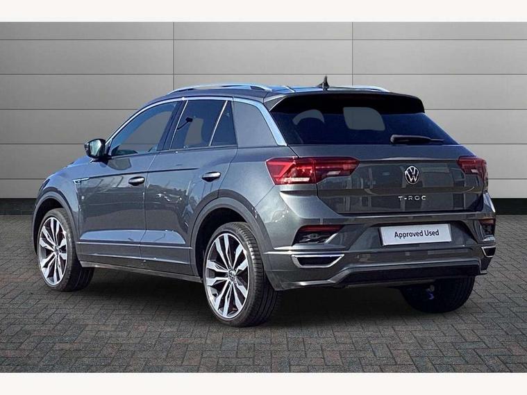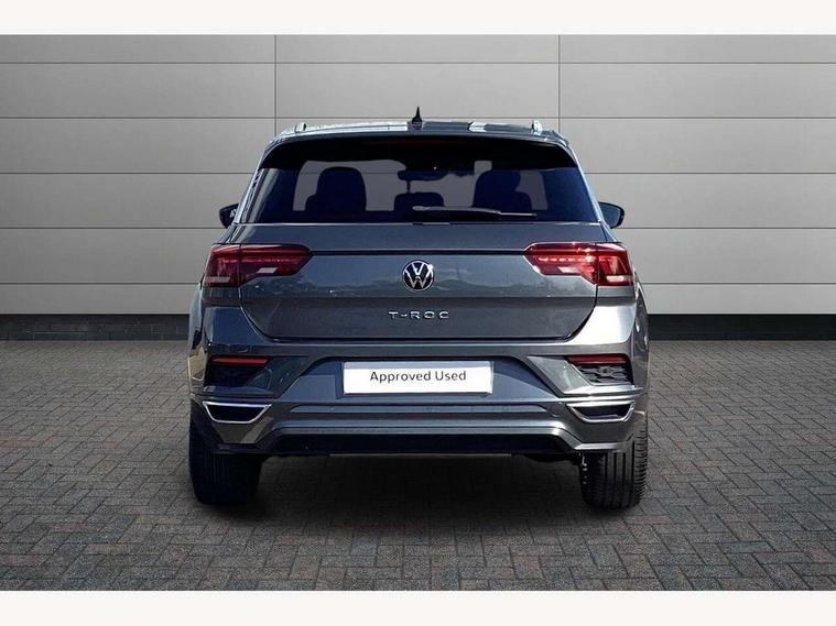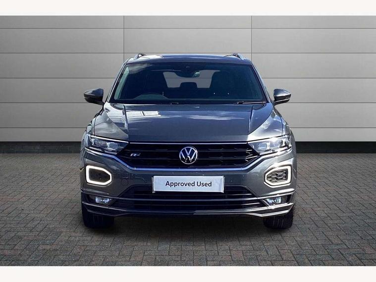 'Lights On' Reminder warning buzzer, Adaptive cruise control, Bluetooth telephone and audio connection for compatible devices, Car information display, Digital Cockpit Pro - Active info display, Driver alert system with audible and visual fatigue detection system, Driver tips and journey analysis, Dusk sensor, Emergency call service, Lane assist with warning text instrument cluster, Modified key software - reduce switch off time for key status change to Long no motion, Multifunction camera, Multifunction computer with visual gear change recommendation for fuel consumption, Navigation system discover media including streaming and internet, Service interval indicator, Think blue trainer driver tips and journey analysis, Traffic sign recognition, Voice activation, Warning sound and light for front seatbelts unfastened, Wireless app connect for apple carPlay, Battery regeneration during braking, Rear shock absorption for sports version, Start/stop function with battery regeneration, DAB Digital radio, Disk brakes in front, Diversity antenna for FM reception, Music playback - MP3, WMA and AAC files, Premium USB cable in choice of either Apple or Android smartphone compatibility, SD card slot, Simultaneous pairing of 2 compatible mobile devices, SMS functionality - read, compose and send SMS messages using touch-screen display, Storage compartment with longitudinal and height adjustable in armrest and two rear air vents, Three route options - Fast, Short, Eco, Title and cover art display, USB-C Interface and USB charging socket, Auto dimming interior rear view mirror, Automatic coming/leaving home lighting function and daytime running lights, Automatic hazard lights activation under emergency braking, Black grained lower door protectors, Body colored door lower parts, Body colour door handles, Body colour rear roof spoiler, Chrome effect left and right trapezoid exhaust tailpipe fascia surround, Chrome plated moldings, Chrome plated radiator grille inserts, air vent surrounds and light switch surrounds, Chrome trim on upper and lower radiator grille, Dynamic headlight range control with self adjusting whilst driving, Electrically foldable, adjustable and heated door mirrors with puddle lights and reverse activated kerb-view adjustment on passenger's door mirror, External USB type C socket and charging sockets, Front and rear electric windows, Front fog lights with static cornering function, Front windscreen wiper with intermittent wipe and 4 position delay, Fully galvanised body, Heated rear window, Heated windscreen washer jets, High level 3rd brake light, LED darkened rear light clusters, LED headlamps with automatic range adjustment and unique signature LED separate daytime running lights, LED rear number plate lights, LED tail lamp rear comination lamps, Privacy glass, R-Line design body coloured bumpers, Rain sensor, Rear tinted glass from B-pillar backwards approx 65% tinted, Rear wash/wipe with intermittent wipe setting, Silver anodised roof rails, Volkswagen roundel, 12V socket in centre console storage area, 3 rear head restraints, 4 load lashing points in luggage compartment, Aluminium pedals, Black roof lining and sun visors, Branded points of interest, Carbon flag cloth upholstery, Climate control - 2 zone electronic air conditioning with automatic air recirculation and allergy filter, Door and side trim panel, Door and side trim panel in foam film, insert in leatherette, Drawer under drivers seat, Front + rear carpet mats, Front centre armrest, Front cupholders x 2, Front seat back storage pockets, Front sports seats with R-Line logo on seat backrest, Glovebox, Heated front seats, Height adjustable front seats, Height/reach adjust steering wheel, Instrument lighting, white adjustable panel illumination, Interior light delay, Interior light in footwell, Isofix easy fit child seat preparation for 2 outer rear seats, LED interior light with switch off delay/dimmer and 2 front/rear LED reading lights, Load through provision with single cup holder when folded down, Luggage compartment cover, removable, Luggage compartment lighting, R Line badge, Scuff plates in door apertures, Split folding rear seat backrests with centre armrest, Stainless steel pedals, Storage compartment in left and right luggage area, Storage compartment in rear doors, Storage compartments in driver and front passenger doors, Sunvisors with illuminated vanity mirrors, Three spoke multi-function leather trimmed steering wheel and gearknob, Unique R Line door sill protectors, White ambient lighting, R line styling pack - T-Roc, Winter pack - T-Roc, 3 rear three point seatbelts, ABS, Curtain airbags, Driver and front passenger safety-optimised head restraints, Drivers and front passengers airbags with passengers deactivation switch, Drivers seatbelt reminder, Electronic parking brake with auto hold, Electronic stability control (ESC) includes ASR, EDL, EDTC and trailer stabilisation function, Front assist with city emergency braking and pedestrian monitoring, Front seat side impact airbags, Hill start assist, Predictive pedestrian protection, Rigid safety cell with front and rear crumple zones, Single tone horn, Three point height adjust front seatbelts + pretensioners, Tyre pressure loss indicator, Ventilated front and rear disc brakes, Volkswagen roadside assistance, Alarm with remote central locking and interior protection, Electronic engine immobiliser, Remote central locking with SAFELOCK, radio remote control with 2 remote control folding keys, Shadow grey decorative inserts in dash, centre console and door panel, 19" Suzuka alloy wheels with low rolling resistance tyres and anti wheel bolts,