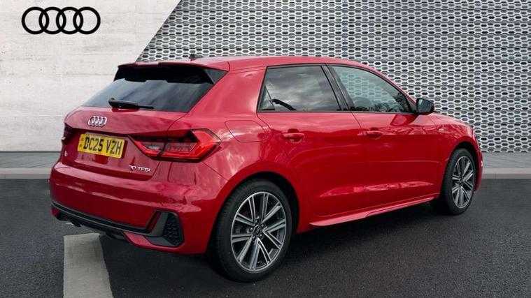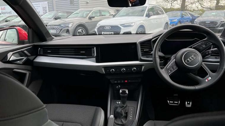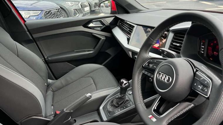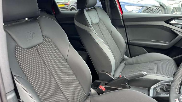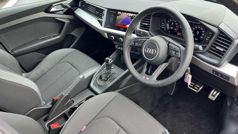 10.25" Digital instrument cluster display classis style instrument dials + speed, odometer, time, outside temperature, telephone menu + fuel level warning, Advanced driver attention and drowsiness monitor, Audi connect emergency call and service, Audi drive select, Audi remote connect and control, Audi smartphone interface, Bluetooth interface, Camera based traffic sign recognition, Cruise control, Driver's information system, Electromechanical power steering, Lane departure warning system, Rear parking sensor, Service interval indicator, Speed limiter, Start stop system with recuperation, Voice control system, Washer fluid level indicator, Sports suspension, 2 x USB type C connection points, 6 loudspeakers, DAB Digital radio, MMI radio plus with 10.1" colour MMI display screen and MMI touch, Auto dimming rear view mirror, Body coloured door mirrors, Door sill trims with aluminium inlays and S line logo in front, Electric front and rear windows, Electrically adjustable, heated, folding door mirrors with integrated LED side indicator, Front side air inlets in grained matt black and C frame in anthracite black, Headlight cleaning system, Heat insulating glass windscreen and side windows, Heated rear windscreen, High level LED brake light, LED daytime running lights, LED headlights with range control LED rear lights + dynamic rear indicators, Light and rain sensors, Privacy glass, Radiator grille and rear diffuser in matt anthracite black, Radiator protective grille frame in matt aluminium silver, Rear fog lights, Rear side wing doors, Rear wiper, S line badges on front wings, Side front spoiler lips in grained matt black, 12V socket in centre console with two cup holders, 3 rear seats with headrests, 3 seat bench in 2nd row, 3 spoke leather multi-function plus steering wheel features S badging and grips in perforated leather with contrast stitching, 40:60 Split folding rear seat or fully collapsed, Black cloth headlining, Front and rear velour black floor mats with contrast stitching in fine silver, Front head restraints, Front passenger seat, Height and reach adjustable steering wheel, Interior lighting includes roof module, front and rear reading lights and right luggage compartment lighting, ISOFIX child seat mounting for front passenger and outer rear seats including top tether attachment point of outer rear seats, Leather gear knob with aluminium trim, Leather handbrake grip, Manual air conditioning, Manual height adjustable for driver and front passenger seat, Manually adjustable lumbar support in front seats, Stainless steel pedals, Ambient lighting package - A1, Luggage compartment pack - A1, S line exterior styling pack - A1 Sportback, 3x3 point rear seatbelts, Audi pre-sense front with pedestrain and cyclist recognition, Brake assist function, Driver and front passenger airbag with front side and head airbags, Electronic Stability Control including ABS, EBD, ASR and EDL, Front passenger airbag deactivation switch, Hill hold assist, Manual rear child locks, Seatbelt height adjustment for front seats, Seatbelt monitoring, Tyre pressure loss indicator, Warning triangle and first aid kit, Anti theft alarm, Anti theft wheel bolts, Immobiliser, Remote control key with safelock, Aluminium trim for control switches, air vents and digital instrument cluster, Black dashboard, Silver grey inlays polygon structure in diamond paint finish, Structured grey accent surfaces insert of air vents, interior door handle recesses and centre console in quartz paint finish,