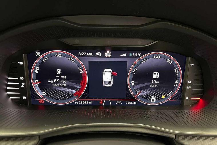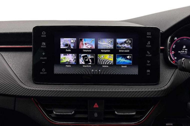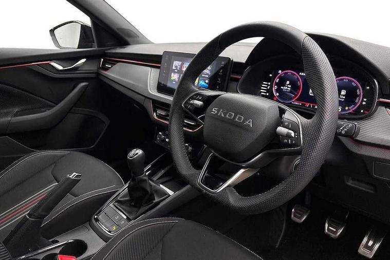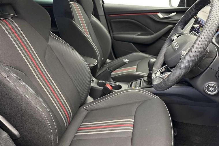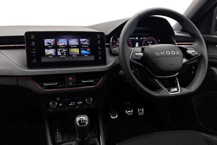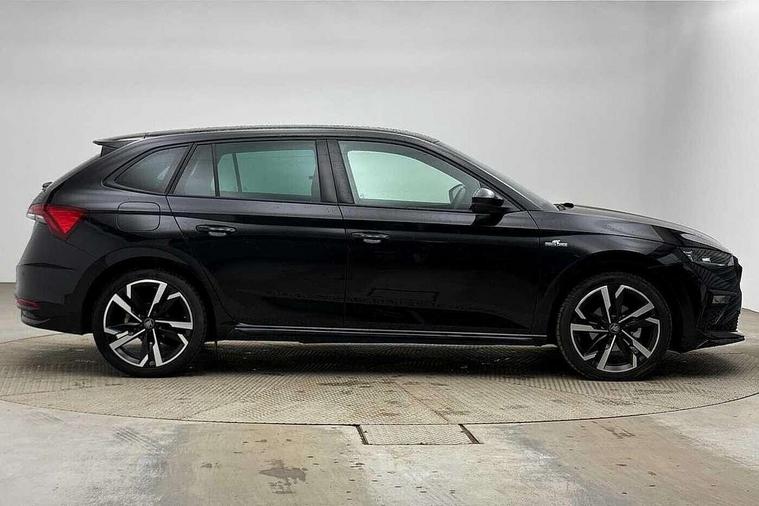 Advanced driver attention and drowsiness monitor, Bluetooth, e-Call (emergency call), Front assist system, PAS, Rear parking sensors, Rear view camera, Speed limiter, Tailgate, Traffic sign recognition, Virtual Cockpit - 10.25" digital display, Voice control system, Wireless smartlink, Drive mode select with Sport Chassis Control and ECO mode, 4 USB C ports, 8 Speakers, 9.2" Skoda navigation display, DAB radio, Auto dimming rear view mirror, Automatic headlight control with manual coming and leaving home feature, Automatic intermittent wipers, Black door mirrors, Black lettering on boot lid, Black radiator grille, Black rear diffuser, Black roof spoiler, Black window frames, Body colour bumpers, Body colour door handles, Extended tailgate glass, Front and rear electric windows, Heated rear window, LED 3rd brake light, LED daytime running lights, LED high beam, LED low beam, Light sensors, Monte carlo plaque, Panoramic glass roof, Privacy glass, Rear LED fog light, Rear side wing doors, Rear wiper, Tinted windows, Unique dark chrome design logo on alloy wheels, 12V socket in luggage compartment, 3 seat bench in 2nd row, Aluminium pedals, Ambient lighting in white/red, Black / White armrest stitching, Black roof headlining, Cargo elements, Chrome inner door handles, Door inserts in art.leather carbon, Driver and passenger sun visors with vanity mirror, Dual zone climate control, Front and rear roof lights, Front centre armrest, Front head restraints, Height adjustable driver seat, Height adjustable passenger seat, Ice scraper, Illuminated glove compartment, Inner circulation control with pollen filter, ISOFIX for front passenger seat, Isofix preparation for back seats, Leather gearknob and handbrake lever, Luggage net under rear parcel shelf, Manual lumbar support for front seats, Monte Carlo cloth upholstery, Net package and top tether hooks in boot space, Pocket on the back of both front seats, incl. mobile phone pockets, Rear centre armrest, Red hotstamping, Single front passenger seat, Skoda lettering on steering wheel, Sport seats, Textile floor mats, Third rear headrest, Ticket holder, Top tether for front passenger seat, Umbrella in driver's door, Light and view plus pack - Scala, 3x3 point rear seatbelts, ABS, Child locks, Curtain airbags and front side airbags, Disc brakes, Driver and front passenger airbags, ESP, Hill hold control, Manual leather parking brake, One tone horn, Passenger airbag switch off function, Seatbelt reminder for driver and front passenger, Tyre pressure monitoring system, Anti theft alarm system with interior monitoring, backup horn and towing protection, Anti-theft wheel bolts, Remote central locking with 2 remote folding keys, SAFE function for remote central locking, Carbon effect decorative inserts, 18" Ursa black diamond cut alloy wheels,
