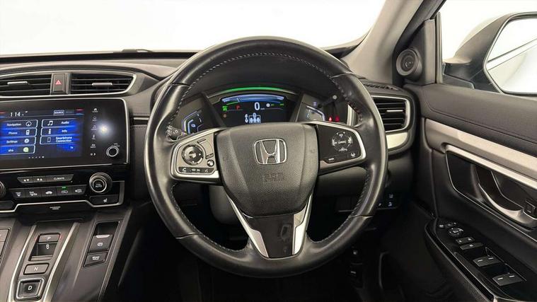 Adaptive cruise control, Agile handling assist, BLIS (Blind Spot Information System) with dual power heated blind spot mirrors, Bluetooth hands free telephone connection, E-call, Economy mode, Electric power steering, Emergency stop signalling system, Forward collision warning, Front parking sensors, Honda CONNECT with GARMIN Navigation + 7" touchscreen, DAB radio, Apple CarPlay, Android Auto, Aha app integration and internet browsing, Intelligent multi info display, Lane departure warning system, Lane keep assist system, Low speed following, Rear parking sensors, Rear view camera, Road departure mitigation, Speed limiter, Traffic sign recognition, Vehicle stability assist, 2 USB sockets in rear, 2x USB sockets in front, 9 speakers, DAB Digital radio, Dashboard centre speaker, Front tweeters, Steering wheel mounted controls, Subwoofer, Aspheric door mirrors, Auto dimming rear view mirror, Automatic headlights with dusk sensor, Body colour bumpers, Body colour door handles, Cornering light, Door mirrors tilt when reversing, Electric front windows/one touch facility, Electric rear windows + one touch facility, Electrically adjustable and heated door mirrors, Electrically retractable door mirrors, Front windscreen de-icer, High beam assist, LED daytime running lights, LED front fog lights, LED Headlights, LED rear lights, Rain sensor, Rear privacy glass, Rear side wing doors, Rear wiper, Roof rails, Shark fin roof aerial, Tailgate spoiler, Third brake light, Welcome home function, 3 seat bench in 2nd row, 60/40 split folding rear seat, Accessory sockets, Ambient interior lighting, AWD emblem rear, Cargo hooks, Courtesy lights, Driver's electric adjustable lumbar support, Driver/passenger front seatback pockets, Driver/passenger sunvisors with illuminated vanity mirrors, Dual zone automatic climate control, Electric lumbar adjustment on passenger's seat, Footwell ambient lighting, Front centre armrest, Front map lights, Front passenger seat height adjust, Heated front seats, Height adjustable driver's seat, Hybrid emblem, Illuminated glovebox, Instrument panel with garnish wood film, Isofix child seat preparation, Leather steering wheel, Leather upholstery, Paddle shift controls, Rear air vents, Rear centre armrest, Rear headrests, Rear reading lights, Rear seat conversation mirror, Silver interior door handles, Single front passenger seat, Sunglasses holder with mirror, Tilt/telescopic adjustable steering wheel, Tonneau cover, Trunk light, 5 x 3 point seatbelts, ABS/EBD, Anti-whiplash front headrests, Brake assist function, Collision mitigation braking system, Deflation detection system, Driver airbag, Electronic parking brake with auto hold, Front and rear curtain airbags, Front and rear seat belts with emergency locking retractor (ELR), Front side airbags, Hill start assist, Manual child lock in rear doors, Passenger airbag deactivate switch, Honda super locks, Immobiliser, Security alarm, Smart entry + Smart start, Ultrasonic security sensor, Tyre repair kit,