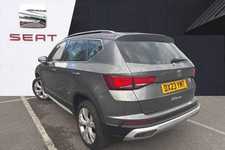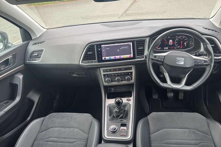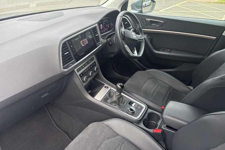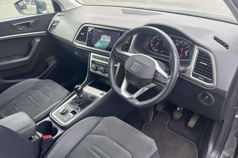8" Digital cockpit, Colour multi-function on board computer display, E-call, Outside temperature gauge, Progressive power assisted steering, Rear view camera, SEAT drive profile with driving experience button - Normal, Sport, Eco and Individual mode, steering and throttle response, Self parking functionality (includes front and rear parking sensors), Start/stop system, Tailgate, Trip computer, Wireless full link smartphone integration, Wireless phone charger, Steering wheel mounted audio/phone controls, Black simulated exhaust pipes, Black wheel arch surrounds, Body colour bumpers, Chrome front grille frame, Chrome roof rails, Chrome side window trim, Dark tinted rear windows, Daytime running lights, Door mirrors with welcome light silhouette, Dynamic headlight range control with self adjusting whilst driving, Electric adjustable/heated/folding door mirrors, Front and rear electric windows, Front grille hot stamping, Full LED headlamps with lens and LED front fog lamps with cornering function, Illuminated aluminium front door sill, LED rear tail lights with dynamic indicators, Rear fog lights, Rear side wing doors, Rear wash/wipe, Reflex silver side mouldings, Variable front intermittent wipers, 12V socket in front, 3 seat bench in 2nd row, 60/40 split folding rear seat, Drawer under right front seat, Dual zone climate control, Front and rear head restraints, Front centre armrest, Front seat back storage pockets, Height adjustable driver and passenger seat with lumbar adjustment, ISOFIX points in outer rear seats with top tether anchorage points, Leather steering wheel and gear knob, Microsuede upholstery with front comfort seats, Rear armrest and easy back seat release mechanism from boot, Single front passenger seat, Convenience pack - Ateca, Interior lighting pack - Ateca, Navigation system pack with DAB - Ateca, Safe and driving pack with lane assist - Ateca, 3x3 point rear seatbelts, ABS, Traction control system (TCS), Electronic stability control (ESC) and Electronic differential lock system (XDS), Airbags - Driver and front passenger airbag with deactivation, front side, two curtain and driver's knee airbags, Electric parking brake with auto hold function, Front and rear seatbelt reminder, Hill hold control, Manual rear child locks, Single tone horn, Tiredness recognition system, Traction control, Tyre pressure monitoring system, Alarm, Keyless entry, Locking wheel bolts, Remote central locking, Chrome interior detailing, 18" Brillaint silver alloy wheels,