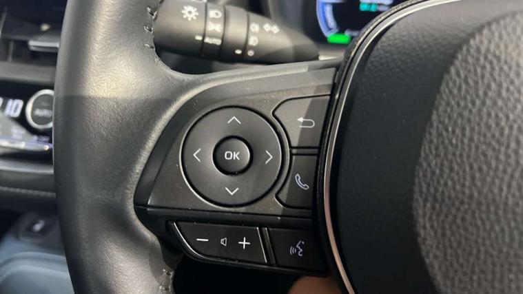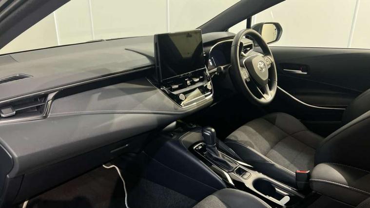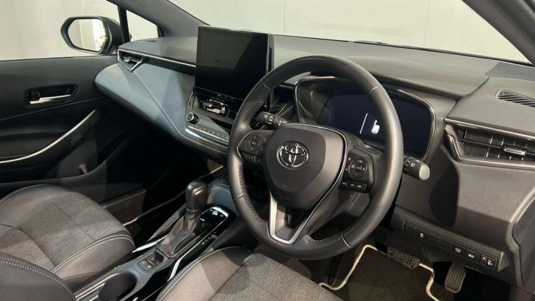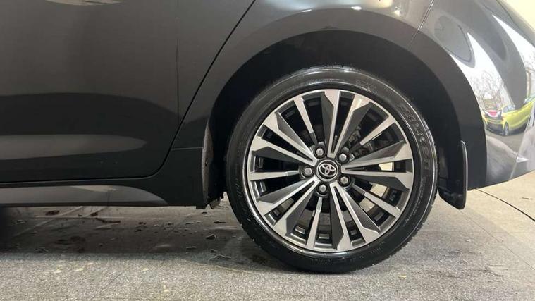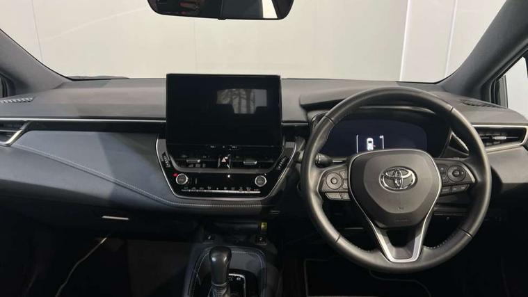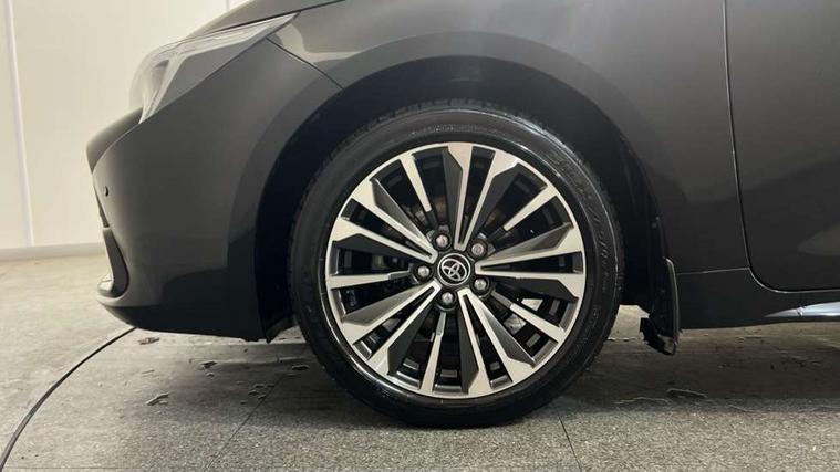 10.5" Multimedia display screen, Attention assist, Bluetooth telephone connectivity, Connected car functionality upgrade, tracker, remote status and e-care, Drive mode select (Eco, Normal), E-call, Electrically assisted power steering, EV drive indicator, Front and rear parking sensors with auto brake, Full Digital 12.3" TFT Digital Combimeter, Key reminder warning, Lane Departure Alert (LDA) switch on steering wheel, Memory on adjustable speed limiter, MyT connected services, Proactive driving assist (PDA), Reversing camera, Smartphone integration with Apple CarPlay and wired android auto, Tailgate, Toyota remote services, Toyota smart connect navigation, Wireless charger, Gasoline particulate filter, Vehicle Stability Control (VSC), 6 speakers, AM/FM radio, DAB Digital radio, Front USB-C in dashboard, Smart voice assist/ Voice recognition, USB and Aux in connectors + 12V front outlet, Anti-jam protection on power windows, Auto up and down function on all power windows, Automatic folding mirrors, Automatic headlights with high beam assist, Black centre and side air vents, Black metallic meshed front grille, Black toyota logo in front, Body coloured bumpers, Body coloured door mirrors, Body coloured front spoiler, Body coloured outside door handles, COROLLA alloy door scuff plates, Electrochromatic mirror, Follow me home headlights, LED daytime running lights, LED dual beam projector headlights, LED front fog lights, LED High mounted stop light, LED multi reflector in headlights, LED rear combi lights with LED lightguide, Manual headlight levelling system, New grille pattern, Noise reduction layer on windscreen, Piano black diffuser, Power adjustable heated door mirrors, Power front windows, Power rear windows, Privacy glass with UV filter, Rain sensing wipers, Rear bumper decoration with chrome plated inserts, Rear side wing doors, Rear under guard with chrome ornament, Rear window defogger, Rear window wiper, Reverse tilting door mirrors, Roof spoiler, Satin chrome insert on front air vents, Satin chrome insert on front door assist grips, Shark fin antenna, Tailgate release with push button, Time adjustment on intermittent wiper, Turning signal integrated indicators in door mirrors, Unique lower skirt, Unique side rocker with black insert, UV-filter on driver and passenger windows, 2 Shopping bag hooks in luggage compartment, 3 rear headrests, 3 seat bench in 2nd row, 3 spoke leather steering wheel with satin insert + gear knob, 4 tie down hooks in luggage compartment, 60/40 split folding rear seat, Adaptive cruise control (ACC) switch on steering wheel, Adjustable speed limiter switch on steering wheel, Audio, multimedia and telephone switches on steering wheel, Black armrest on centre console box, Black gear shift console, Boot light, Centre room light, Driver and front passenger personal light, Driver and passenger assist grip, Driver and passenger sun visor with mirror and light, Dual zone automatic air conditioning with ECO mode switch, Fabric/synthetic leather upholstery, Front and rear cup and bottle holders, Front door pockets, Front head restraints, Front passenger seat, Front sliding synthetic leather armrest, Heated seats, Illuminated entry system in room lamp, ISOFIX seat fixing (2 fixings on rear outer seats), Leather gear shift with satin chrome on gear shift console, Manual height adjustable for driver and front passenger seat, Manually tilt with sliding driver and front passenger seat, Parcel shelf, Passenger seat back pocket, Pollen filter, Power adjustable lumbar support on driver seat, Power window switches with satin chrome inserts, Rear armrest with 2 cupholders, Rear passenger coat hooks (2), Remote air conditioning, Satin chrome inside door handles, Satin chrome surround on heater control panel, Satin chrome surround on speedometer, Sliding armrest on centre console box, Slow opening glovebox with lights, Textile floor mats, Tilt/telescopic steering column, Voice recognition switch on steering wheel, Whiplash Injury Lessening (WIL) feature (active headrest) for seats, White ambient lighting on open tray and front cup holder, Toyota safety sense 3 pack - Corolla, 3x3 point rear seatbelts, Adjustable driver and front passenger seat belt extender to top anchor point, Anti lock braking system + Electronic brake force distribution, Brake assist function, Child locks on rear doors, Downhill Assist Control (DAC), Electronic parking brake, Emergency brake light signal (EBS), Front passenger airbag on/off switch, Front seatbelt reminder, HAC - Hill start assist control, Rear seat belt reminder, Seatbelt pretensioners and force limiters, Supplemental restraint system (SRS) 7 airbags - dual driver, dual side curtain, side impact and driver knee airbags, Traction control, Tyre pressure warning system, Acoustic vehicle alert system (AVAS), Alarm with motion sensor and immobilizer, Power passenger window lock, Remote central locking + deadlocks, Satin chrome dash trim, Soft touch texture on upper dashboard, Stitching on lower dashboard, 17" Black machined face 5 double spoke alloy wheels, Tyre repair kit, Unique wheel finish with red wheel cap,