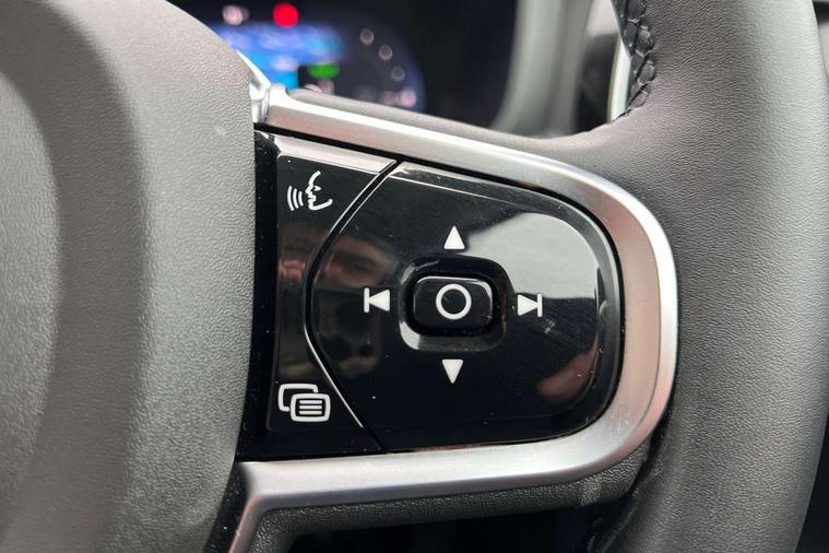 12.3" Progressive Driver Display, 9" centre console touch screen, Adaptive cruise control, Adjustable steering wheel force, Android Auto, Apple CarPlay, Bluetooth handsfree system, Drive mode settings, Driver alert control with lane keeping aid, Driver awareness - Blind spot information system with steer assist, cross traffic alert with autobrake and rear collision warning and mitigation, E-call, Front and rear park assist, Google automotive services - Enabled entertainment apps, navigation with google maps, voice recognition with google assistant, Information centre, Intelligent speed assistance, Oncoming Lane Mitigation, Power operated tailgate with handsfree opening and closing, Service interval indicator, Speed sensitive steering, Trip computer, Volvo cars services with app, Volvo on call app, 6m 3 phase 16amp Type 2 / mode 3 charge cable, Automatic transmission with start/stop and manual change functions, Dynamic chassis, Electric rear axle drive, Lithium-ion battery, On board charger - 6.4 kW 2 phase/3.7kW single phase, Recharging port located in nearside front wing, DAB Digital radio, Fresh air subwoofer, High performance sound, 2 x front and rear Type C USB, 10 speakers/220W output, Low speed exterior sound speaker, Steering wheel remote infotainment controls, Adaptive brake lights with high level LED brake lights, Auto dimming interior + exterior mirrors, Automatic headlight levelling system, Automatic LED Headlights + Active high beam incorporating daytime running lights, Front and rear power windows, Heated front windscreen, High gloss black autofolding heated power door mirrors, High gloss black front and rear bumper deco, High gloss black mesh front grille with high gloss black surround, High gloss black window surround, Home safe and approach lighting, Integrated roof rails in high gloss black, Puddle lights, Rain sensor with automatic windscreen wiper activation, Rear side wing doors, Rear wiper, Roof antenna, Roof spoiler, Variable front intermittent wipers, Visible VIN plate, 12V socket in front tunnel console and luggage compartment, 2 zone electronic climate control with Clean zone air quality system + pollen filter, 3 Spoke tailored steering wheel with chrome trim, 60/40 versatile split folding 3 bench rear seats in 2nd row, A-pillar parking ticket holder, Air purifier PM2.5, B Pillar ventilation, Bright metal luggage scuff plate, Centre console storage, Charcoal carpets and floor mats, Extended front seat cushions, Front and rear courtesy and front reading lights, Front cupholders, Front footwell illumination, Front head restraints, Front/rear door pockets and front cupholder illumination, Glovebox compartment with illumination, Heated front seats, Heated rear seats outer positions, Heated steering wheel, Height/reach adjustable steering column, Illuminated vanity mirrors + ticket holder, ISOFIX attachment on outer rear seats, Load cover, Load protection net, Luggage compartment divider with grocery bag holder, Luggage compartment illumination, Luggage compartment load hooks, Multi directional lumbar support, Power driver seat with memory + exterior mirrors memory, Power folding rear headrests, Power height adjustable passenger seat, Rear armrest with cupholder, Rear footwell and front and rear side step illumination, Rear reading lights, Recharge aluminium tread plates, Single front passenger seat, Tailgate illumination, Underfloor cargo storage, 5 x 3 point seatbelts, City safety with steering support with Pedestrian + cyclist + front collision warning with full auto brake and rear auto brake, Driver and passenger airbags, First aid kit, Front seats SIPS airbags, Hill start assist, IC (Inflatable Curtains) - Full Length, Passenger airbag cut-off switch, Power child locks on rear doors, Power parking brake with auto hold function, Road sign information display, Run off Road Mitigation, Run off Road Protection, Seatbelt reminder and pretensioners for all seats, SIPS (Side Impact Protection System), Slippery road and hazard light alert, Stability and Traction Control with Spin control, Engine Drag Control and Corner Traction Control, Tyre pressure monitoring system, Vehicle deceleration control with Anti-lock Brake System, Electronic Brake Distribution and Emergency Brake Assist, Warning triangle, WHIPS whiplash protection system - front, 2X Key integrated remote control central locking with deadlocking system and auto open/close power windows, Anti-theft alarm including immobiliser/volume sensor + level sensor, Care key with user defined top speed, Keyless drive includes keyless entry and keyless start, Locking wheel nuts, Private locking luggage compartment, Tyre sealant kit and compressor,