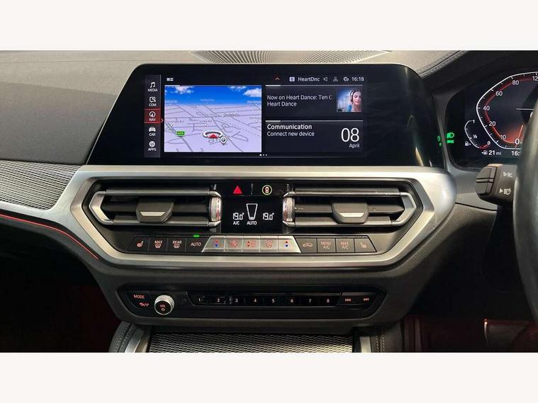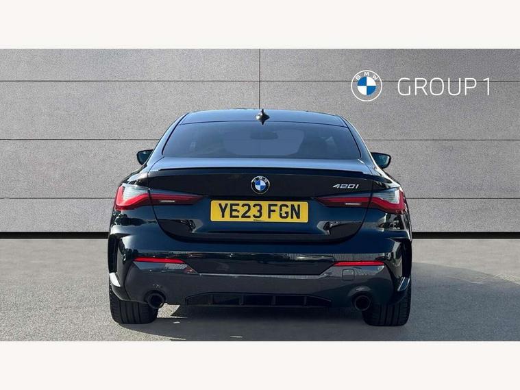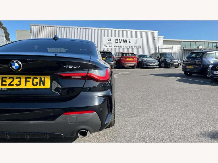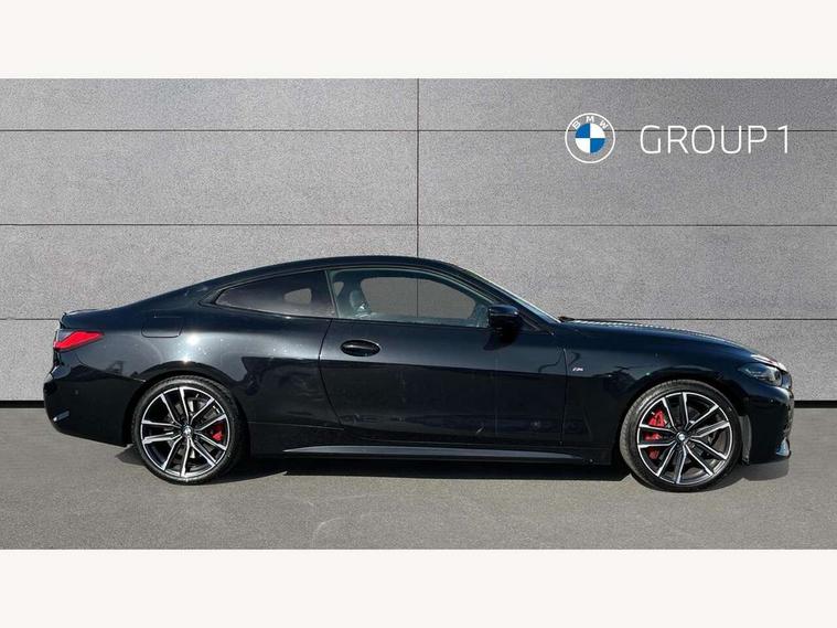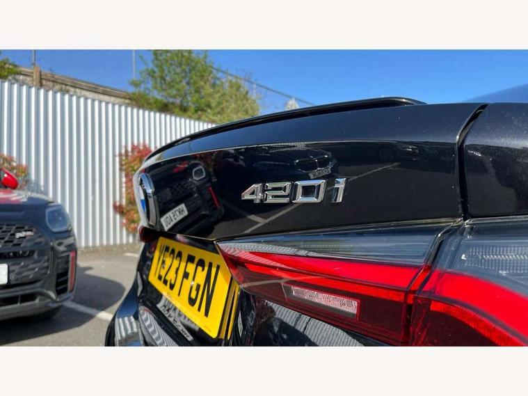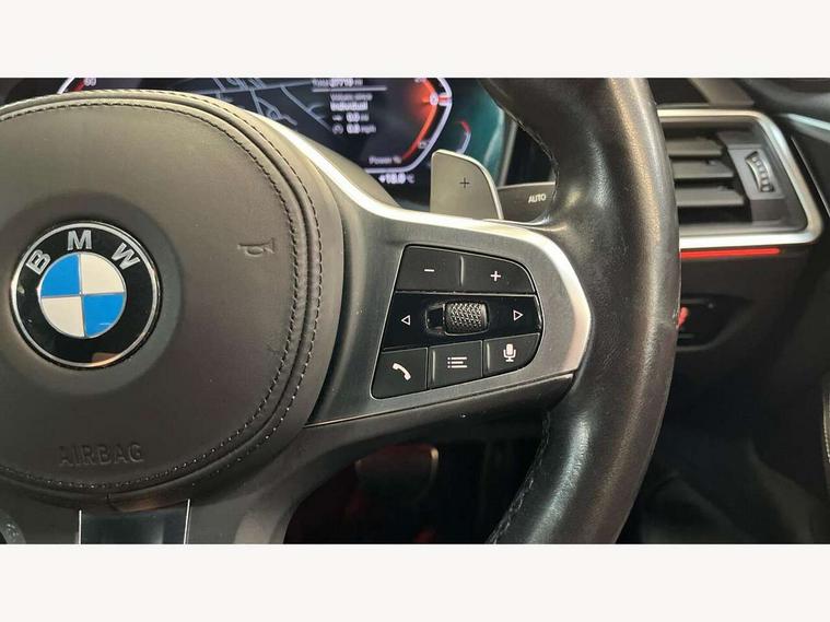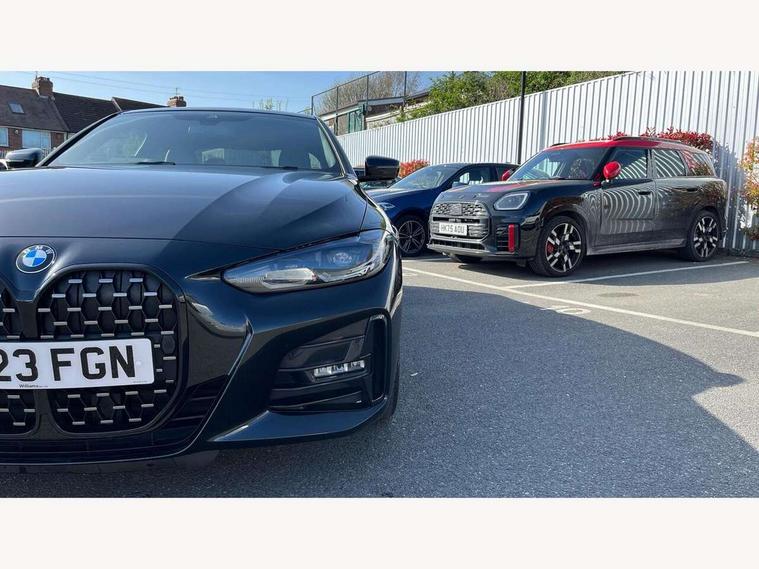 Active guard plus, Attentiveness assist, Auto start-stop, Bluetooth hands free facility with USB audio interface with audio streaming, BMW ConnectedDrive online services, BMW Live Cockpit Plus Nav/12.3" instrument display/14.9" display/Intelligent Voice Assist/iDrive touch/access 3rd party app/2USB/4G//bluetooth//Wi-Fi, BMW service history, BMW Teleservices, Brake pad wear indicator in front and rear, Check Control warning system for monitoring of lights and door/luggage compartment open warning, Condition based service, Cruise control with speed limit function, Electric power steering with Servotronic steering optimised at all speed ranges, Gearshift time display in manual mode, iDrive controller on centre console, Instrument cluster with speedometer with mph readout, tachometer, fuel gauge and oil temperature gauge, Integrated owners handbook, Oil sensor for level and grade, warning by check control system, On board computer - average speed, fuel consumption, outside temp display with acoustic warning, clock/date, service interval, odometer/trip meter, Optimum shift indicator, Run flat indicator, Shifting point display, Variable sport steering, 8 speed automatic steptronic transmission with gearshift paddles, Balanced 50/50 weight distribution, Double joint spring strut front axle, Double VANOS, Drive performance control - ECO PRO, comfort and sport modes, High precision injection, Low centre of gravity, M sport suspension, Petrol Particulate Filter, Stroke dependent dampers, VALVETRONIC engine management, 2x USB Type C ports in front centre console for charging and data transfer, 2x USB Type C ports in rear centre console for charging, DAB tuner, Electronic service booklet, 3rd brake light, Acoustic glazing, Automatic headlight beam throw control with load dependent regulating reaction, dynamic compensation of braking dive and acceleration squat, Automatic windscreen wipers and automatic headlight, Automatically dimming electrochromatic rear view mirror, BMW emblem on engine compartment lid and tailgate, BMW kidney grille with mesh grille front side of the nuggets in matt aluminium and frame in chrome high gloss, Body colour fuel filler flap, Body colour roof fin, Brushed aluminium inserts in the front door sill finishers with BMW designation, Door sill strips, Dynamic brake lights, Electric windows - front and rear, with open/close fingertip control, anti trap facility and comfort closing function all round, Exterior mirrors - electrically folding with anti-dazzle, Fading support, Follow me home headlights, Front and rear bumper system, Front apron plastic in body colour, Green tinted heat protection glazing, High gloss shadow line exterior trim, Illuminated bow type door handles in body colour drivers side with door lock, Interior rear view electrochromatic mirror with automatic anti dazzle function, LED daytime running lights, LED front fog lights, LED front indicators, Licence plate panel integrated into front bumper and tailgate, Lightweight engineering, M designation on front side panels, left and right, M sport rear spoiler with body colour gurney, Model designation on right side of tailgate, One piece front bumper cover including towing eye cover in body colour, Preparation for high beam assistant, Rear boot, Reversing light, Side frame decorative moulding black matt, Two part LED tailights in L-shape with components in smoked glass, brake light, LED turn indicator and rear fog light, Visible exhaust tailpipe finisher, Visible VIN plate, Welcome lights in interior and door handle area, Widened track and increased camber values for max transverse dynamics, agility and steering precision, Window recess cover black high gloss, Windscreen wipers with integrated heated washing jets, 12V power socket in front centre console, 2 front cupholder in centre console with clamping elements and matt black inlay, 2 Rear seat headrests, 2 seat bench in second row, 3 spoke M sport leather multifunction steering wheel, 3 zone automatic air conditioning, 4 pieces lashing eyelets in luggage compartment, 40:20:40 split folding rear seat and rear centre armrest with two cupholders, Anthracite headlining, Armrest integrated in front and rear door trim + front centre console armrest, BMW ID, Driver seat backrest width adjustment, Extended storage, Luggage compartment seprating net on side trim left and right, Bag hook on both side, Four grab handles integrated in roof lining, Front and rear door pockets, Front and rear reading lights, Front sport seats, Heated driver and front passenger seats, Height adjustable front headrests, Height adjustable mechanically and infinitely variable steering column, Illuminated armrest storage compartment, Illuminated glove compartment with separate small compartment, Make-up mirror lights, Single front passenger seat, Storage compartment in rear centre console, Sunvisors with illuminated vanity mirrors and ticket pocket, Toolkit located in luggage compartment, Velour front floor mats, Vernasca leather upholstery, Ambient lighting pack - 4 Series, Connected professional package - 4 Series, M sport exterior styling pack - 4 Series, 2 x 3-point rear seat belts, Battery safety cut-off, BMW emergency call, Brake energy regeneration, Braking pre-tensioning, Child seat ISOFIX attachment for the two outer rear seats, Coasting in idle in ECO PRO mode, Cornering brake control (CBC), Crash sensor activating of airbags, Unlocking doors, hazard warning lights, fuel cut off, interior lighting+activation of safety battery terminal clamp, Driver and front passenger side airbags, integrated in the door side seat backrest bolsters for all seat variants, Driver/Front Passenger airbags, Dry braking, Dynamic brake control, Dynamic stability control + (DSC+) - Anti-lock Braking System (ABS) with brake assist and cornering brake control + Automatic Stability Control (ASC), Dynamic Traction Control - DTC, Electromechanical parking brake including automatic hold function and automatic releas