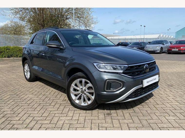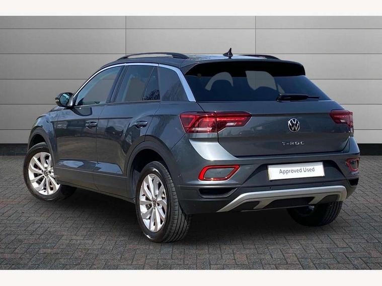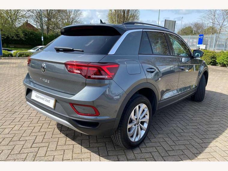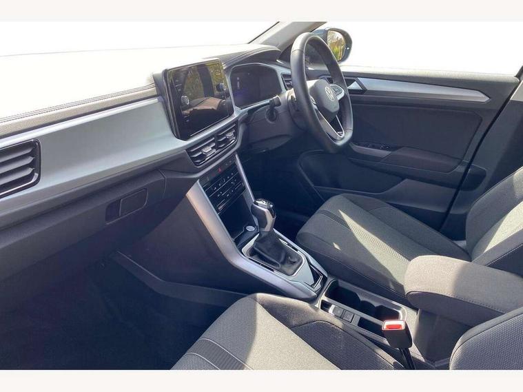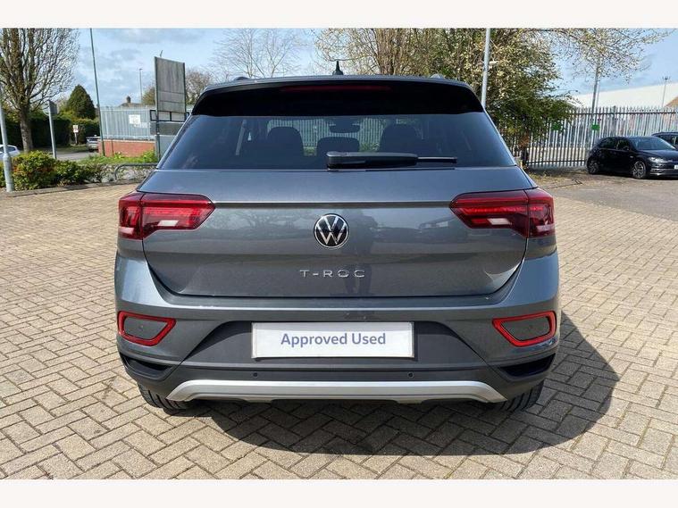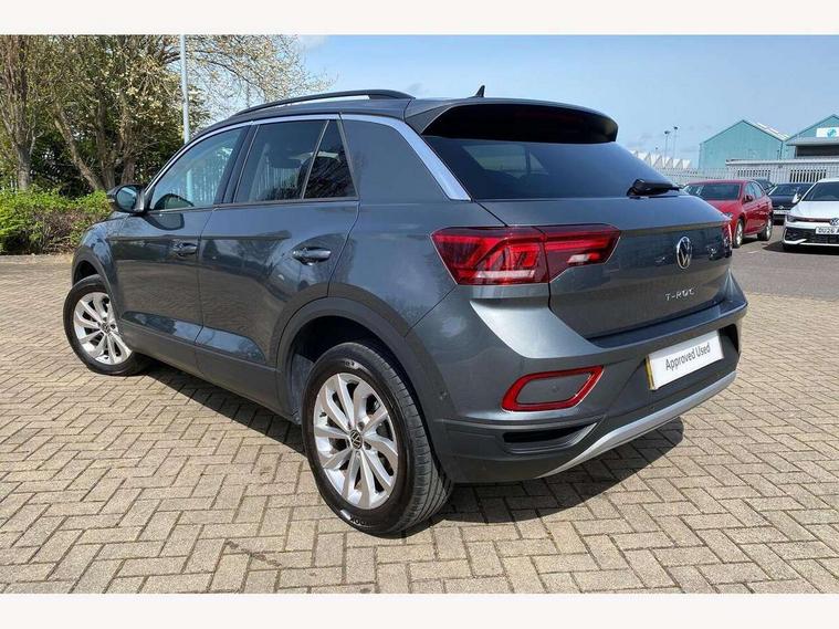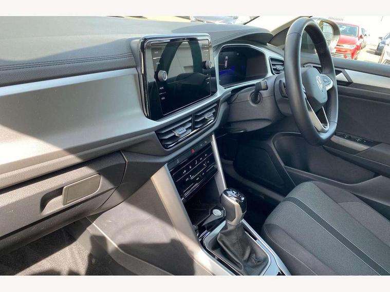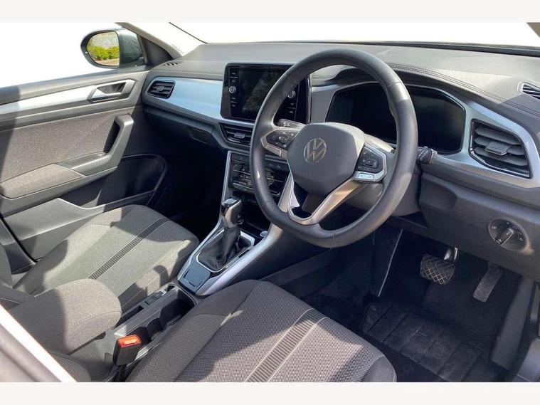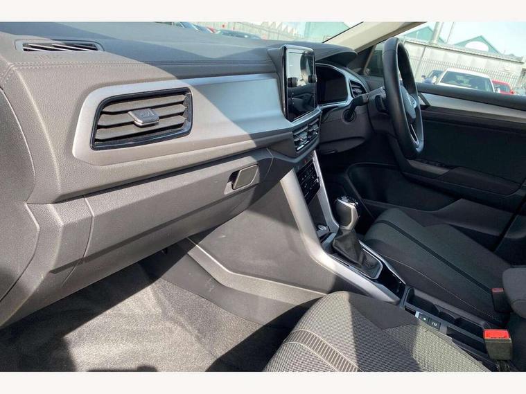 Advanced driver attention and drowsiness monitor, Dynamic road sign display, Emergency call service, Lane keeping system Lane Assist, Mobile phone interface, Modified key software - reduce switch off time for key status change to Long no motion, Online services, Park assist including front and rear parking sensors, Power assisted speed sensitive steering, Rear view camera, Service interval indicator, Tailgate/trunk lid release from outside, Think blue trainer driver tips and journey analysis, Warning sound and light for front seatbelts unfastened, Wireless app connect, Battery regeneration during braking, Front shock absorption, Rear shock absorption chassis with increased ride height, Start/stop function with battery regeneration, DAB Digital radio, Diversity antenna for FM reception, Front and rear 6 speakers, Music playback - MP3, WMA and AAC files, Premium USB cable in choice of either Apple or Android smartphone compatibility, SD card slot, Simultaneous pairing of 2 compatible mobile devices, Title and cover art display, We Connect and We Connect Plus functionality, Auto dimming interior rear view mirror, Automatic hazard lights activation under emergency braking, Automatic headlight control with LED separate daytime running lights with coming/leaving home function, Black roof rails, Body coloured bumpers and radiator grille with chrome trim and front fog lamps with chrome bezel, Body coloured exterior mirror housings and door handles, Electrically adjustable and heated door mirrors, Extended roof spoiler, Exterior mirrors aspherical on driver side, convex on front passenger side, External USB type C socket and charging sockets, Front windscreen wiper with intermittent wipe and 4 position delay, Heated rear window, LED 3rd brake light, LED rear combination lamps, LED rear number plate lights, Power windows with comfort operation and circuit breaker, Privacy glass for rear side windows and rear window, Rain sensor, Rear exhaust tailpipe, Rear fog light on one side and reversing lights on both sides, Rear side wing doors, Rear wash/wipe with intermittent wipe setting, Remote electrically foldable door mirrors, puddle lights and reverse activated passenger's door mirror, 12V power socket in centre console, 3 rear head restraints, 3 seat bench in 2nd row, 4 load lashing points in luggage compartment, Air care climatronic air conditoning system with active combination filter and 2-zone temperature control, Black stitching for floor mats, Ceramique roof liner, Cloth upholstery, Door and side trim panel in cloth, Drawer under drivers seat, Driver/front passenger seat height adjustment, Front centre armrest, Front comfort sports seats, Front cupholders x 2, Front reading light, Front seat back storage pockets, Glove compartment door with light, Instrument lighting, white adjustable panel illumination, Interior ambient lighting and surround lighting, Interior light delay, Isofix child seat preparation, Leather gearshift handle, Load-through provision with cup holder when folded down ('Unsplit rear seat bench, split folding backrest, with centre armrest), Luggage compartment lighting, Lumbar support for driver's and front passengers seat, Non-folding front passenger seat backrest, Single front passenger seat, Storage compartment in left and right luggage area, Storage compartment in rear doors, Storage compartments in driver and front passenger doors, Sunvisors with illuminated vanity mirrors, Variable boot floor, height adjustable and removable, Driver assistance pack without proactive passenger protection - T-Roc Life/Match, 3 point height adj front seatbelts + pretensioners, 3 point seatbelts in outer rear with ECE label, ABS, Child locks on rear doors, City emergency braking and pedestrian monitoring, Driver and front passenger airbag with front passenger airbag deactivation, Driver and front passenger safety-optimised head restraints, Drivers seatbelt reminder, Electronic parking brake, Electronic Stability Control (ESC) inc EDL (Electronic Differential Lock) and ASR (Traction Control), Front and rear passengers curtain airbag system including front side airbags, Front disc brakes, Hill start assist, Predictive pedestrian protection, Rear disc brakes, Two tone horn, Tyre pressure loss indicator, Volkswagen roadside assistance, Alarm with interior protection, Keyless locking and starting system keyless access with safelock, Pewter matt decorative inserts for intrument panel, centre console and door panels at the front, Trims for alloy wheels,