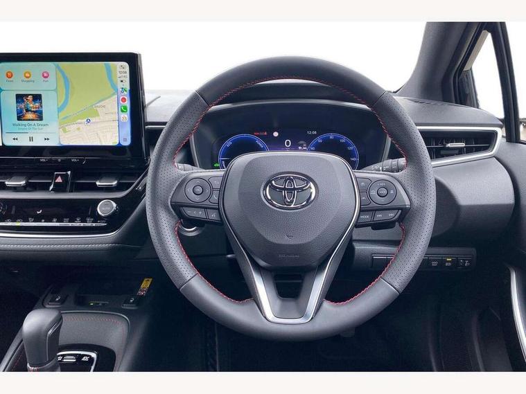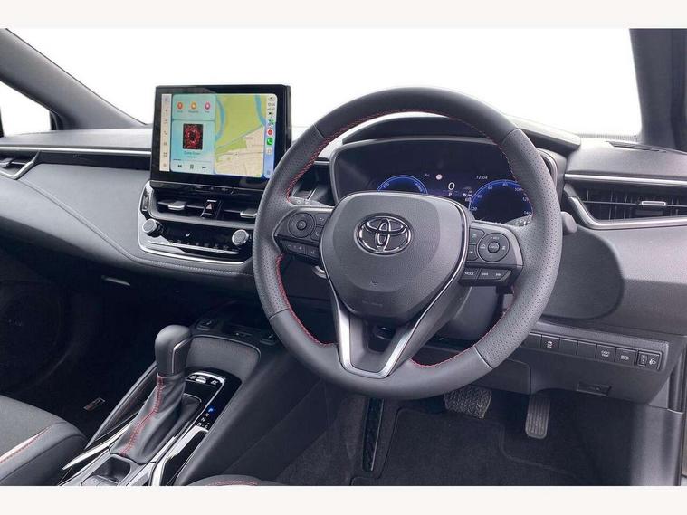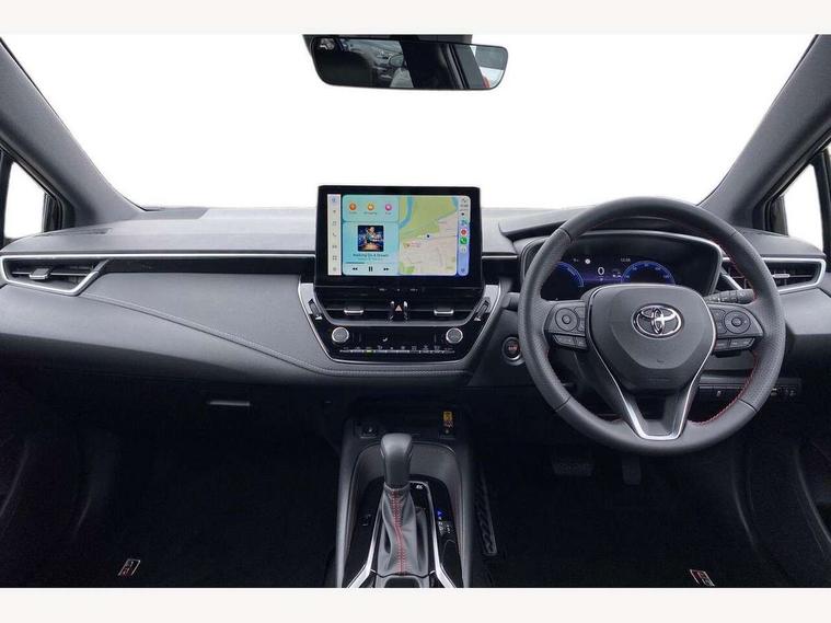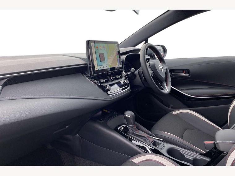 10.5" Multimedia display screen, Bluetooth telephone connectivity, Connected car functionality upgrade, tracker, remote status and e-care, Drive mode select (Eco, Normal), E-call, Electrically assisted power steering, EV drive indicator, Front and rear parking sensors, Full Digital 12.3" TFT Digital Combimeter, Intelligent clearance sonar, Key reminder warning, Lane Departure Alert (LDA) switch on steering wheel, Memory on adjustable speed limiter, MyT connected services, Proactive driving assist (PDA), Reversing camera, Smart entry and push button start with GR Logo, Smartphone integration with Apple CarPlay and wired android auto, Tailgate, Toyota remote services, Toyota smart connect navigation, Wireless charger, Gasoline particulate filter, Vehicle Stability Control (VSC), 6 speakers, AM/FM radio, DAB Digital radio, Front USB-C in centre console, Front USB-C in dashboard, Smart voice assist/ Voice recognition, USB and Aux in connectors + 12V front outlet, Anti-jam protection on power windows, Auto up and down function on all power windows, Automatic folding mirrors, Automatic headlights with high beam assist, Black centre and side air vents, Black toyota logo in front, Body coloured bumpers, Body coloured door mirrors, Body coloured outside door handles, Dark chrome lower grille, Electrochromatic mirror, Follow me home headlights, GR Sport dark chrome front mesh grille and black rear grille, GR Sport exclusive under guard, GR sport scuff plates, LED daytime running lights, LED dual beam projector headlights, LED front fog lights, LED High mounted stop light, LED rear combi lights with LED lightguide, Manual headlight levelling system, New grille pattern, Noise reduction layer on windscreen, Piano black diffuser, Power adjustable heated door mirrors, Power front windows, Power rear windows, Privacy glass with UV filter, Rain sensing wipers, Rear side wing doors, Rear window defogger, Rear window wiper, Reverse tilting door mirrors, Rocker and door lower moulding, Roof spoiler, Satin chrome insert on front air vents, Satin chrome insert on front door assist grips, Satin silver front spoiler, Shark fin antenna, Tailgate release with push button, Time adjustment on intermittent wiper, Turning signal integrated indicators in door mirrors, Unique lower skirt, Unique side rocker with black insert, UV-filter on driver and passenger windows, 2 Shopping bag hooks in luggage compartment, 3 rear headrests, 3 seat bench in 2nd row, 3 spoke steering wheel with satin insert and red stitching, 4 tie down hooks in luggage compartment, 60/40 split folding rear seat, Adaptive cruise control (ACC) switch on steering wheel, Adjustable speed limiter switch on steering wheel, Audio, multimedia and telephone switches on steering wheel, Black armrest on centre console box, Black gear shift console, Boot light, Boot underfloor storage, Centre room light, Driver and front passenger personal light, Driver and passenger assist grip, Driver and passenger seatback pockets, Driver and passenger sun visor with mirror and light, Dual zone automatic air conditioning with ECO mode switch, Electric lumbar support for passenger, Fabric/synthetic leather upholstery, Front and rear cup and bottle holders, Front door pockets, Front head restraints, Front passenger seat, Front sliding synthetic leather armrest, Gear knob, GR Sports seats with partial leather bolsters, Heated front seats, Illuminated entry system in room lamp, ISOFIX seat fixing (2 fixings on rear outer seats), Manual height adjustable for driver and front passenger seat, Manually tilt with sliding driver and front passenger seat, Nanoe-X air purifier, Paddle shifts, Parcel shelf, Pollen filter, Power adjustable lumbar support on driver seat, Power window switches with satin chrome inserts, Rear armrest with 2 cupholders, Rear passenger coat hooks (2), Red stitching on gear shift, Remote air conditioning, Satin chrome inside door handles, Satin chrome surround on speedometer, Sliding armrest on centre console box, Slow opening glovebox with lights, Textile floor mats, Tilt/telescopic steering column, Voice recognition switch on steering wheel, Whiplash Injury Lessening (WIL) feature (active headrest) for seats, White ambient lighting on open tray and front cup holder, Toyota safety sense 3 pack - Corolla, 3x3 point rear seatbelts, Adjustable driver and front passenger seat belt extender to top anchor point, Anti lock braking system + Electronic brake force distribution, Brake assist function, Child locks on rear doors, Downhill Assist Control (DAC), Electronic parking brake, Emergency brake light signal (EBS), Front passenger airbag on/off switch, Front seatbelt reminder, HAC - Hill start assist control, Rear seat belt reminder, Seatbelt pretensioners and force limiters, Supplemental restraint system (SRS) 7 airbags - dual driver, dual side curtain, side impact and driver knee airbags, Traction control, Tyre pressure warning system, Acoustic vehicle alert system (AVAS), Alarm with motion sensor and immobilizer, Power passenger window lock, Remote central locking + deadlocks, GR Sport interior and exterior styling, Satin chrome dash trim, Soft touch texture on upper dashboard, Stitching on lower dashboard, 18" 10 spoke black machined face alloy wheels, Tyre repair kit, Unique wheel finish with red wheel cap,