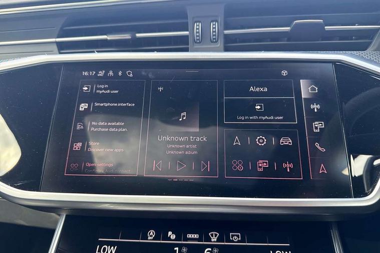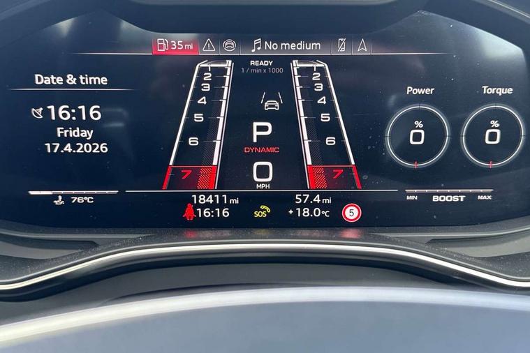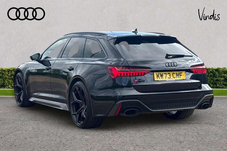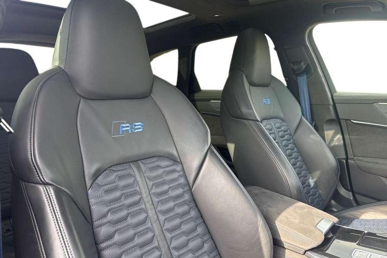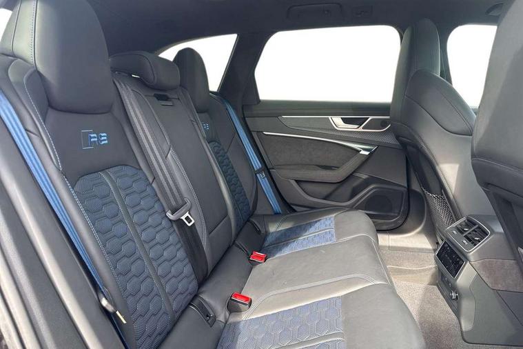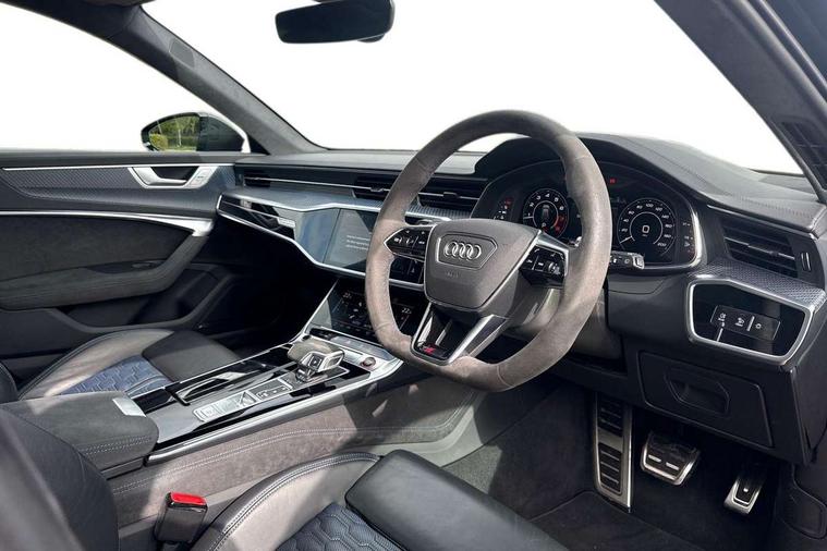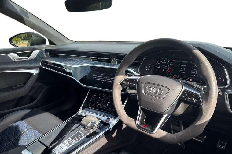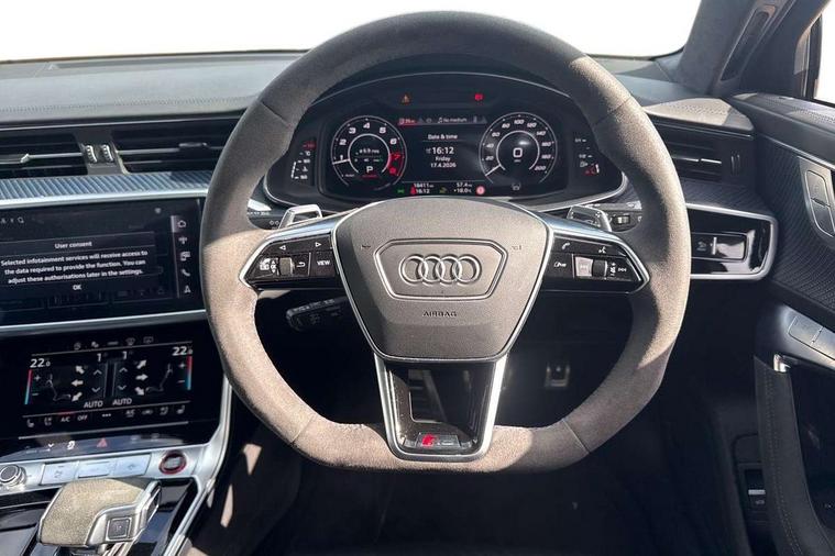 Audi connect safety and service (e-call), Audi connect with Amazon Alexa Integration, Audi drive select with 2 configurable RS modes, Audi smartphone interface with app store includes wireless Apple carplay, Android auto and Amazon alexa integration, Audi virtual cockpit plus with RS specific design and 12.3" display with additional graphic display options, Automatic start/stop system, Bluetooth interface, Dynamic all wheel steering, Head up Display, Lane departure warning system, MMI navigation with MMI touch + twin touch screens 10.1" and 8.6" with haptic and acoustic feedback, Night vision assistant, Operating buttons in black, glass look with haptic feedback including extended aluminium look, Power door closure, Power operated tailgate, Service interval indicator, Surround view camera system, Voice control system, 48V Mild hybrid technology, 73 litre fuel tank, Increased top speed to 174mph, Quattro sports differential, RS Sports suspension plus with dynamic ride control, 2 USB-C ports with charging functionality in the rear, Audi music interface, Bang & Olufsen 3D Premium Sound System, DAB Digital radio, 3rd brake light, Adaptive windscreen wipers with integrated washer jets, Black window trims, Electric front/rear windows, Electrically adjustable, heated and folding door mirrors with integrated LED indicators and kerb view function for passenger side, Frameless auto dimming interior rear view mirror, HD Matrix LED headlights with Audi laser light with dynamic light design and dynamic turn signal, Headlight washers, Heat insulating darkened glass in side and rear windows, LED daytime running lights, LED rear combination lamps with dynamic light design and dynamic turn signal, Panoramic glass sunroof, Privacy glass with rear/side windows and acoustic glazing side windows, Radiator grille in honeycomb structure, large front air inlets and rear diffuser in gloss black, Rain and light sensors, Rear side wing doors, Rear wiper, RS front bumper with air inlets on both side, RS rear spoiler in body colour, RS sports exhaust system with high gloss black oval tailpipe trims, 3 seat bench in 2nd row, 4 way electric lumbar support for driver and front passenger, 4 zone deluxe automatic climate control, Audi phone box light, Electric steering wheel adjustment, Electrically adjustable front seats with driver memory, Entry LED with RS Performance projection (Audi Beam) in front and rear, Front and rear headrests, Front centre armrest, Front seat ventilation, Heated front and rear seats, Illuminated front and rear door sill trims with aluminium inlays and RS6 logo, ISOFIX and Top Tether child seat mounting for the outer rear seats, ISOFIX child seat mounting and Top Tether with front passenger airbag deactivation, RS sports seat plus, Single passenger seat, Stainless steel pedals and foot rest, Air quality pack - RS6, Ambient lighting pack plus - RS6, City assist pack - RS6 Performance/carbon/vorsprung, Park assist pack with park assist plus - RS6, Storage pack - RS6, Tour pack - RS6 Performance/carbon/vorsprung, 3 point rear seatbelts, Airbags - Front side, front and rear including head, Direct tyre pressure monitoring system, EBD - Electronic brakeforce distribution, Electromechanical parking brake, Electronic Stability Control (ESC) including ABS, ASR and EDL, Extended pedestrian protection measures, Manual child lock in rear doors, Rear side airbags, Warning triangle and first aid kit, Anti theft alarm with tow away protection, Immobiliser, Keyless Go, Remote central locking, Performance tyres, Tyre repair kit,